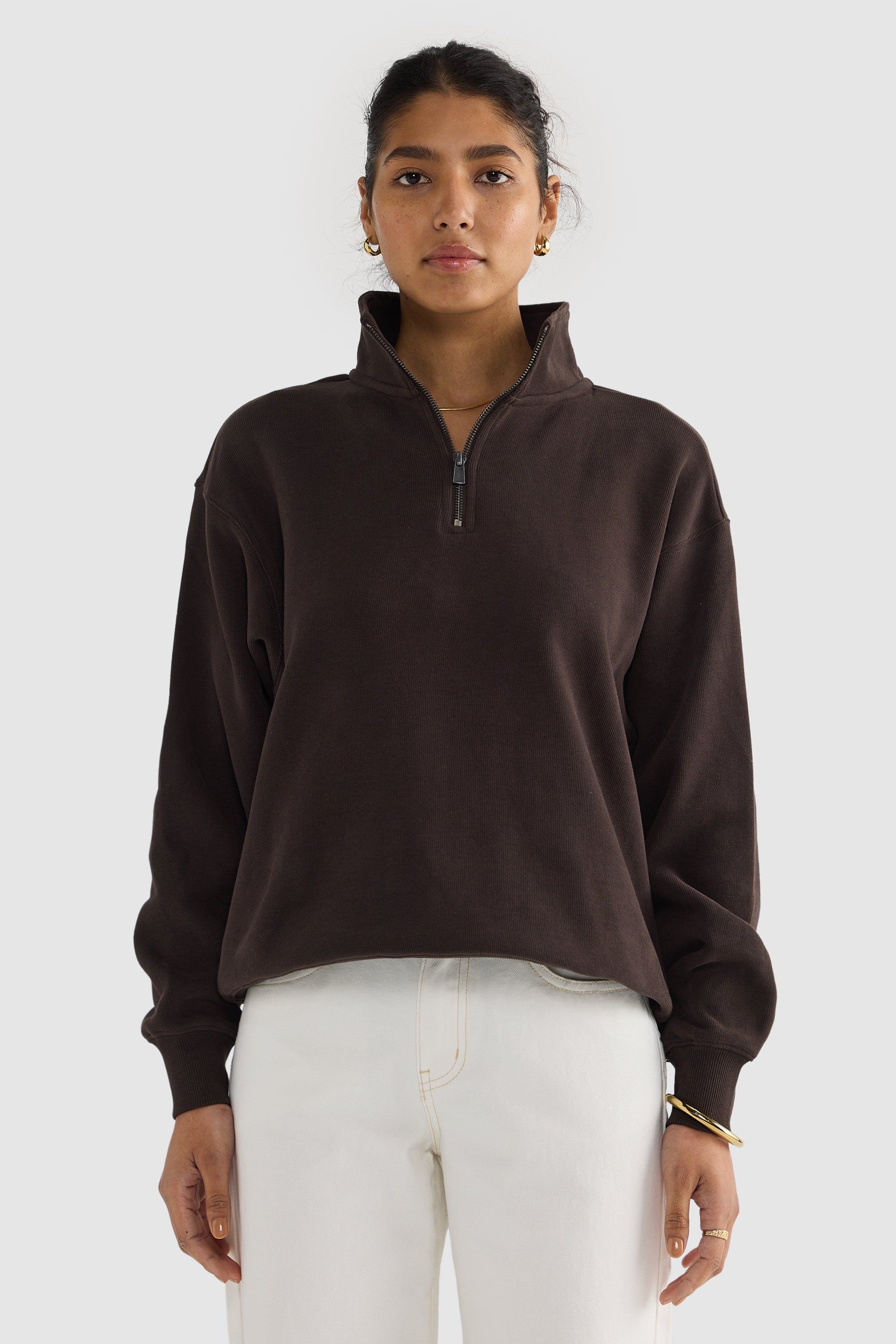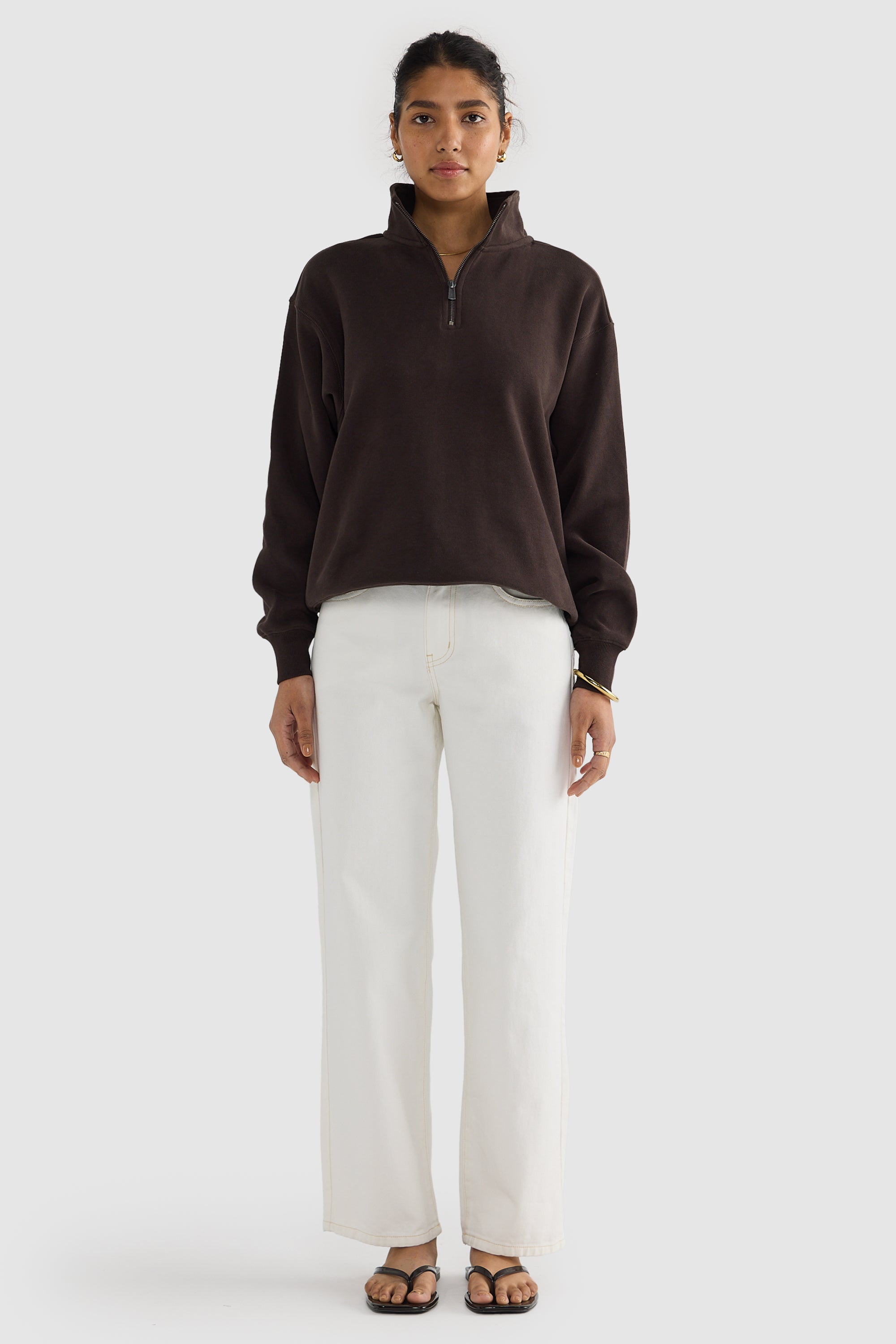 The Ava Ribbed Quarter Zip Carob is the missing piece to your capsule wardrobe. With a relaxed fit and ribbed detail, this sweater can easily be dressed up or down. Coordinate your look by pairing this with our Ava Wide Leg Pants or Ava Curved Hem Shorts.
