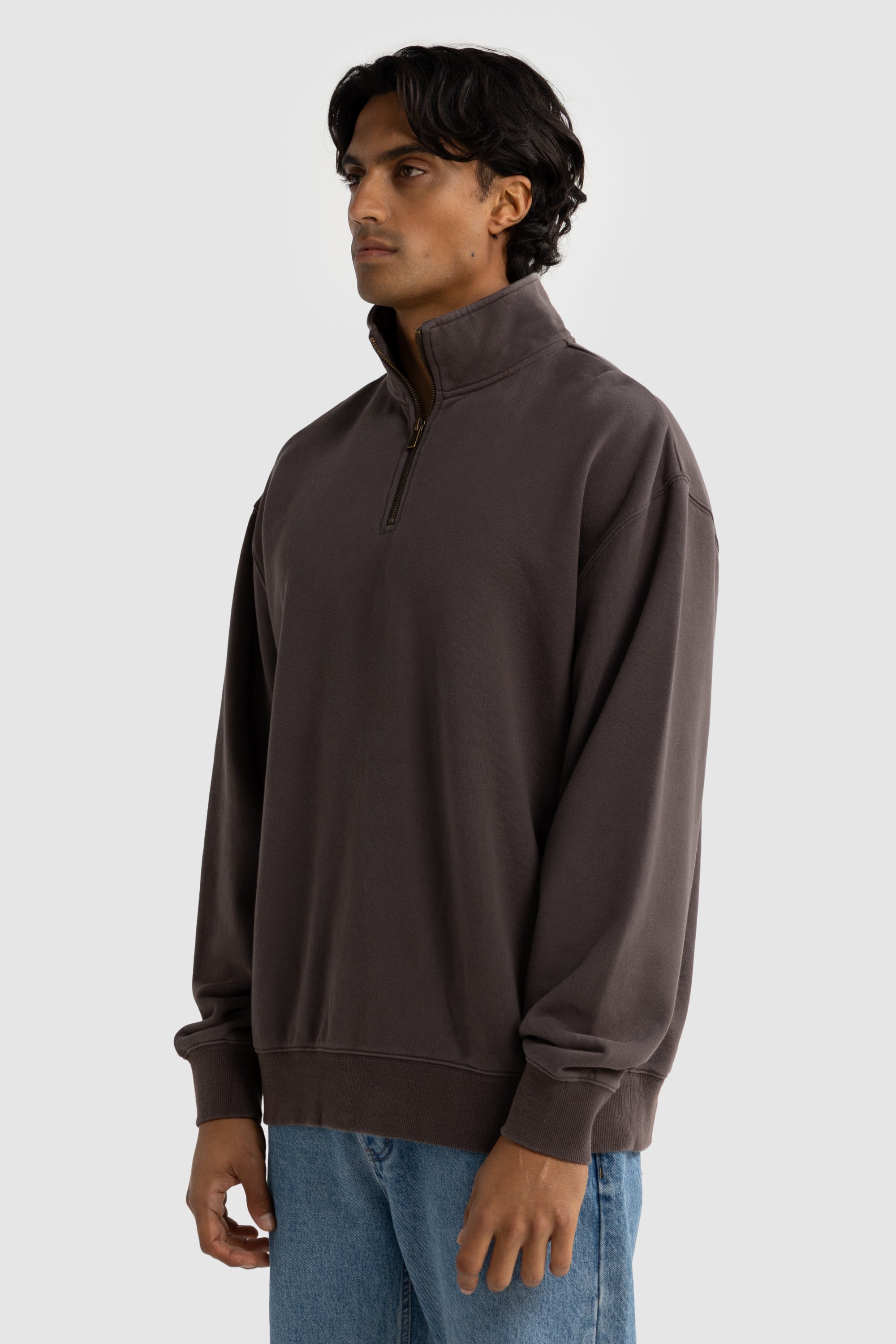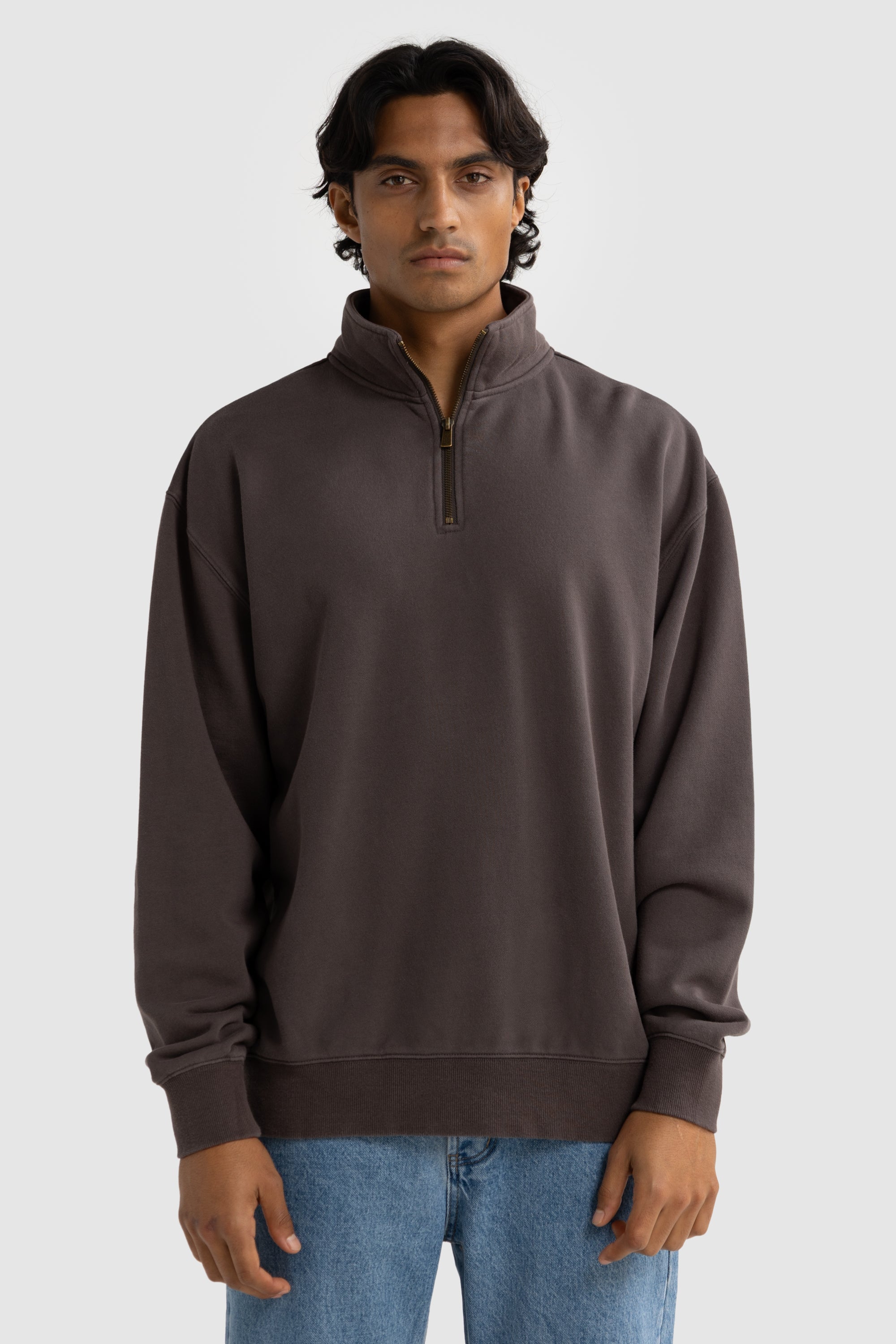 The Henderson Quarter Zip Navy. Rediscover the essentials in our core ORTC colours and style. Crafted in a relaxed fit, the Henderson Quarter Zip pairs perfectly with a pair of jeans, or our lounge shorts for a more relaxed look. Made from a heavy weight french terry and garment washed to provide a super soft and worn in feel.