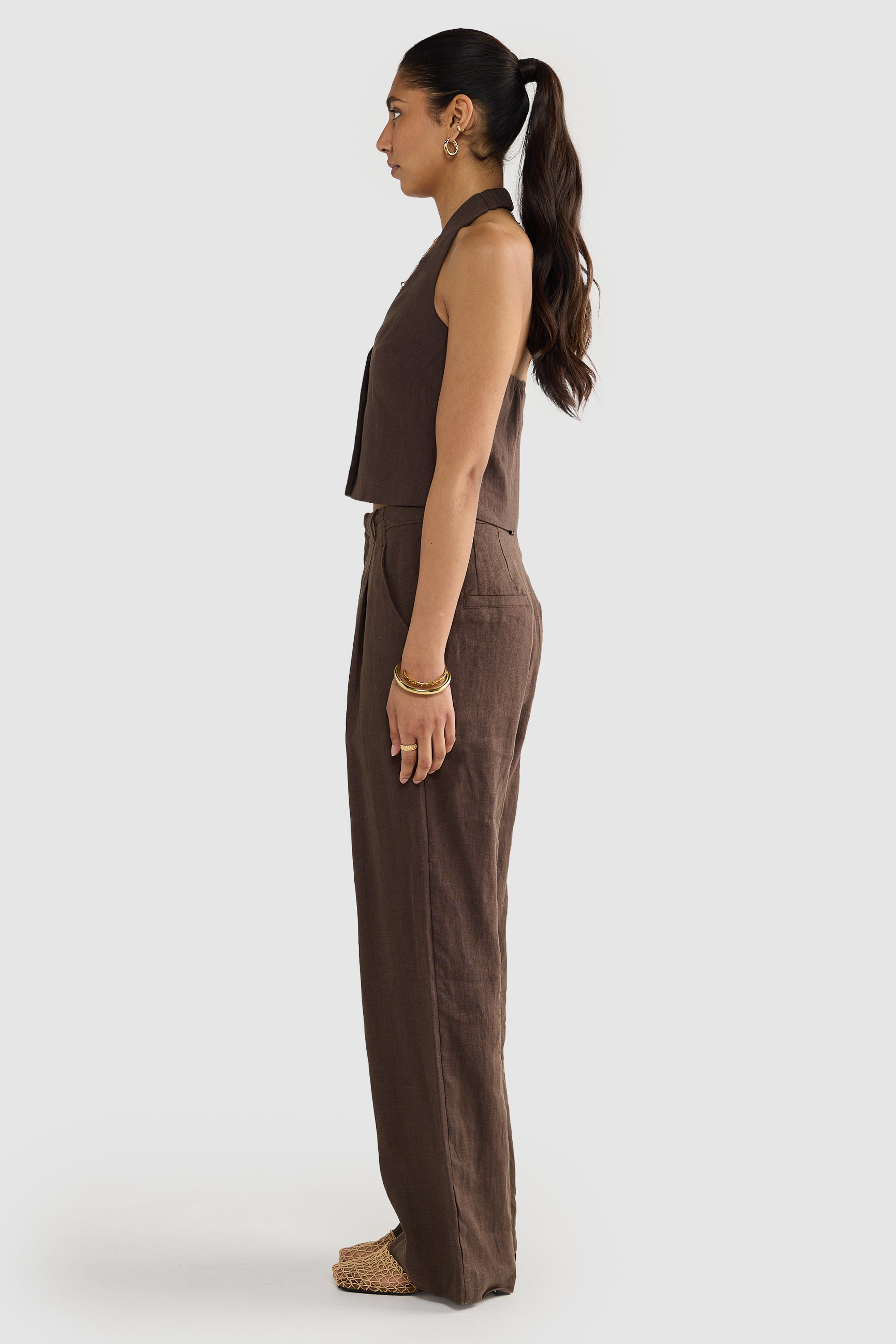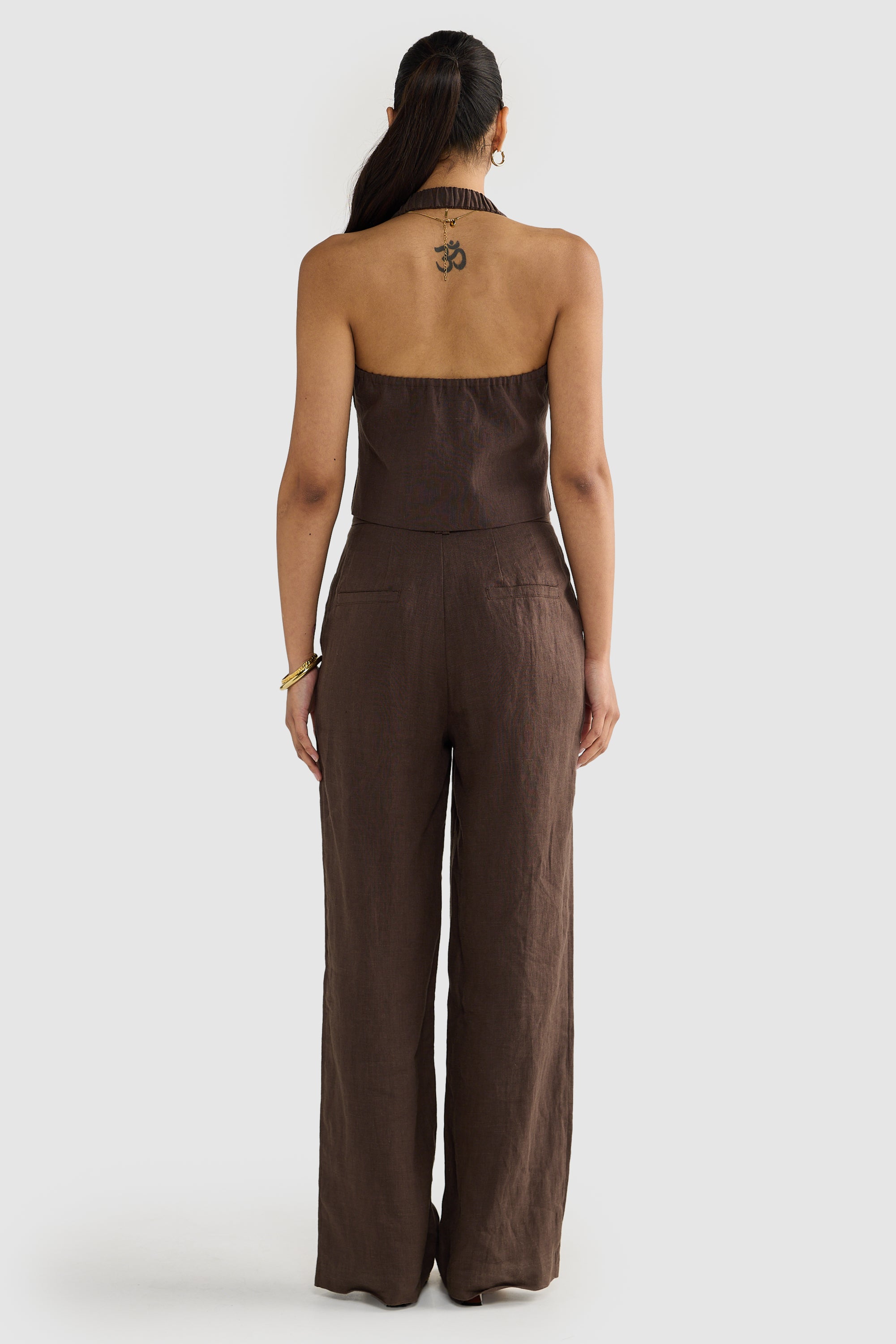 The Savannah Linen Halter Top Carob is an essential piece to your summer uniform. Crafted from mid weight linen and featuring and elasticated back this top is both chic and comfortable.