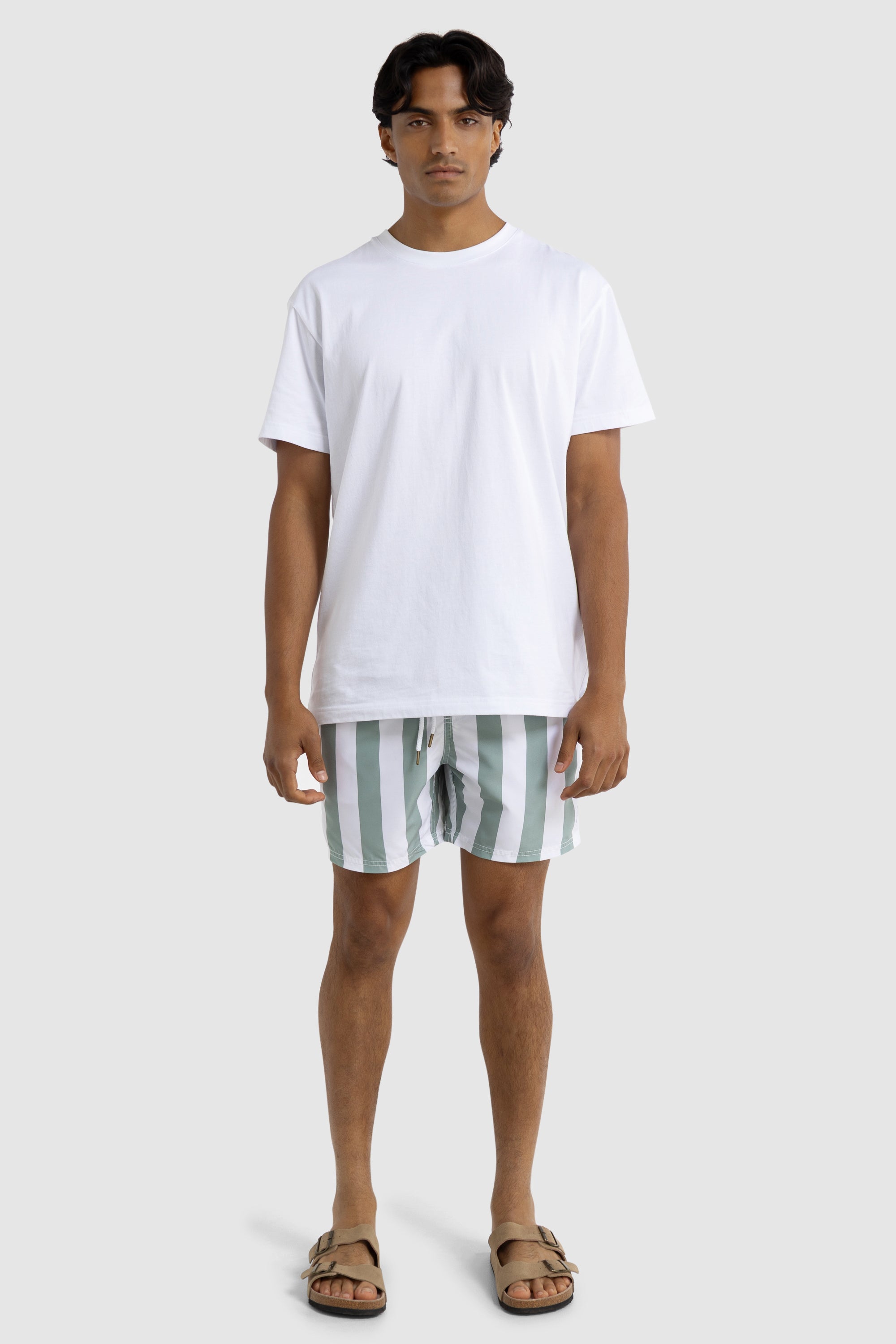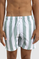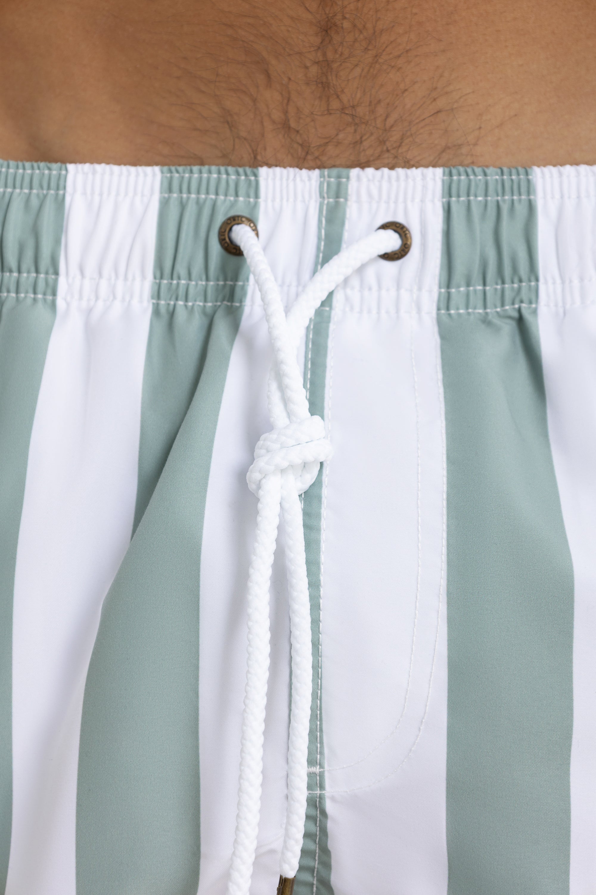 The Portsea Sage Swim Shorts are the perfect addition to your summer wardrobe. Made from 100% Recycled Polyester, these mid-length shorts are quick-drying and lightweight. The elastic waistband with drawstring provides an adjustable fit, while internal fine mesh briefs provide extra comfort. Pair with one of our Box LogoShirts for the perfect summer look.