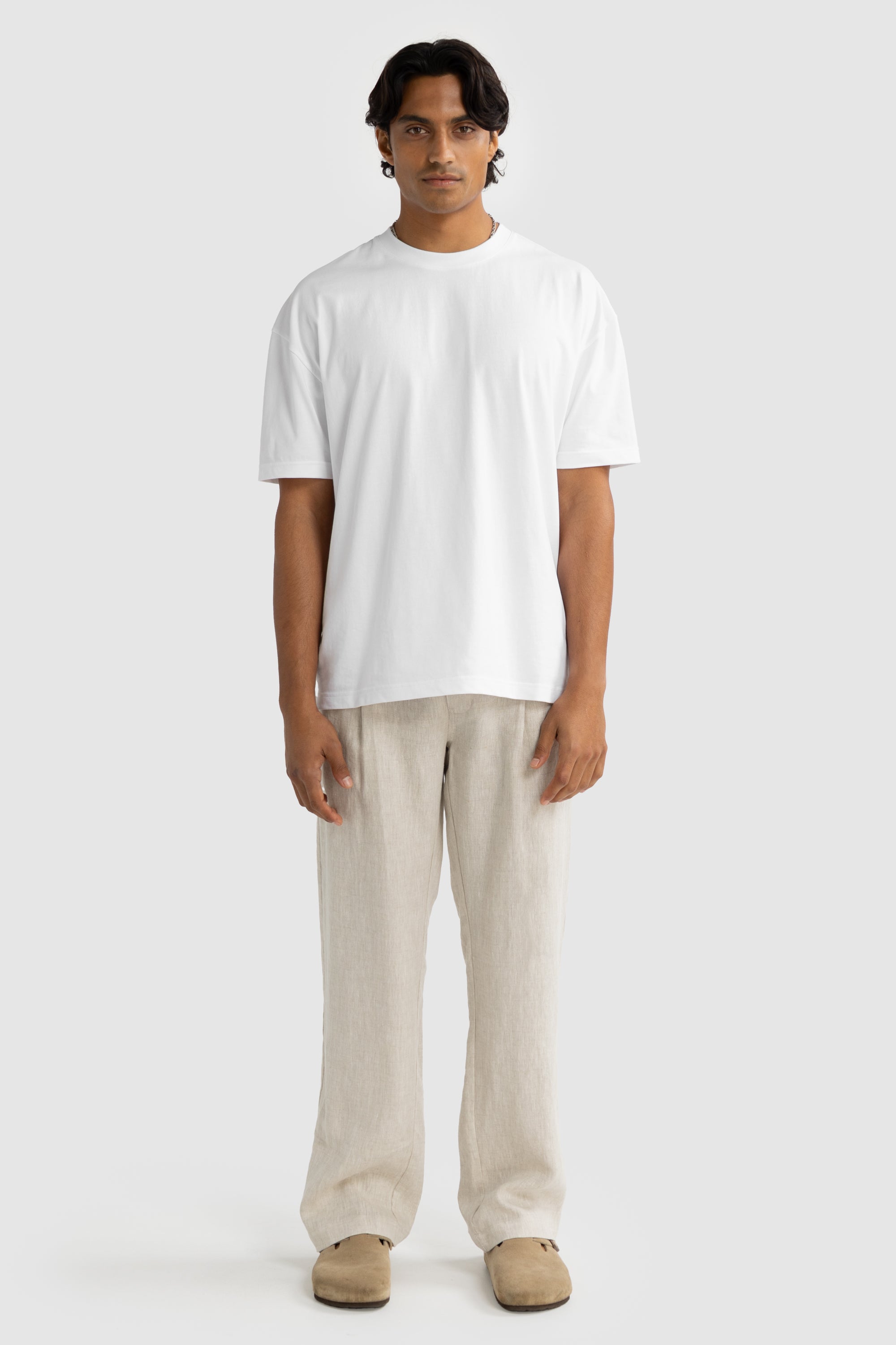 Our Tailored Linen Pants are a staple for your summer wardrobe. Crafted from 100% washed linen, they follow our signature relaxed fit—striking the perfect balance between comfort, quality, and tailored style. Pair them with one of our Henderson Box Fit T-Shirts for an effortlessly refined summer look.