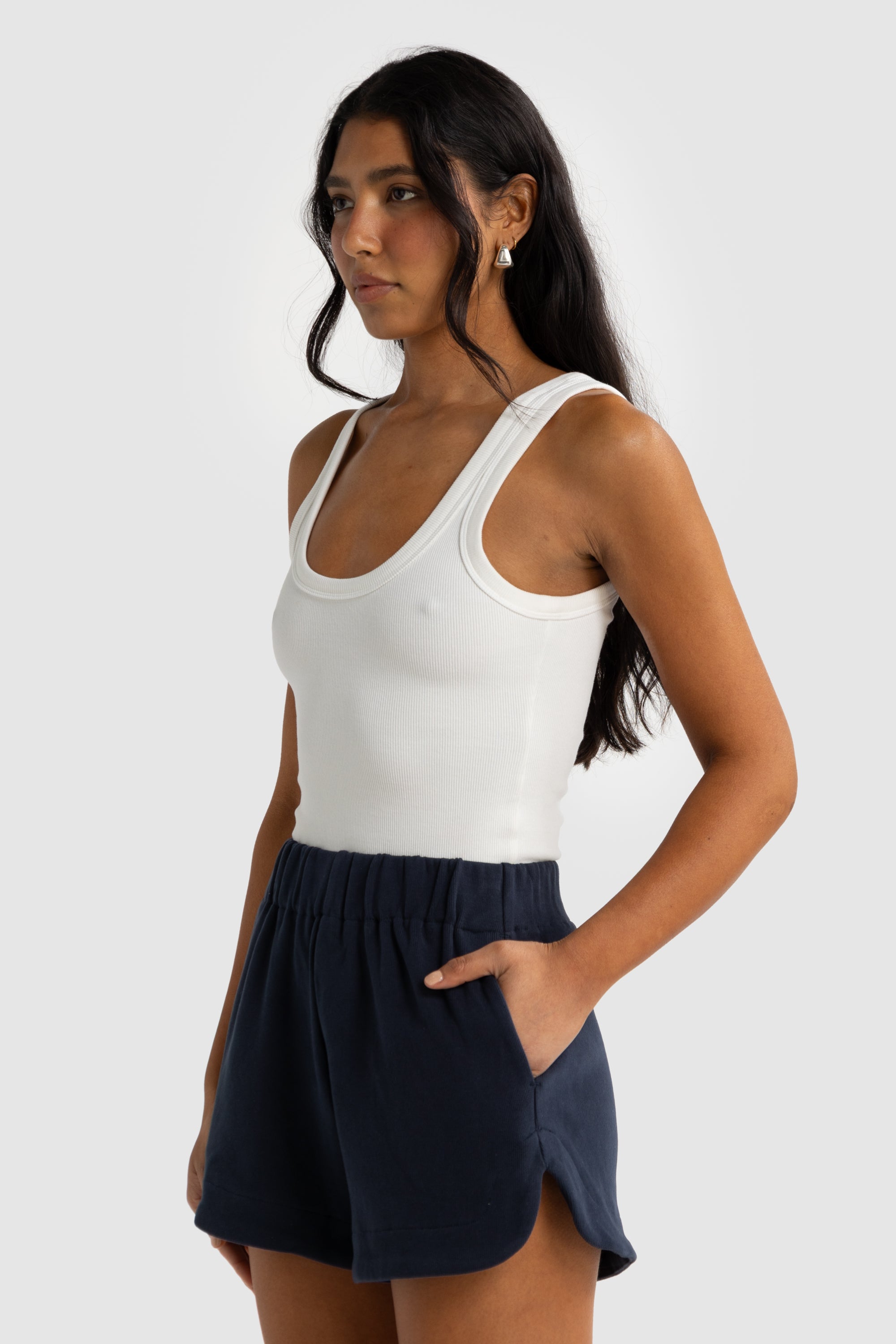 Ava Curved Hem Shorts Navy