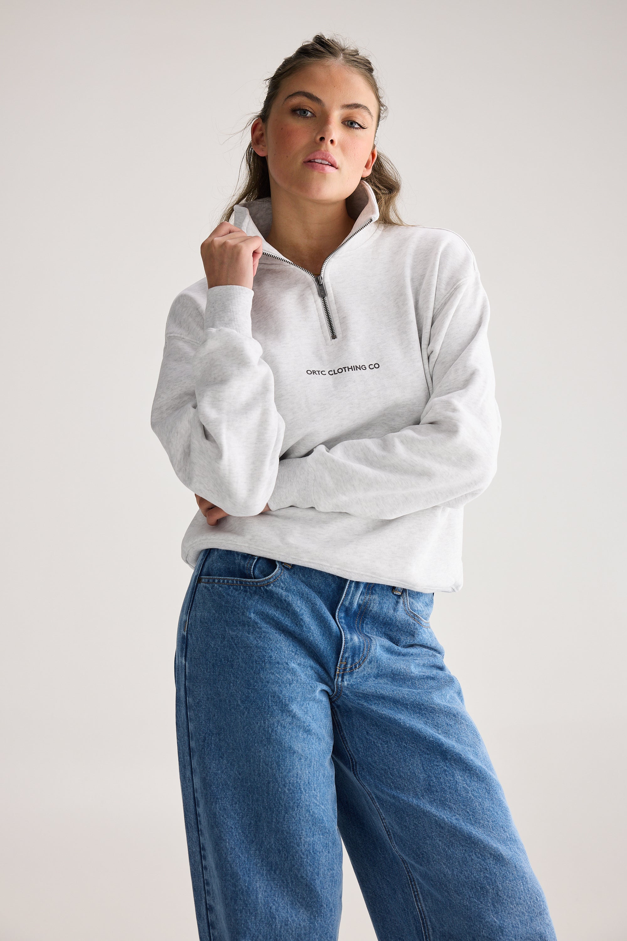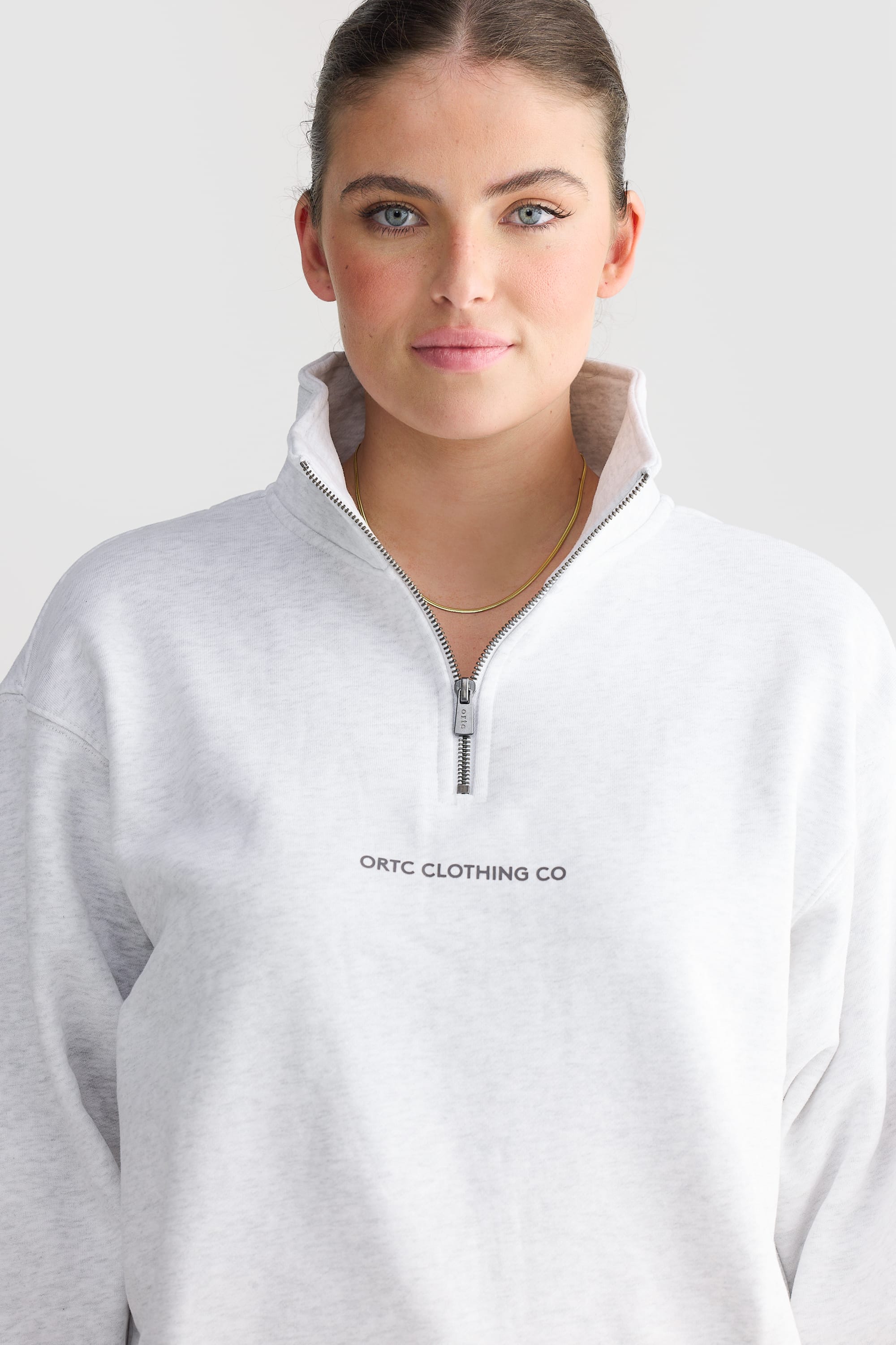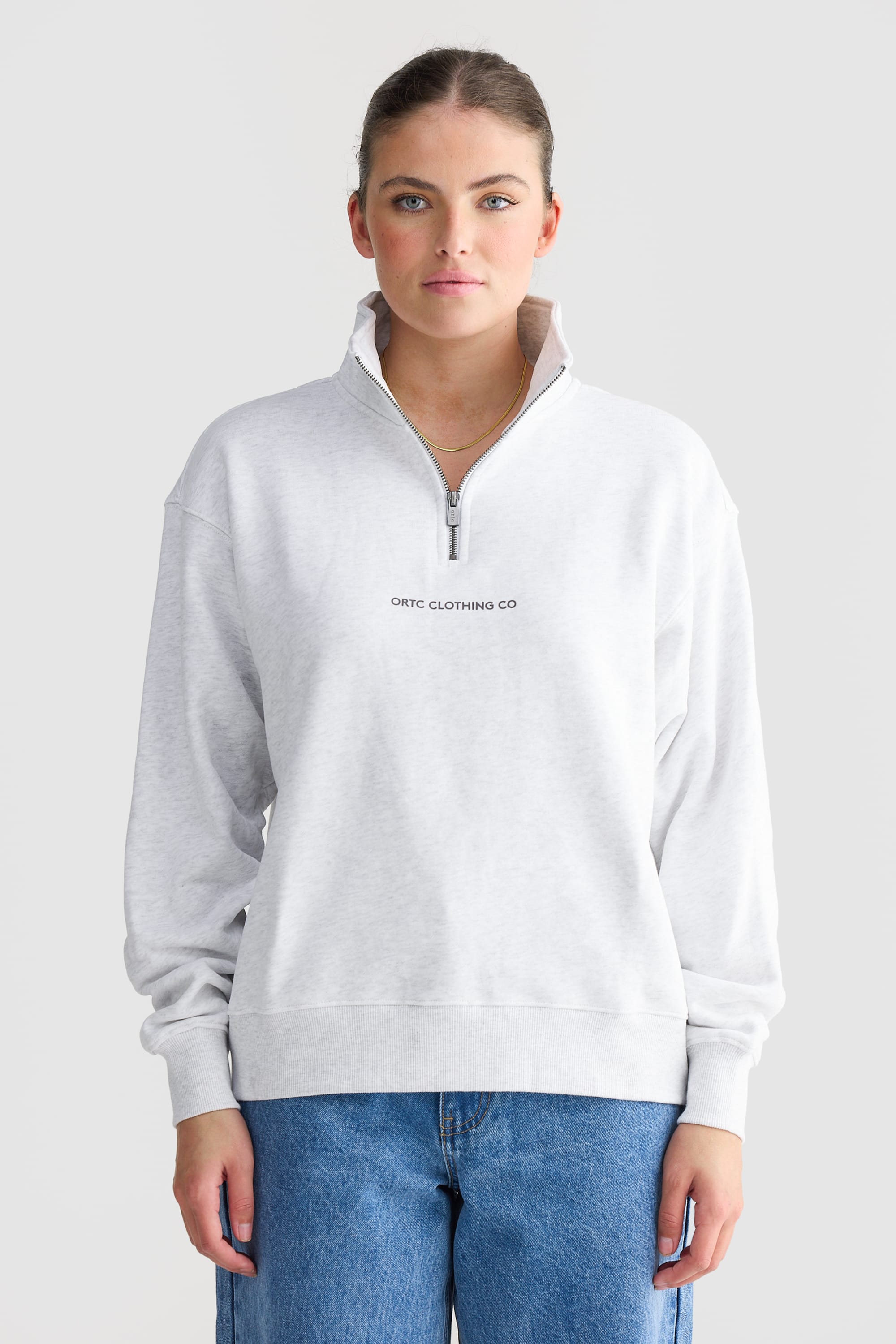The Logo Quarter Zip is an elevated take on our signature quarter zip, designed for effortless everyday wear. Crafted from 100% cotton French terry, it offers a soft, breathable feel with a relaxed fit for all-day comfort. Ribbed cuffs add structure and warmth, while the colour-matched screen-printed chest logo delivers a clean, refined finish.