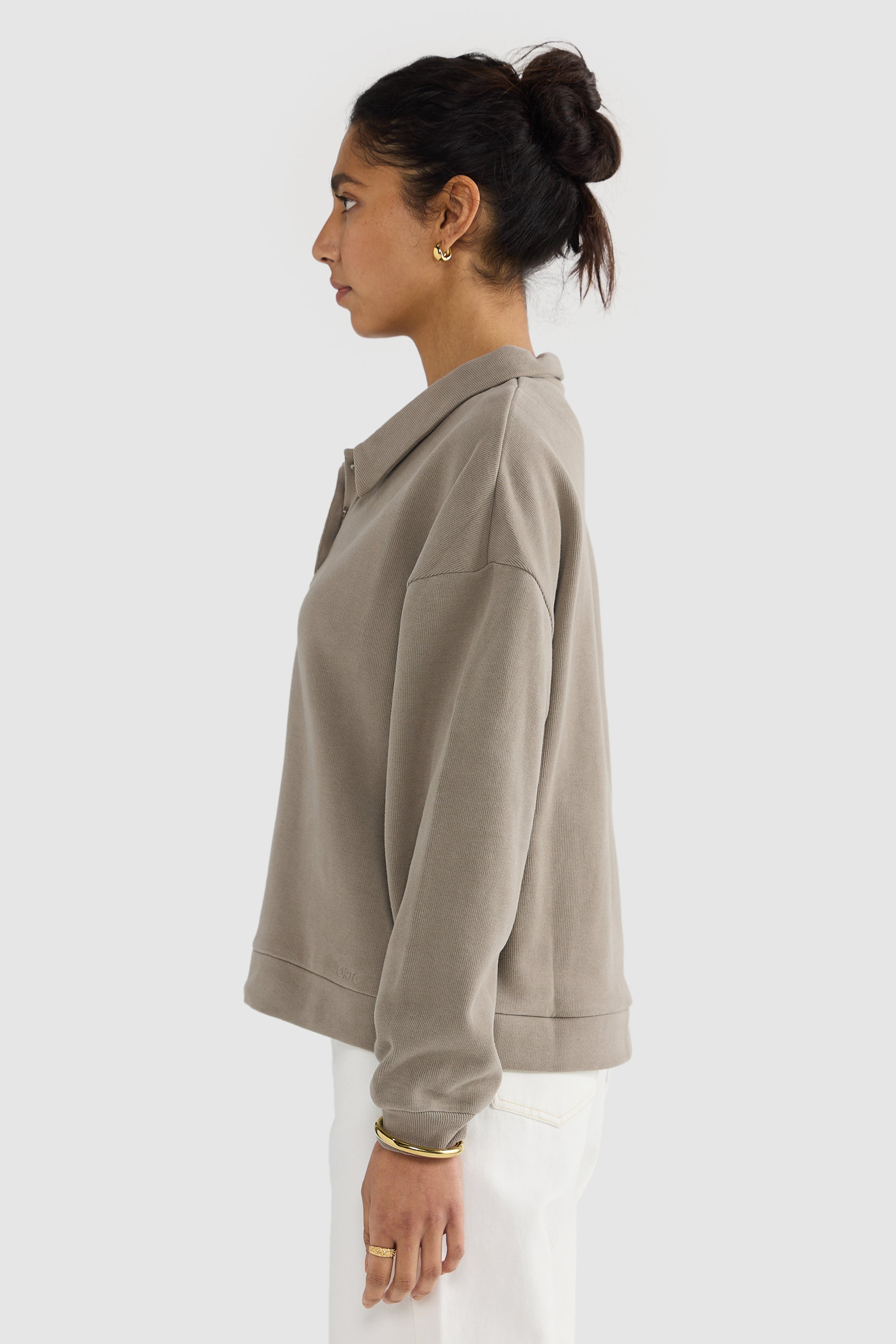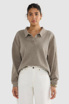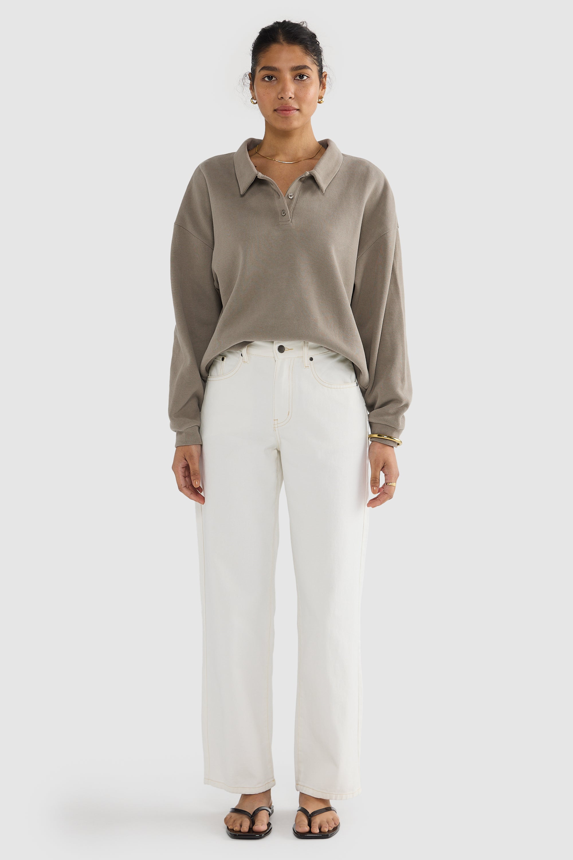 Step out in comfort with the Ava Polo Sweater, a timeless blend of relaxed style and everyday ease. Crafted from brushed cotton with a subtle rib texture, this sweater offers a soft elevated feel. Featuring a button-front polo neckline and tonal ORTC monogram embroidery, it delivers refined details. Designed to be worn as a matching set with our Ava Shorts or Ava Pants.