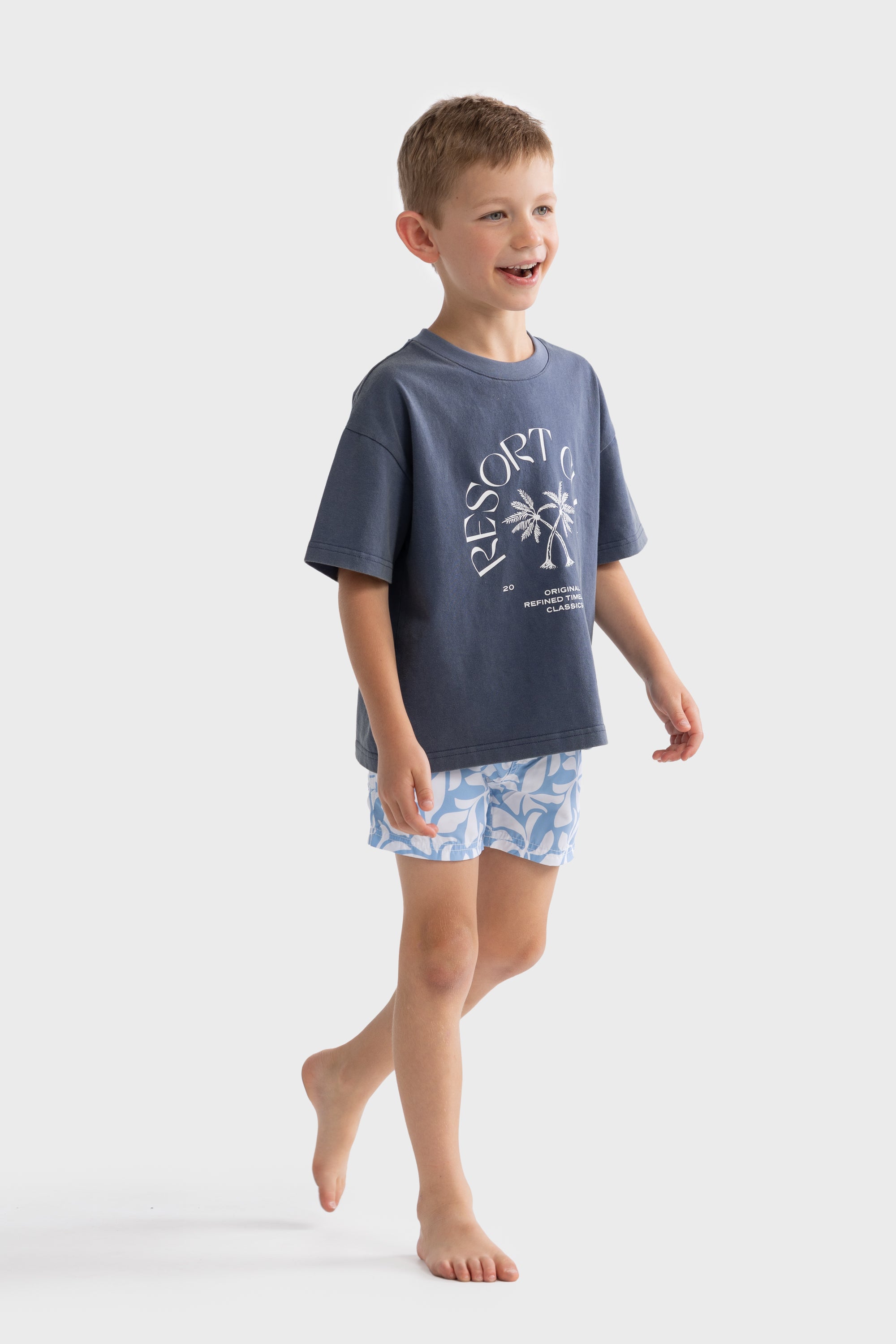 - Quick drying, mid-length swim shorts for children
