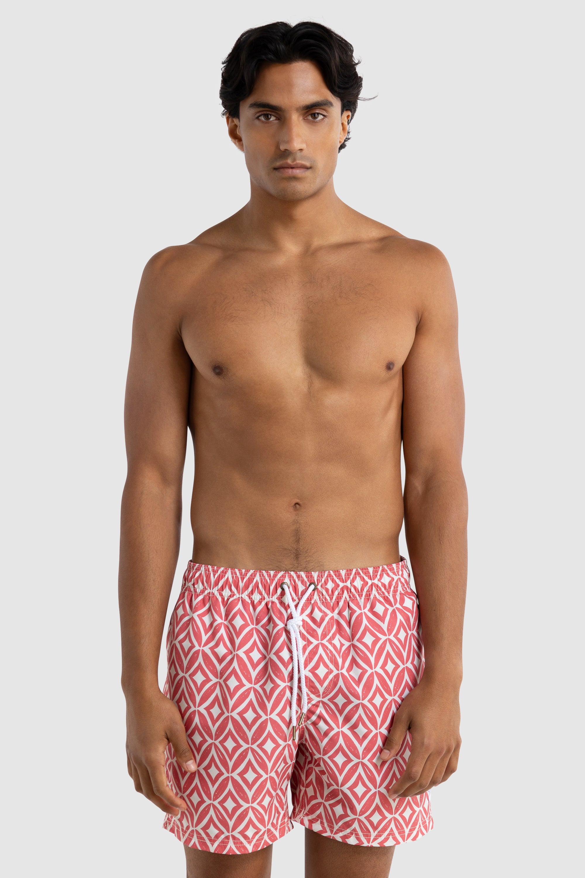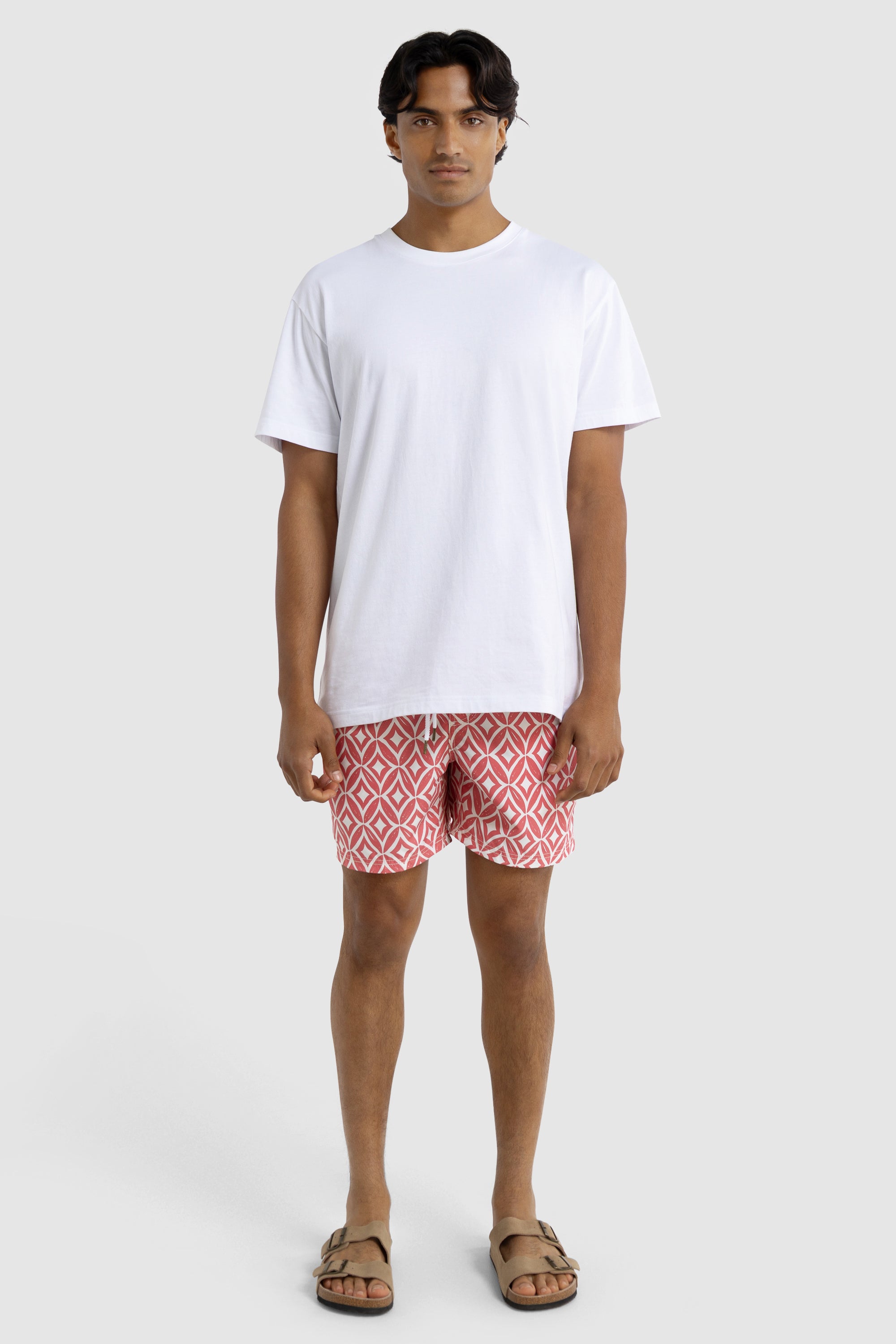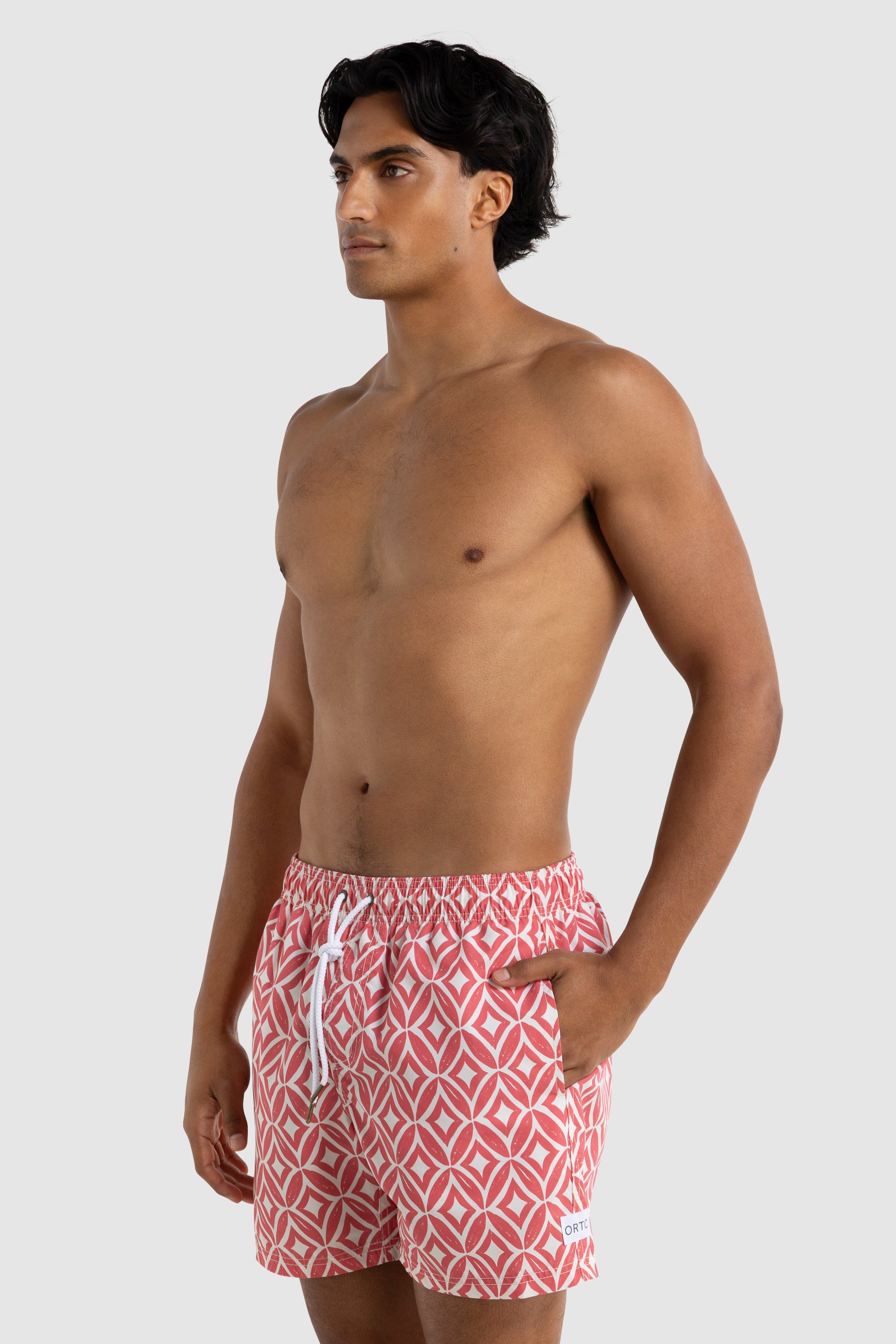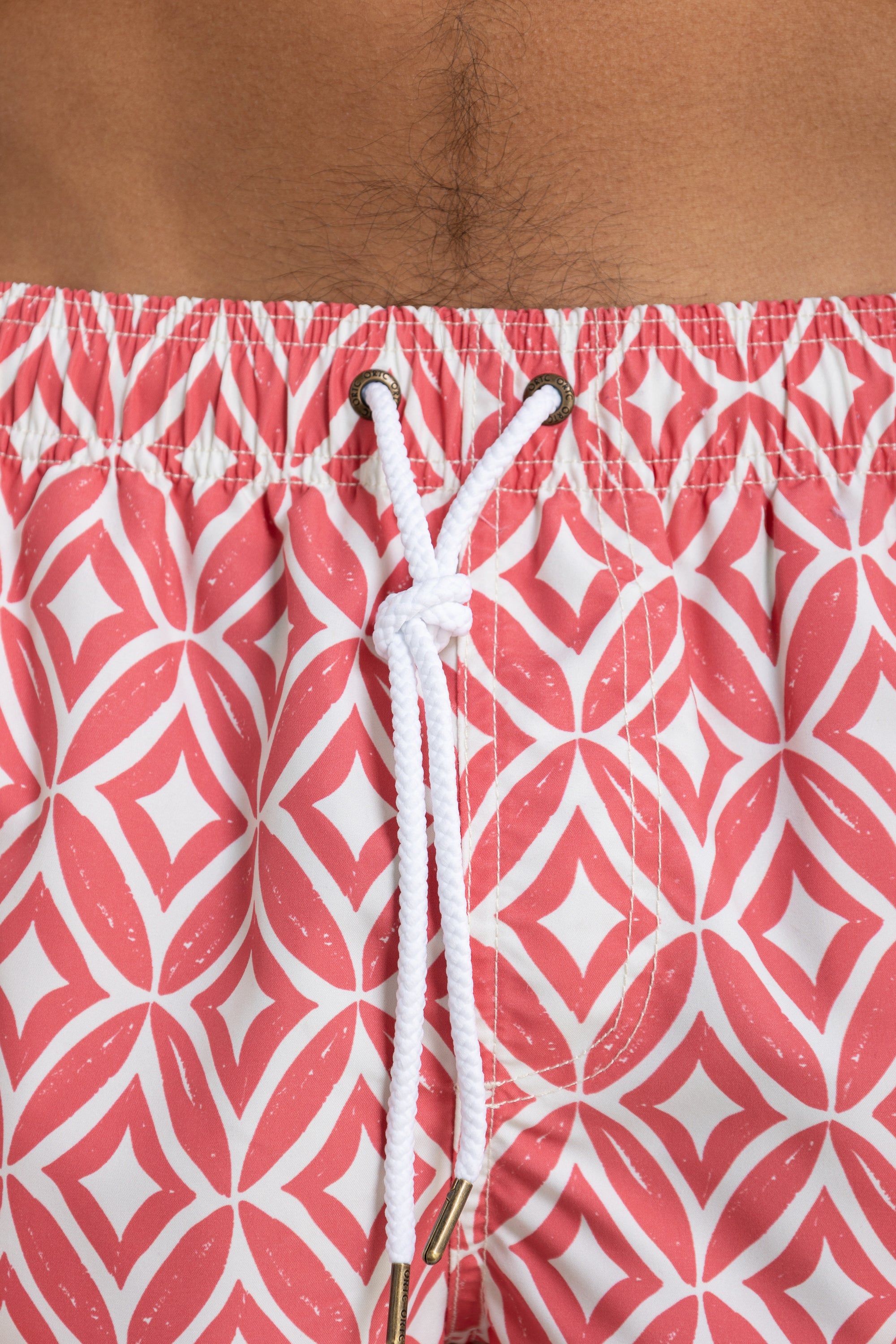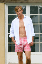 The Cable Swim Shorts Red are the perfect addition to your summer wardrobe. Made from 100% Recycled Polyester, these mid-length shorts are quick-drying and lightweight. The elastic waistband with drawstring provides an adjustable fit, while internal fine mesh briefs provide extra comfort. Pair with one of our Linen shirts  for the perfect summer look.