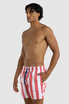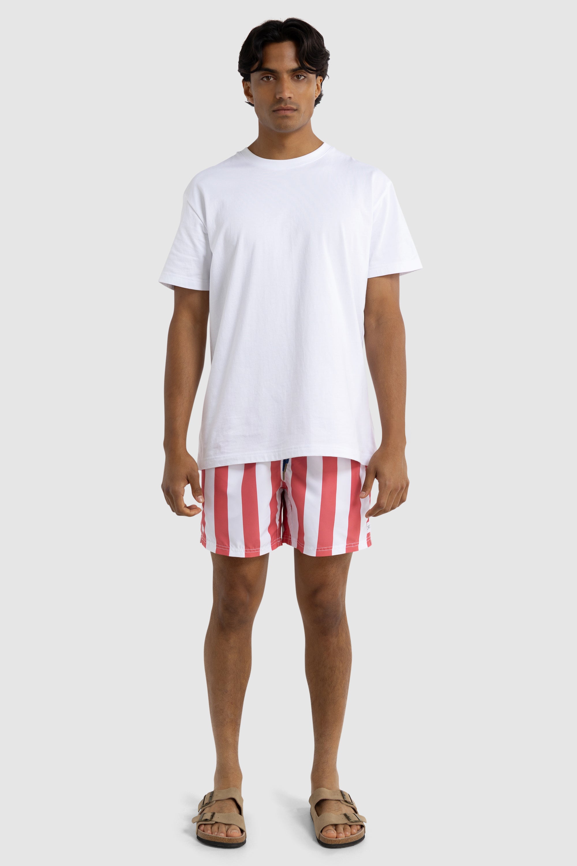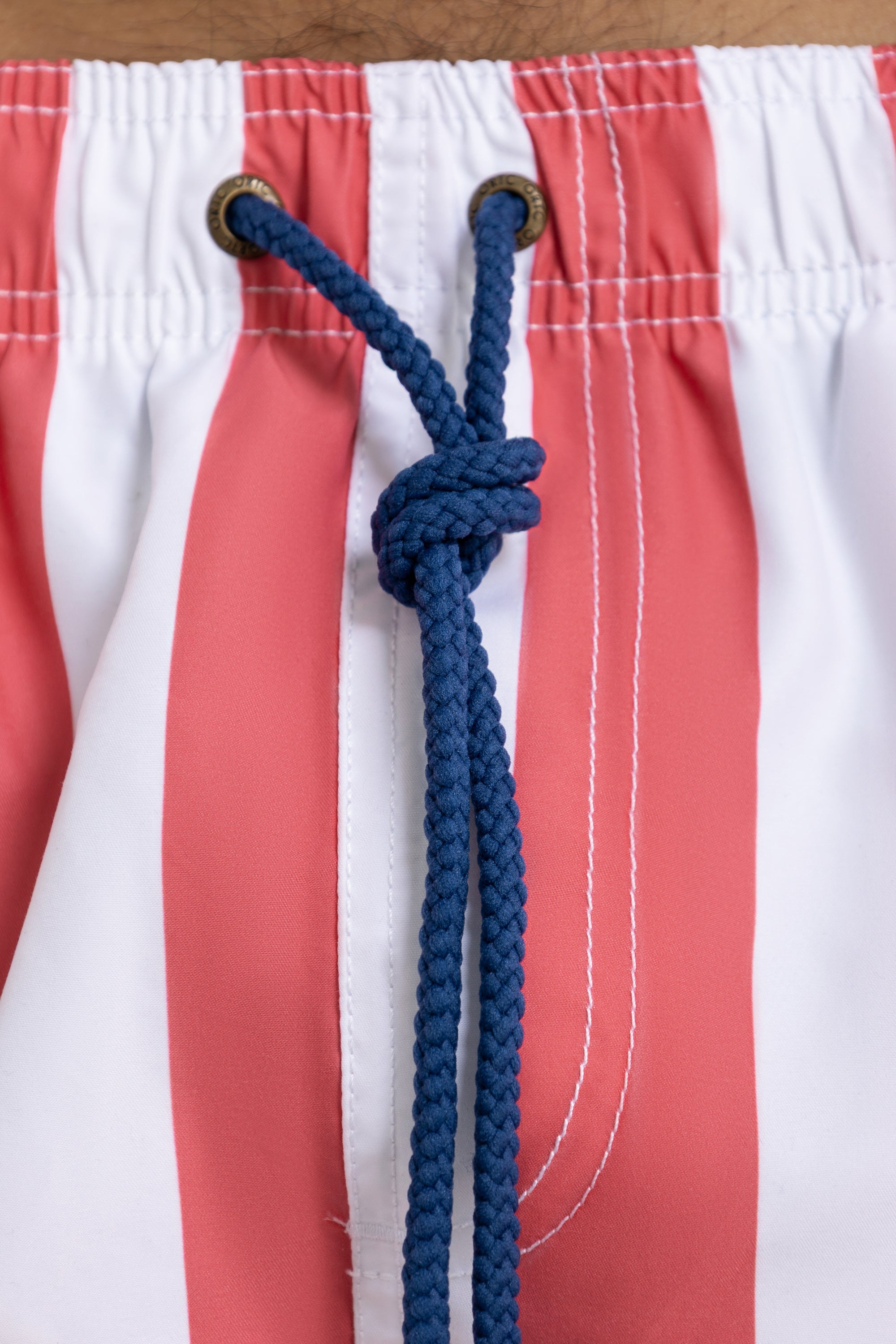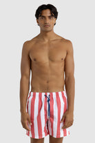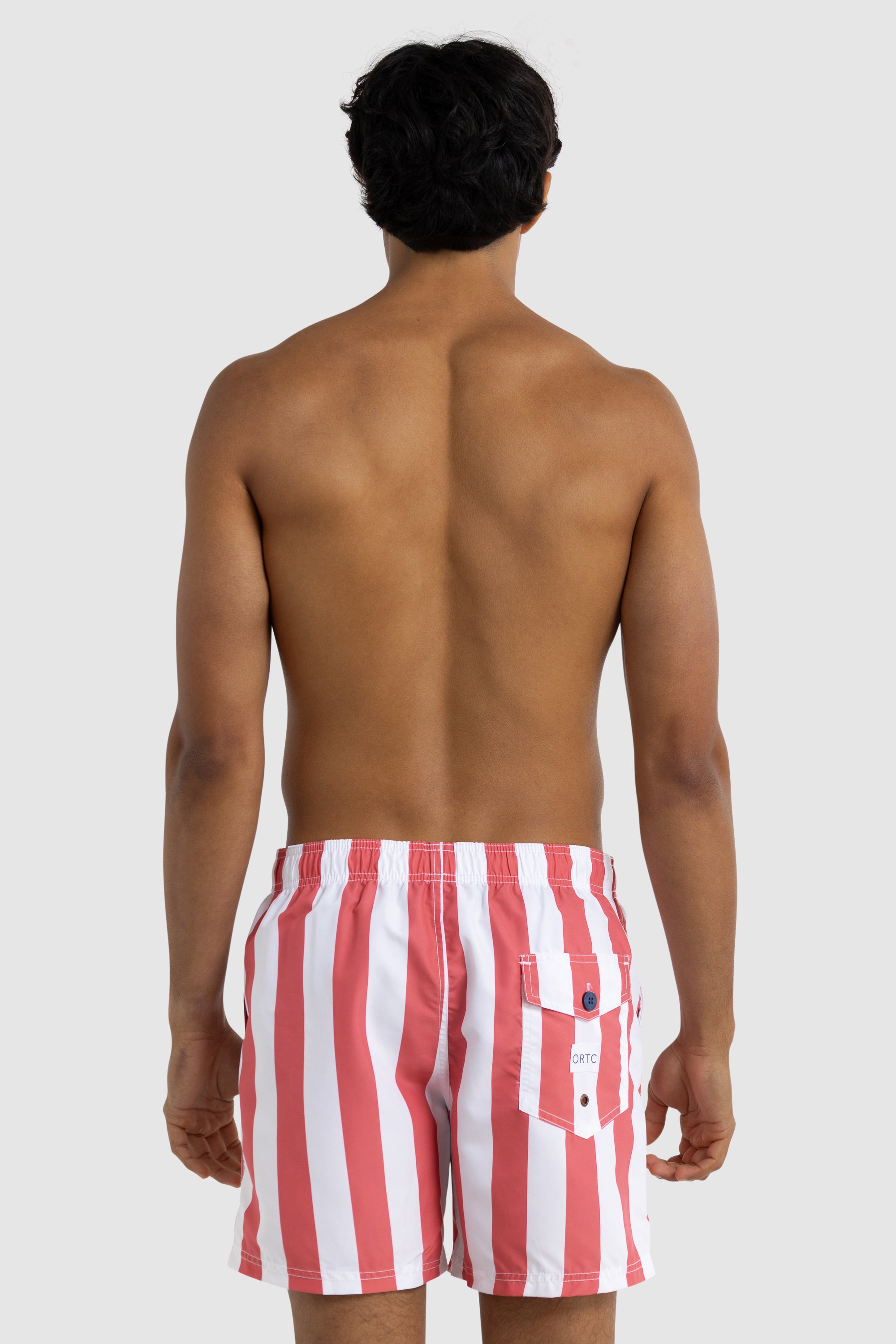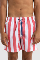 The Portsea Red Swim Shorts are the perfect addition to your summer wardrobe. Made from 100% Recycled Polyester, these mid-length shorts are quick-drying and lightweight. The elastic waistband with drawstring provides an adjustable fit, while internal fine mesh briefs provide extra comfort. Pair with one of our Linen Shirts for  the perfect summer look.