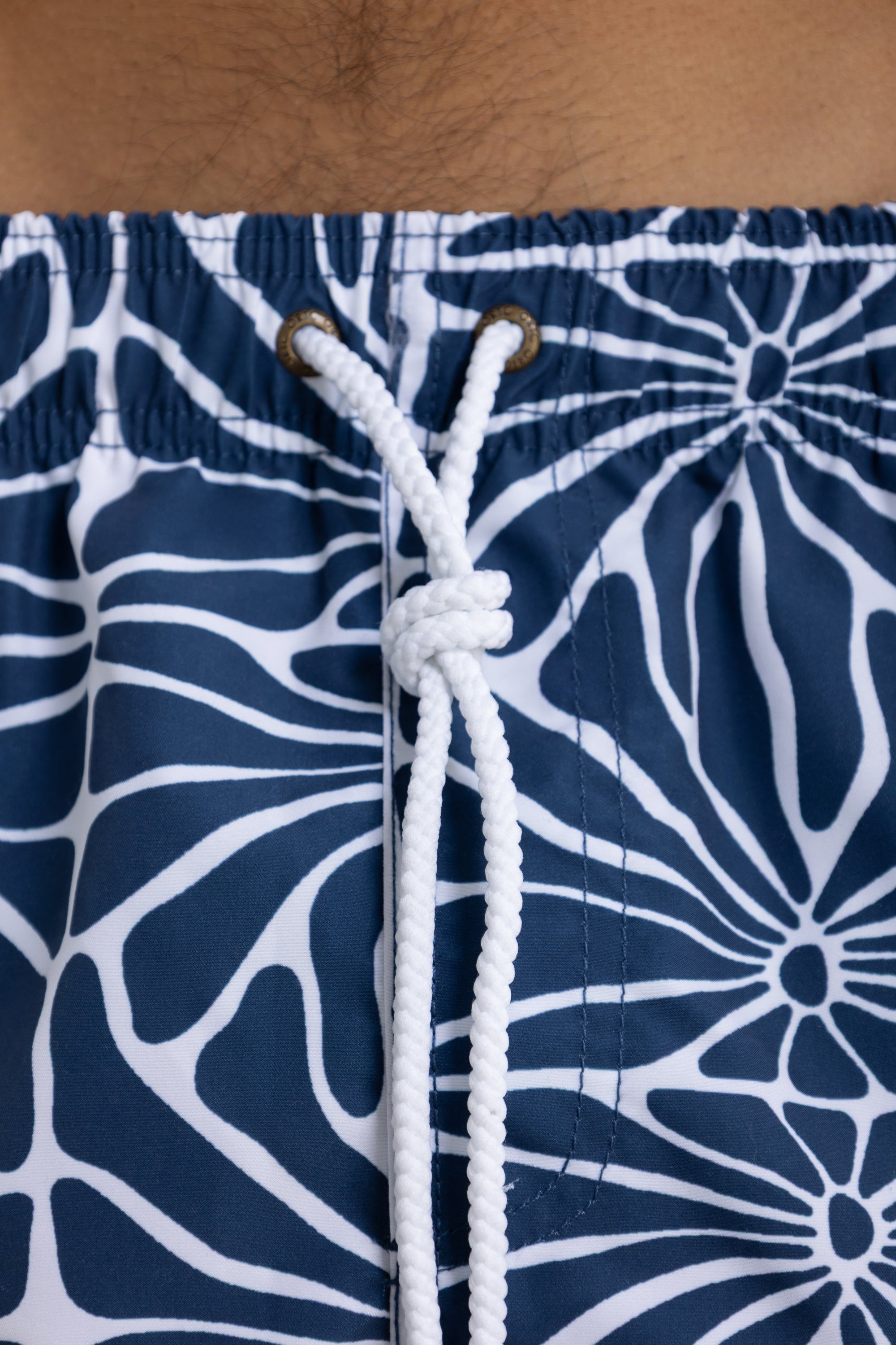 The Shelly Tropic Navy Swim Shorts are the perfect addition to your summer wardrobe. Made from 100% Recycled Polyester, these mid-length shorts are quick-drying and lightweight. The elastic waistband with drawstring provides an adjustable fit, while internal fine mesh briefs provide extra comfort.