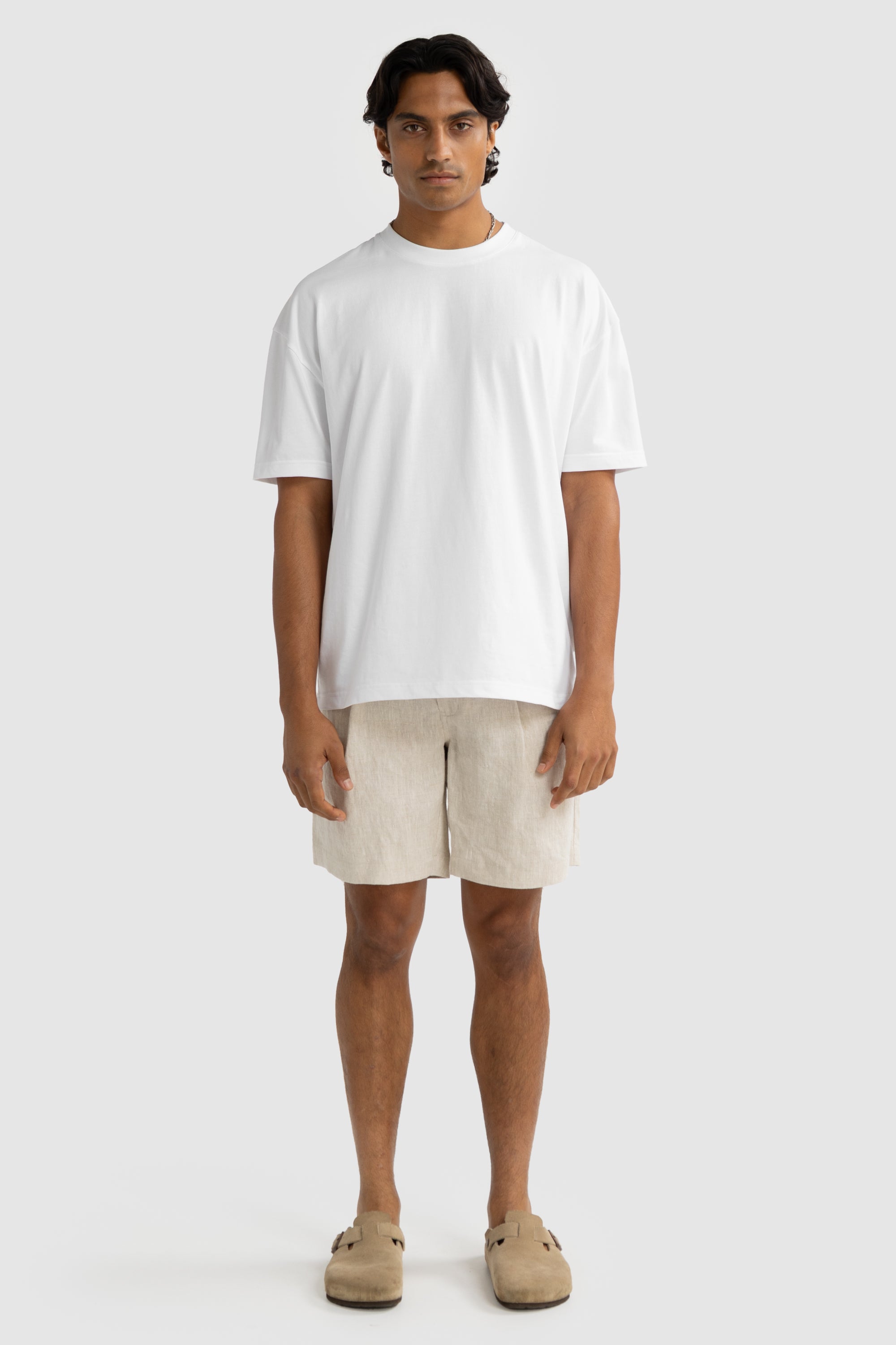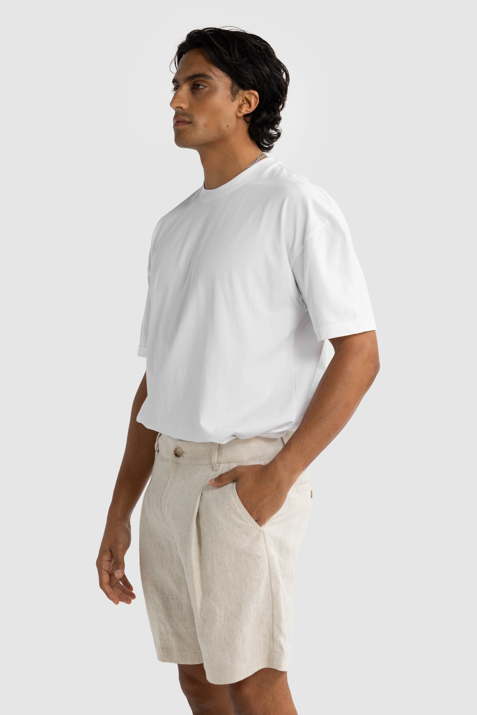 Our Tailored Linen Shorts are a staple for your summer wardrobe. Crafted from 100% washed linen, they follow our signature relaxed fit—striking the perfect balance between comfort, quality, and tailored style. Pair them with one of our Henderson Box Fit T-Shirts for an effortlessly refined summer look.