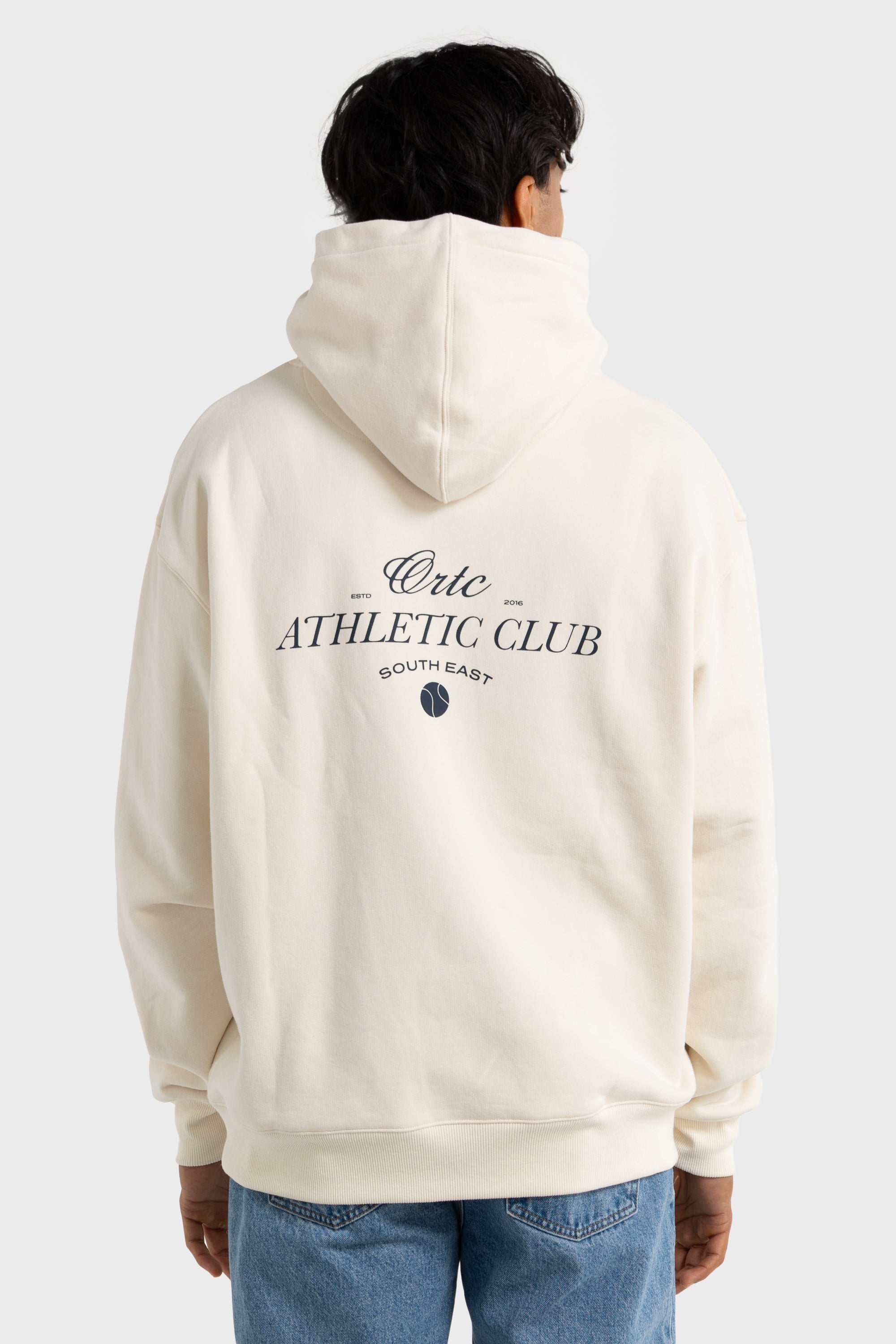 The Athletic Club Hoodie is an easy everyday layer with a classic collegiate feel. Crafted in a soft, heavyweight fleece, it’s cut in a relaxed fit with a roomy hood and front kangaroo pocket for all-day comfort. Finished with a subtle ORTC chest logo and bold Athletic Club back graphic, it’s the kind of throw-on style you’ll wear on repeat.