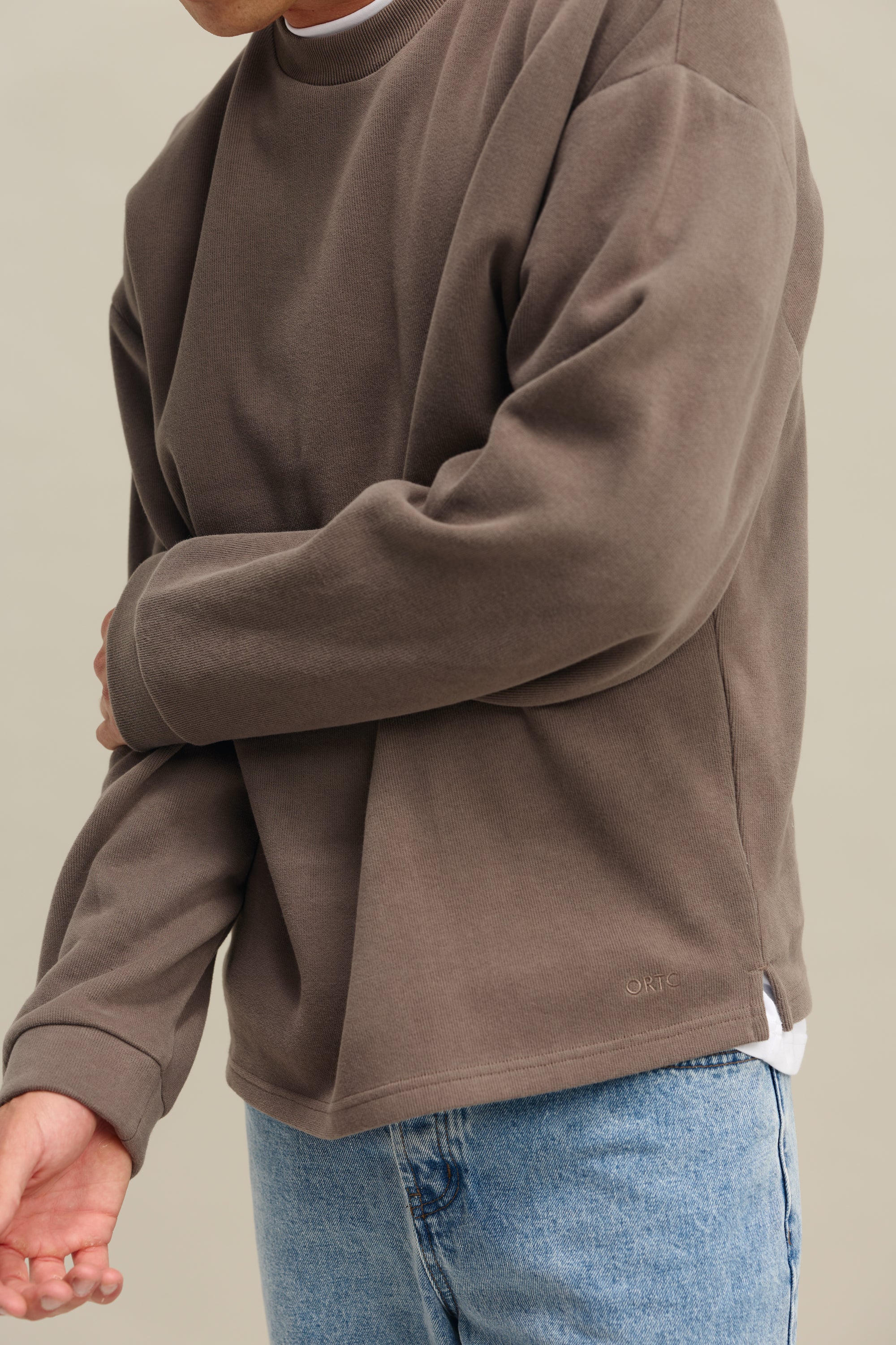 Meet the new Aiden Crew Sweater. Combining effortless style with everyday comfort, the Aiden is designed in a slouchy, relaxed fit that drapes softly on the body. Featuring a ribbed crew neckline, the Aiden is crafted from a high-quality brushed cotton rib for a soft yet structured feel. Finished with a wide ribbed cuff, split hem, and tonal embroidered ORTC logo, it’s your go-to for elevated casual dressing.