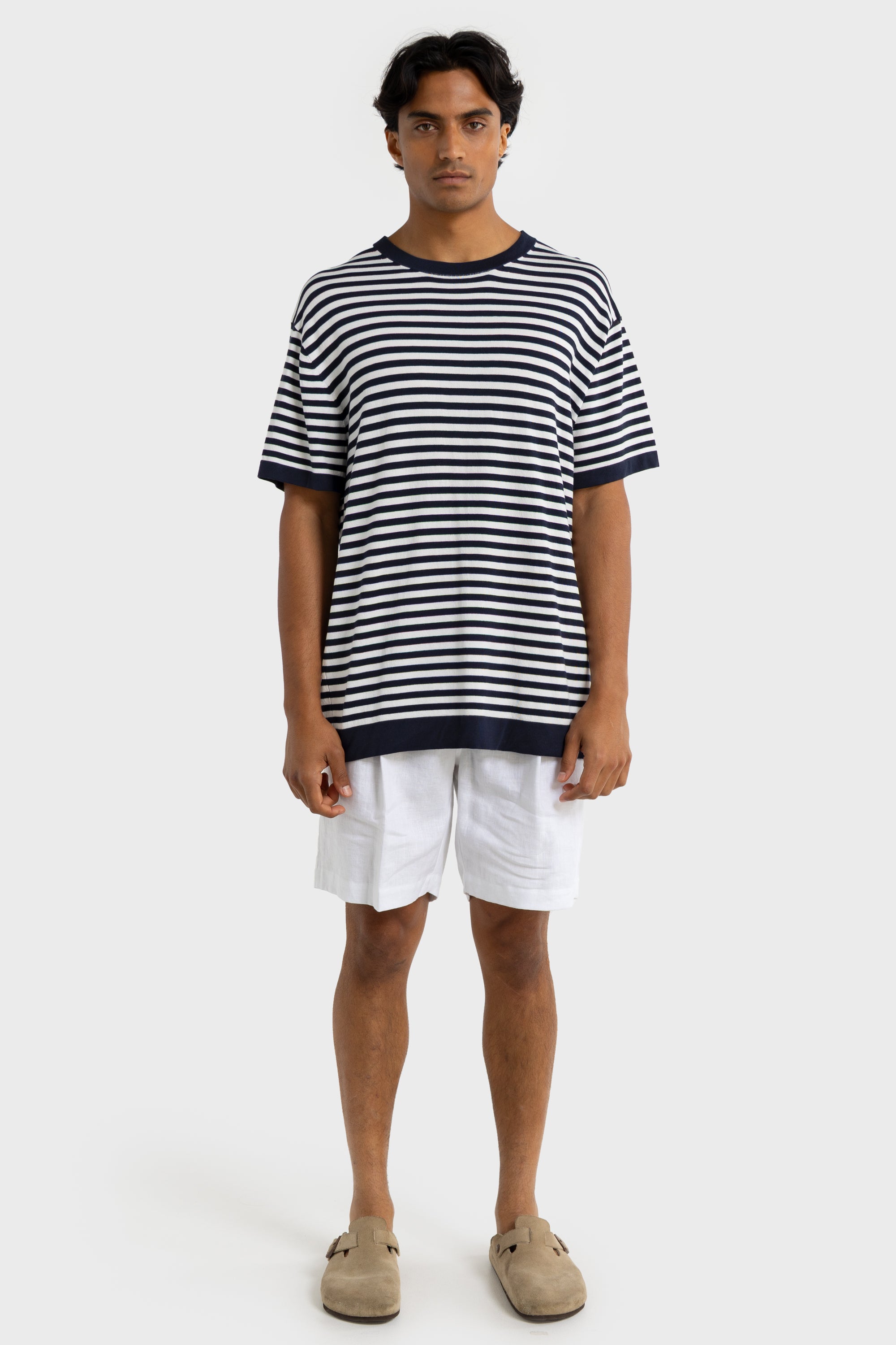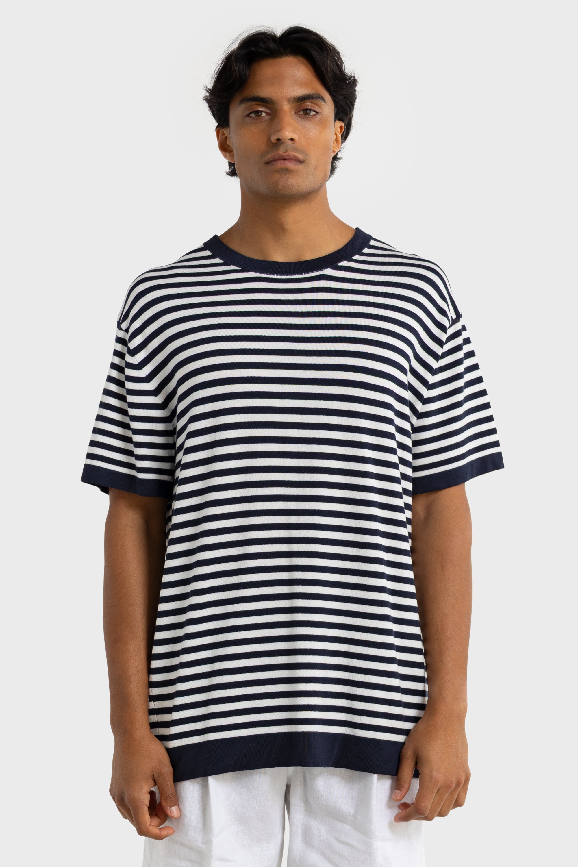 Zephyr Knit T Shirt Navy & White Stripe