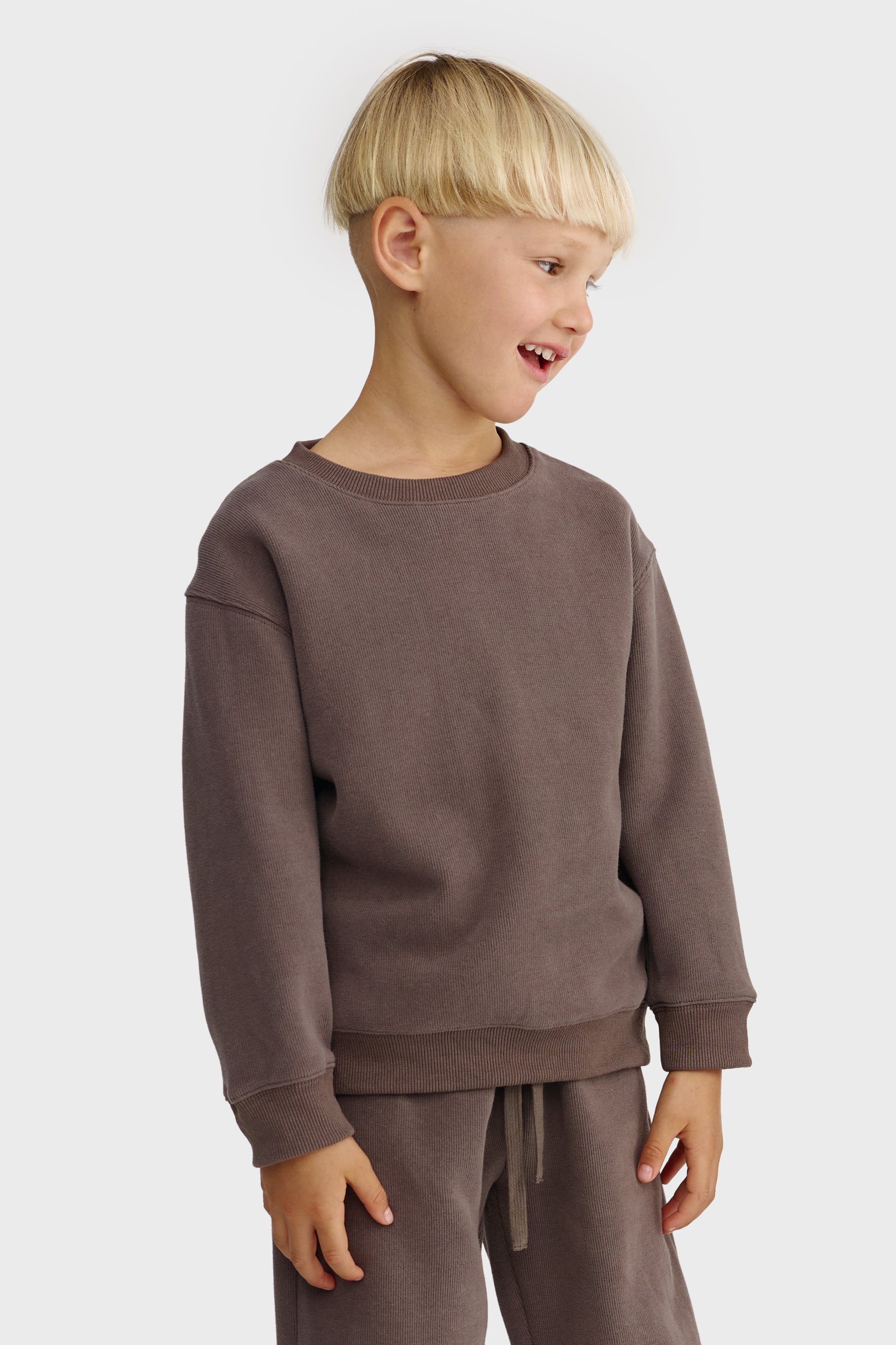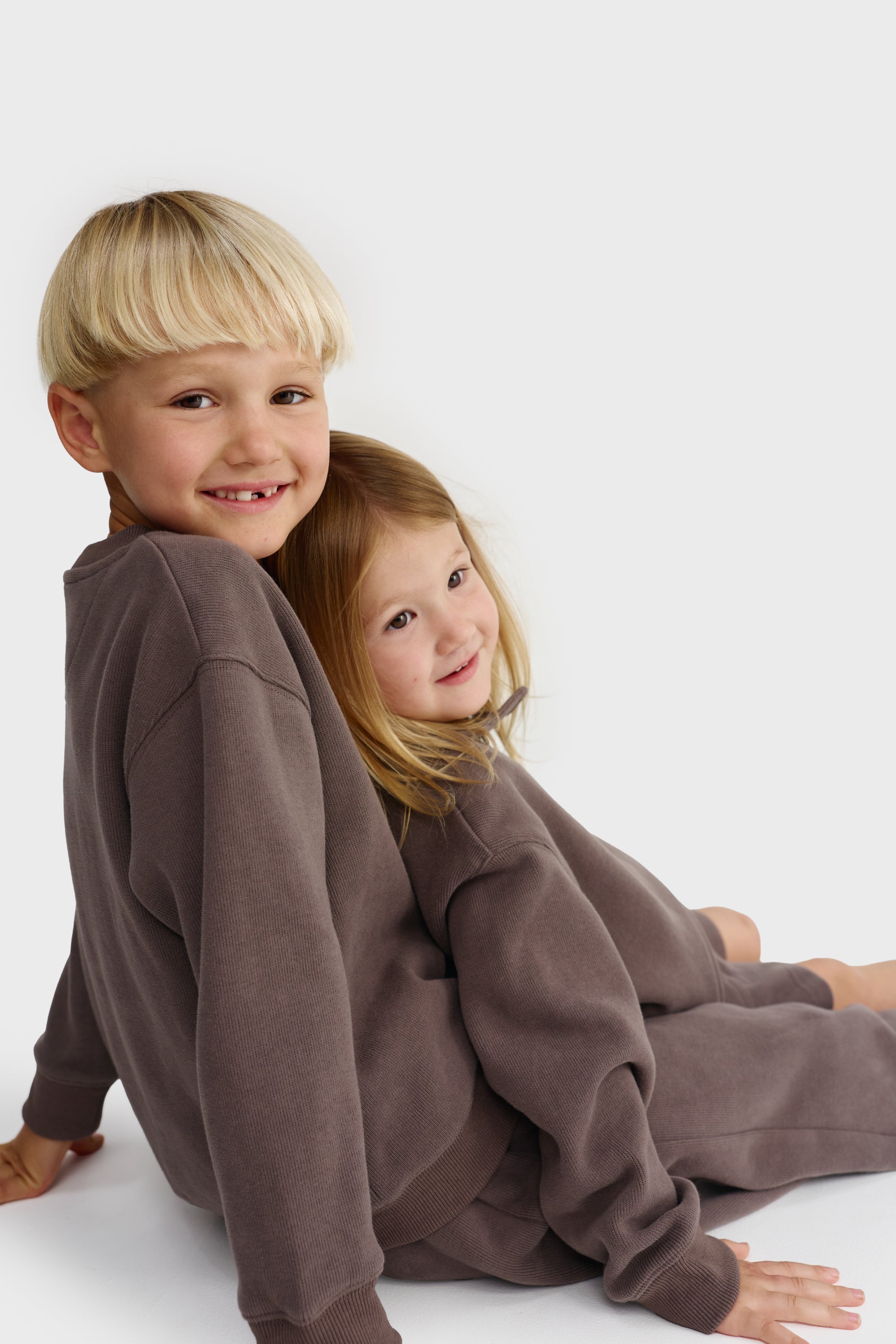 The Jnr Ace Crew Neck Sweater is designed for everyday comfort with a relaxed, easy feel. Crafted from premium cotton with a soft ribbed texture, it features a drop shoulder and oversized silhouette for a laid-back look. Finished with a classic crew neckline, ribbed cuffs and hem, it’s a versatile for daily wear. Perfect for layering on cooler days, this is an easy throw-on style built for play, comfort, and everything in between.