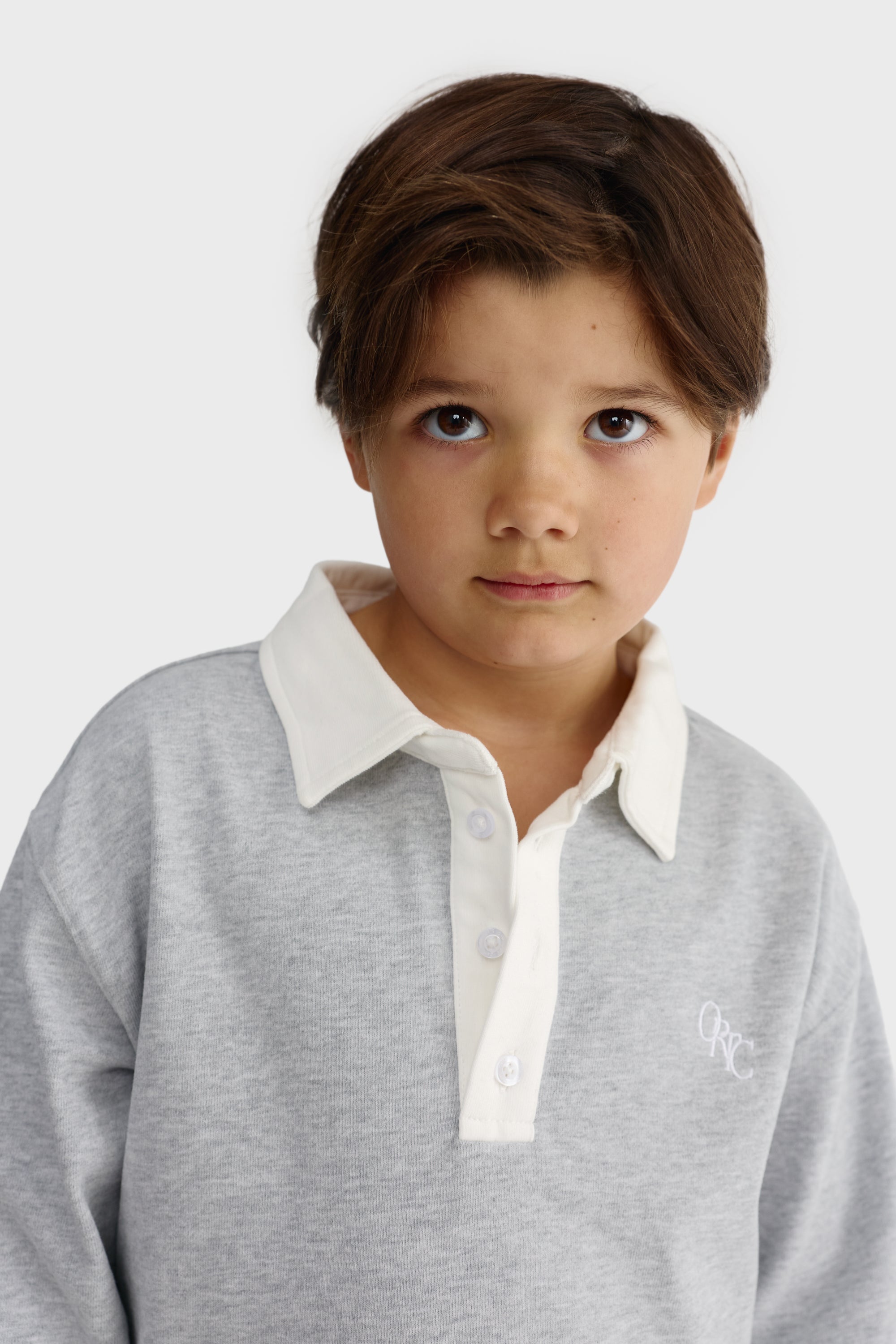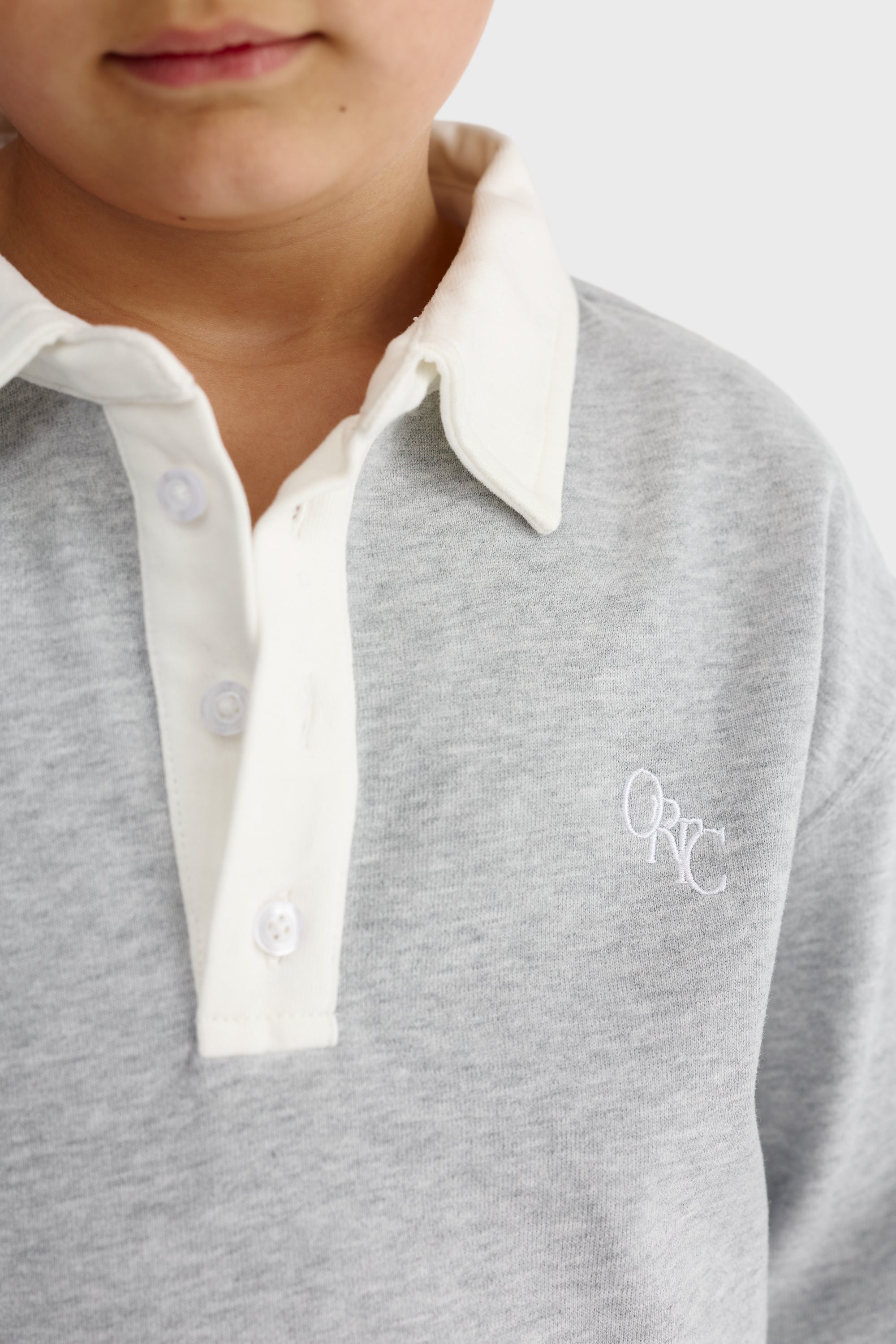 - Contrast twill rugby collar with button placket