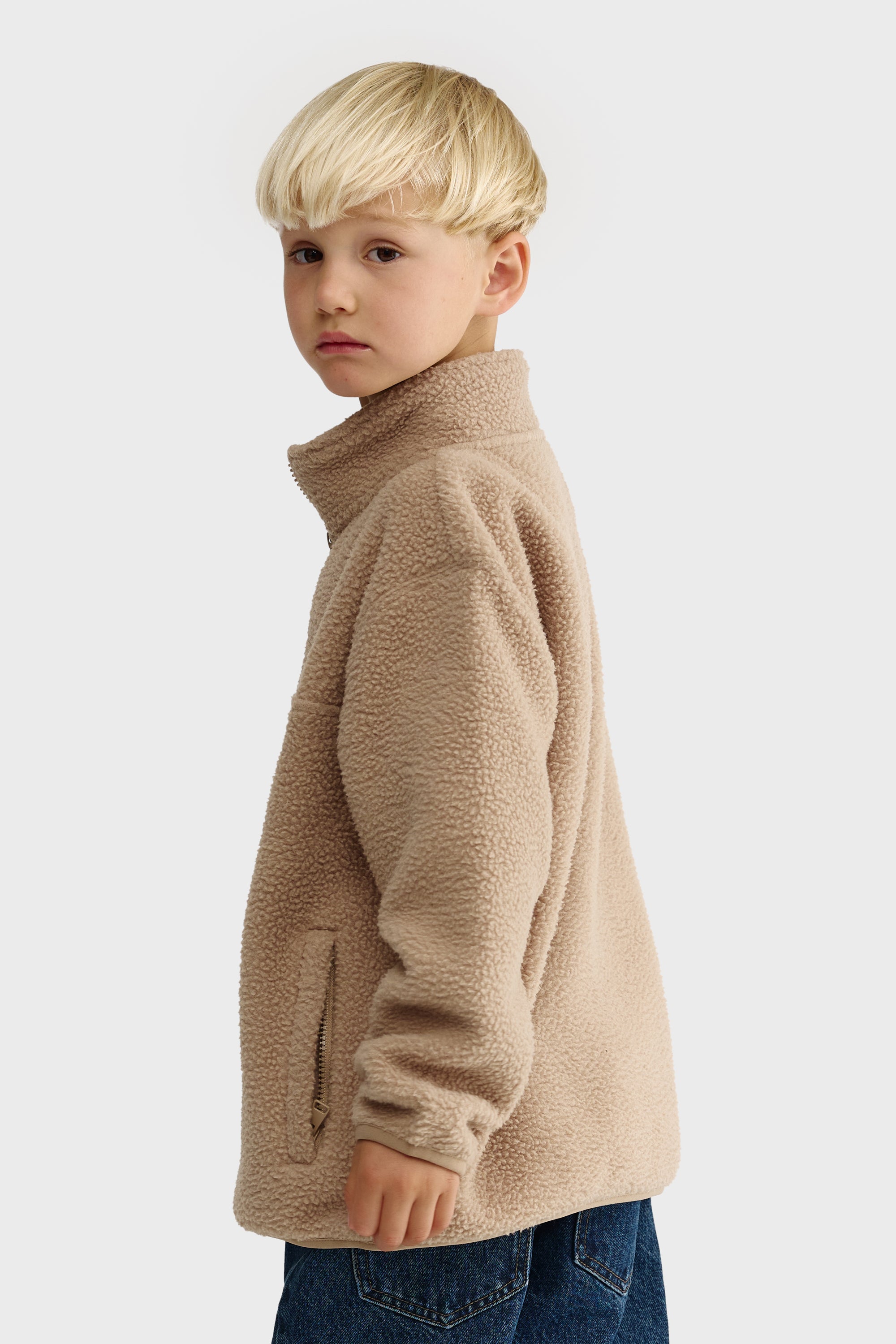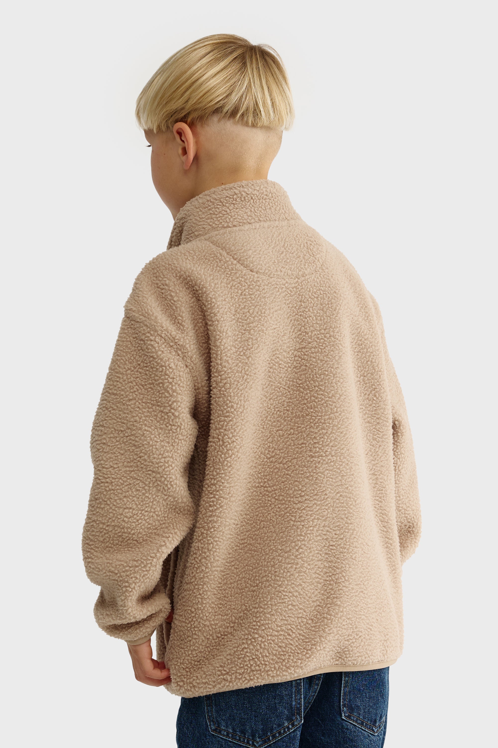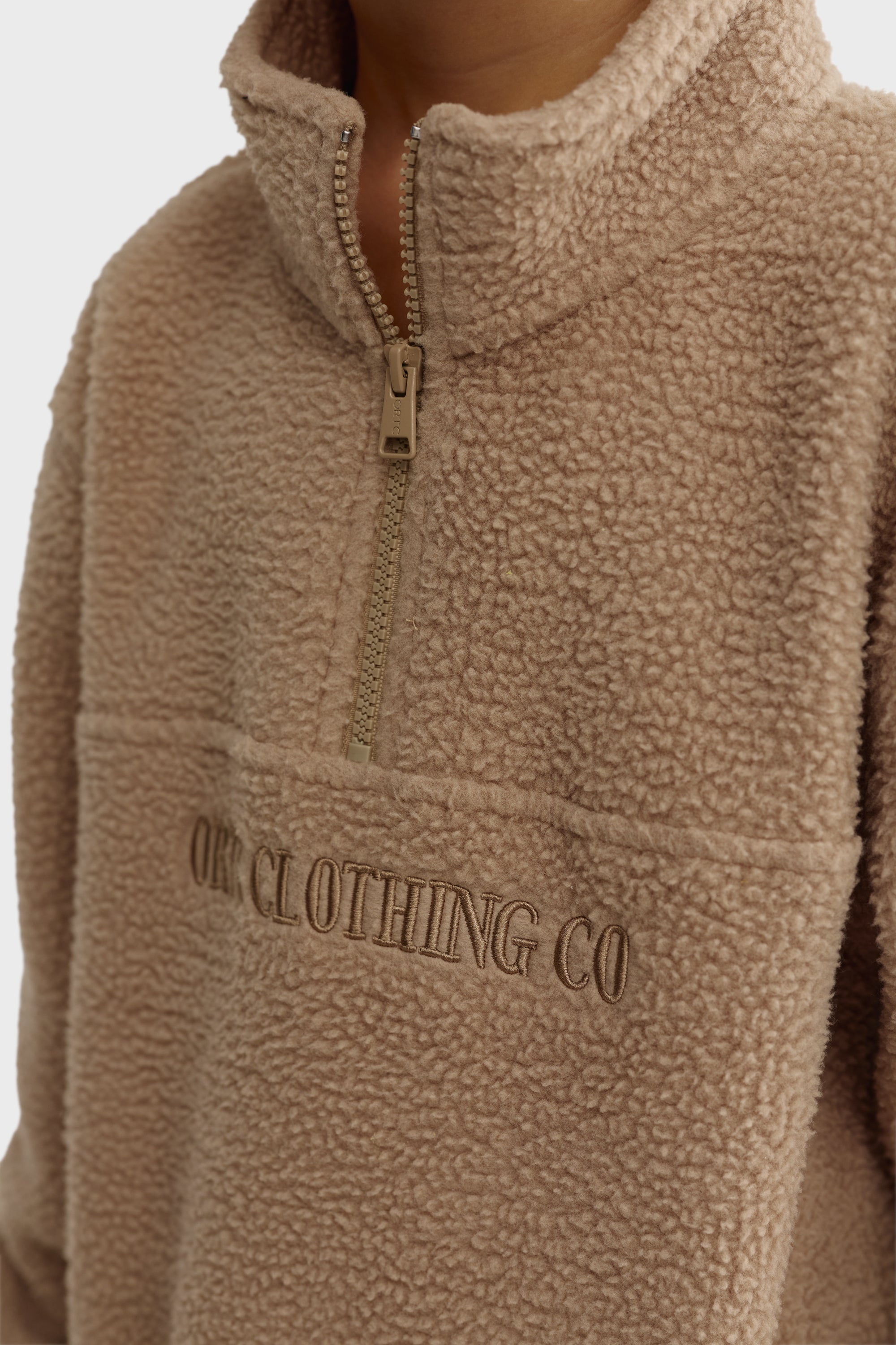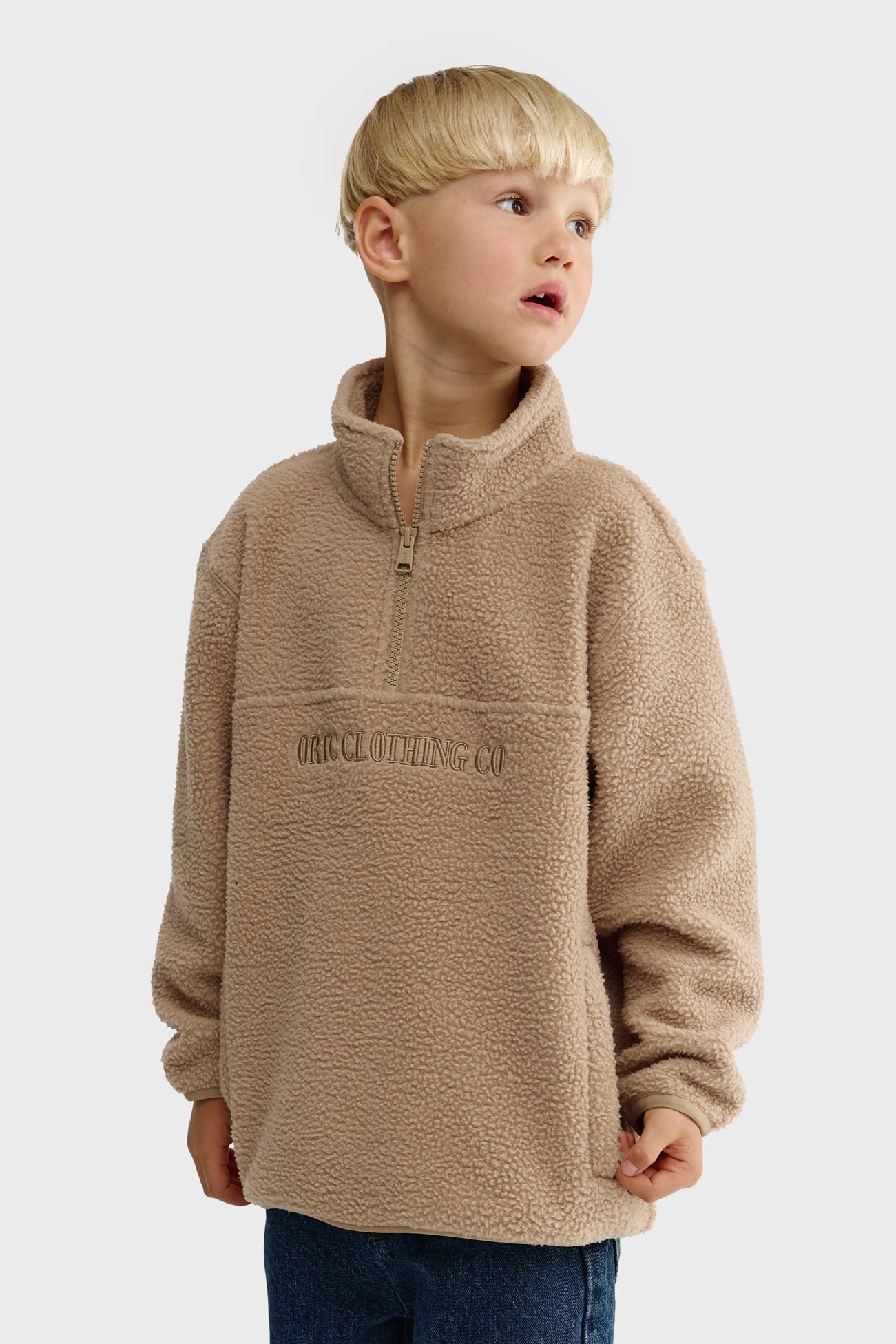 Match with your mini and keep warm in style with the Jnr Sherpa Fleece Logo Quarter Zip, a signature piece and a true ORTC favourite. Crafted with a soft sherpa fleece outer and a cosy polar fleece lining, this style is designed for ultimate warmth and comfort. Featuring a quarter zip neckline, zip-up side pockets, and a woven ORTC logo label, it blends function with an effortlessly relaxed look. Cut in an oversized fit, it’s made to last through seasons as your little one grows — a go-to layer you’ll reach for again and again.