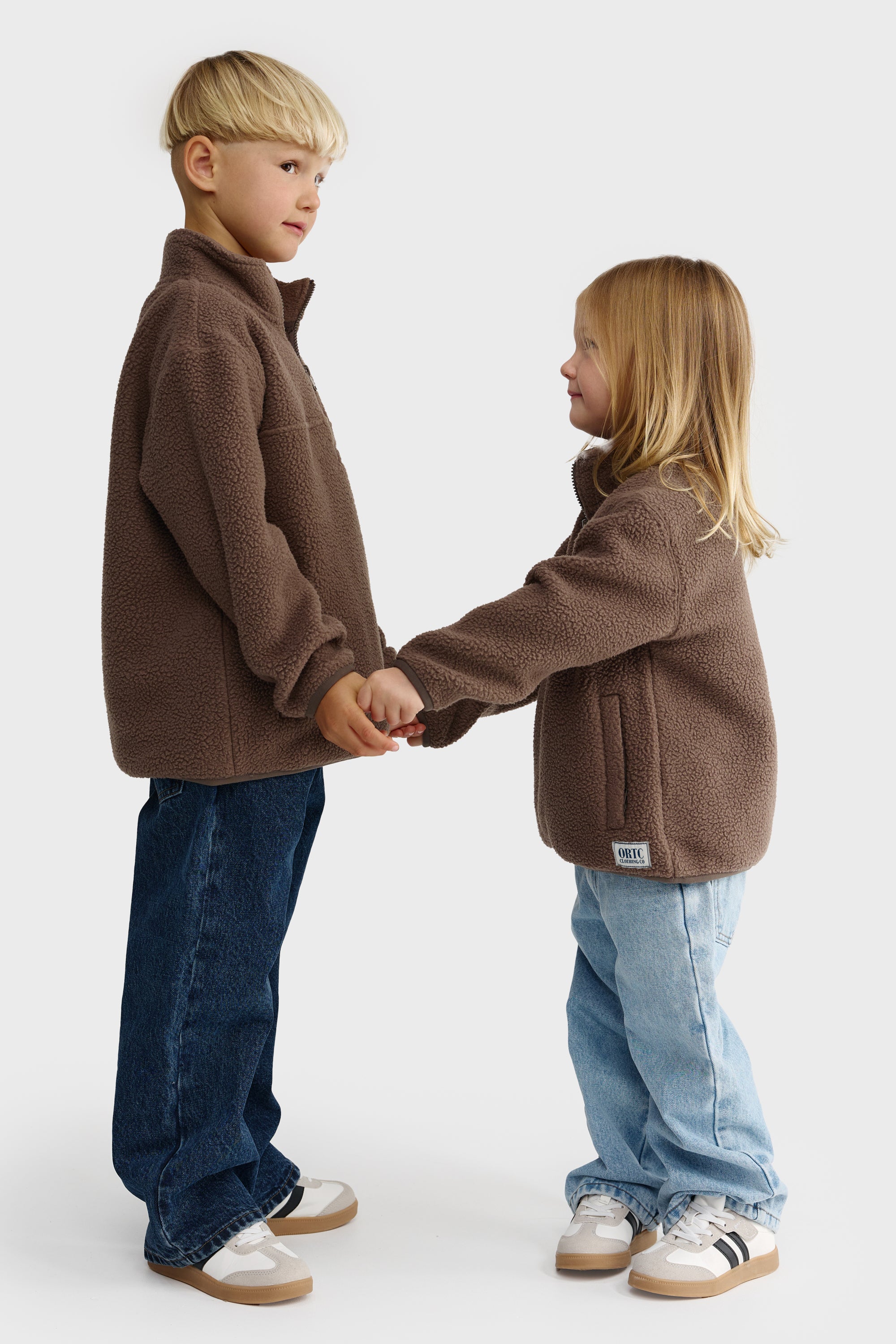 Match with your mini and keep warm in style with the Jnr Sherpa Fleece Quarter Zip, a signature piece and a true ORTC favourite. Crafted with a soft sherpa fleece outer and a cosy polar fleece lining, this style is designed for ultimate warmth and comfort. Featuring a quarter zip neckline, zip-up side pockets. Cut in an oversized fit, it’s made to last through seasons as your little one grows, a go-to layer you’ll reach for again and again.