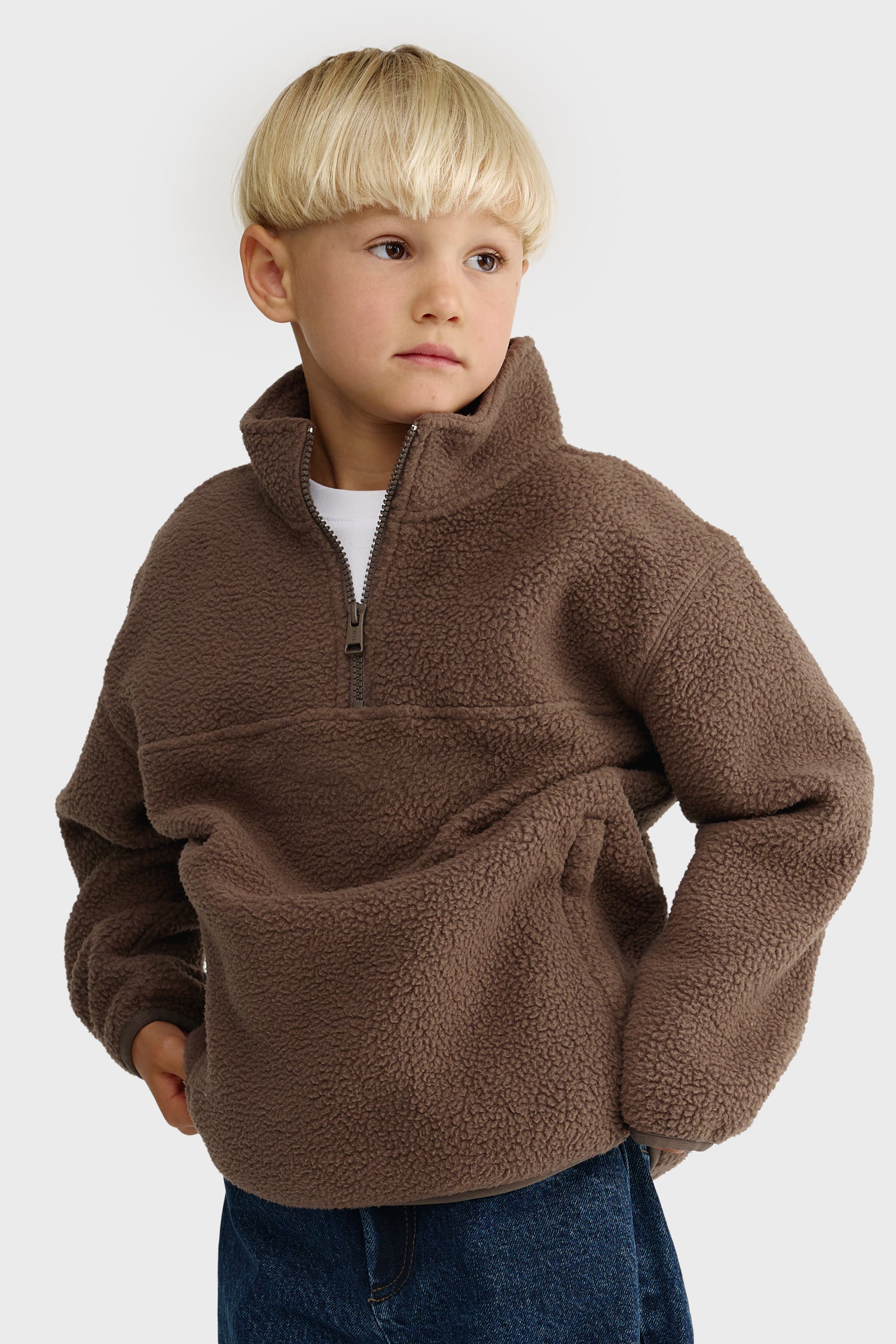 Jnr Sherpa Fleece Quarter Zip Espresso