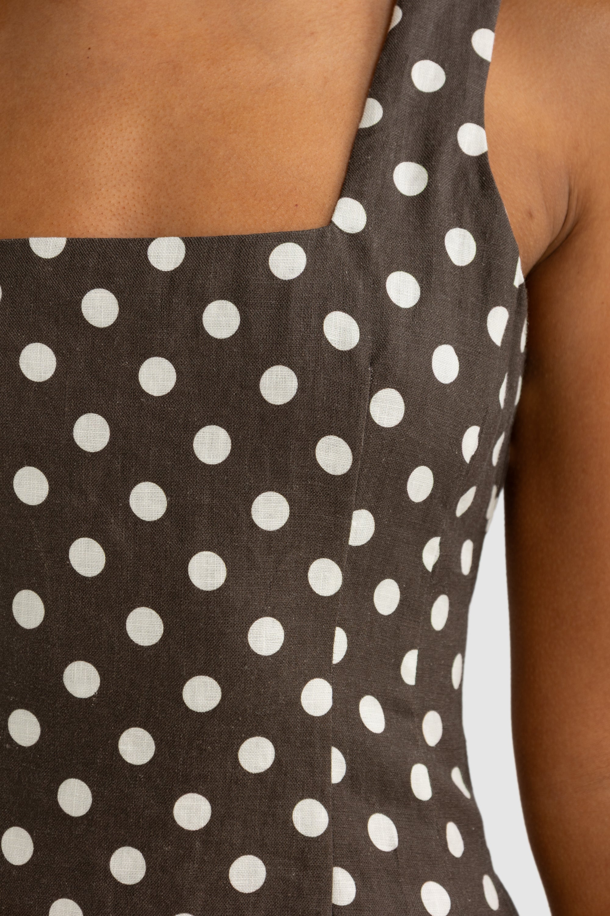 Zoey Linen Mini Dress Carob Polkadot