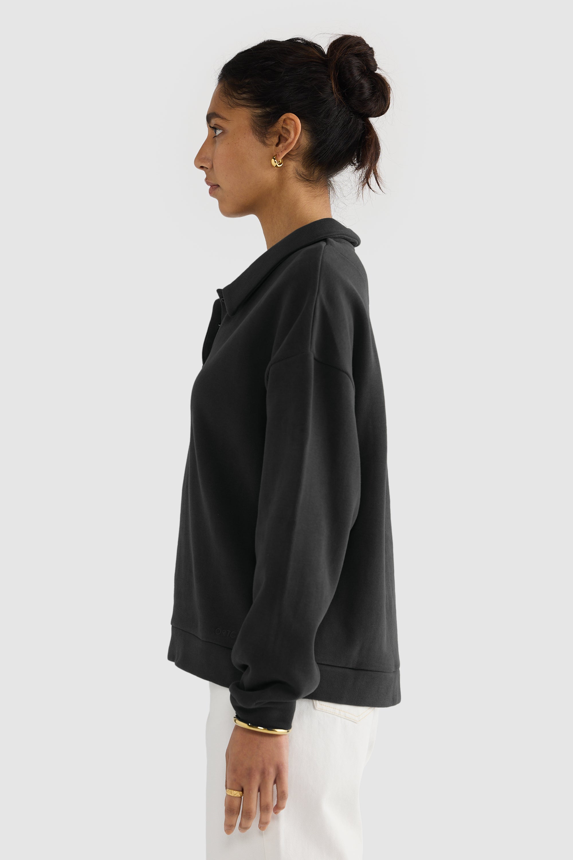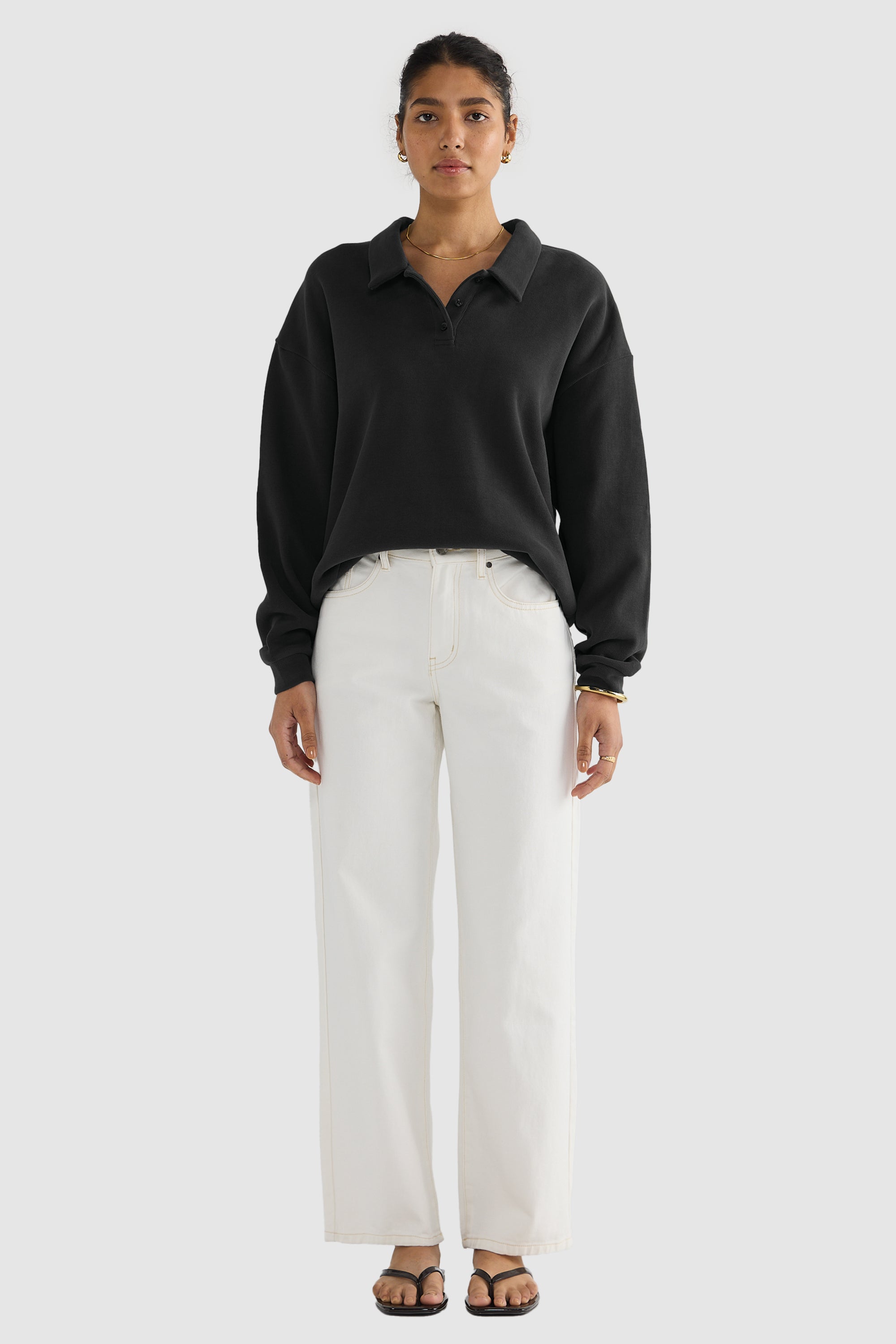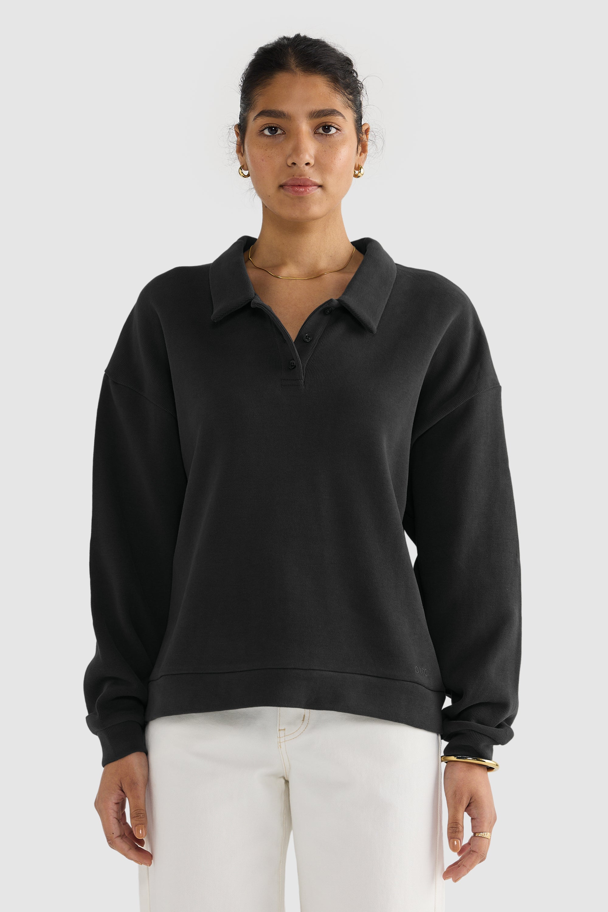 Step out in comfort with the Ava Polo Sweater, a timeless blend of relaxed style and everyday ease. Crafted from brushed cotton with a subtle rib texture, this sweater offers a soft elevated feel. Featuring a button-front polo neckline and tonal ORTC monogram embroidery, it delivers refined details. Designed to be worn as a matching set with our Ava Shorts or Ava Pants.