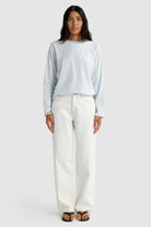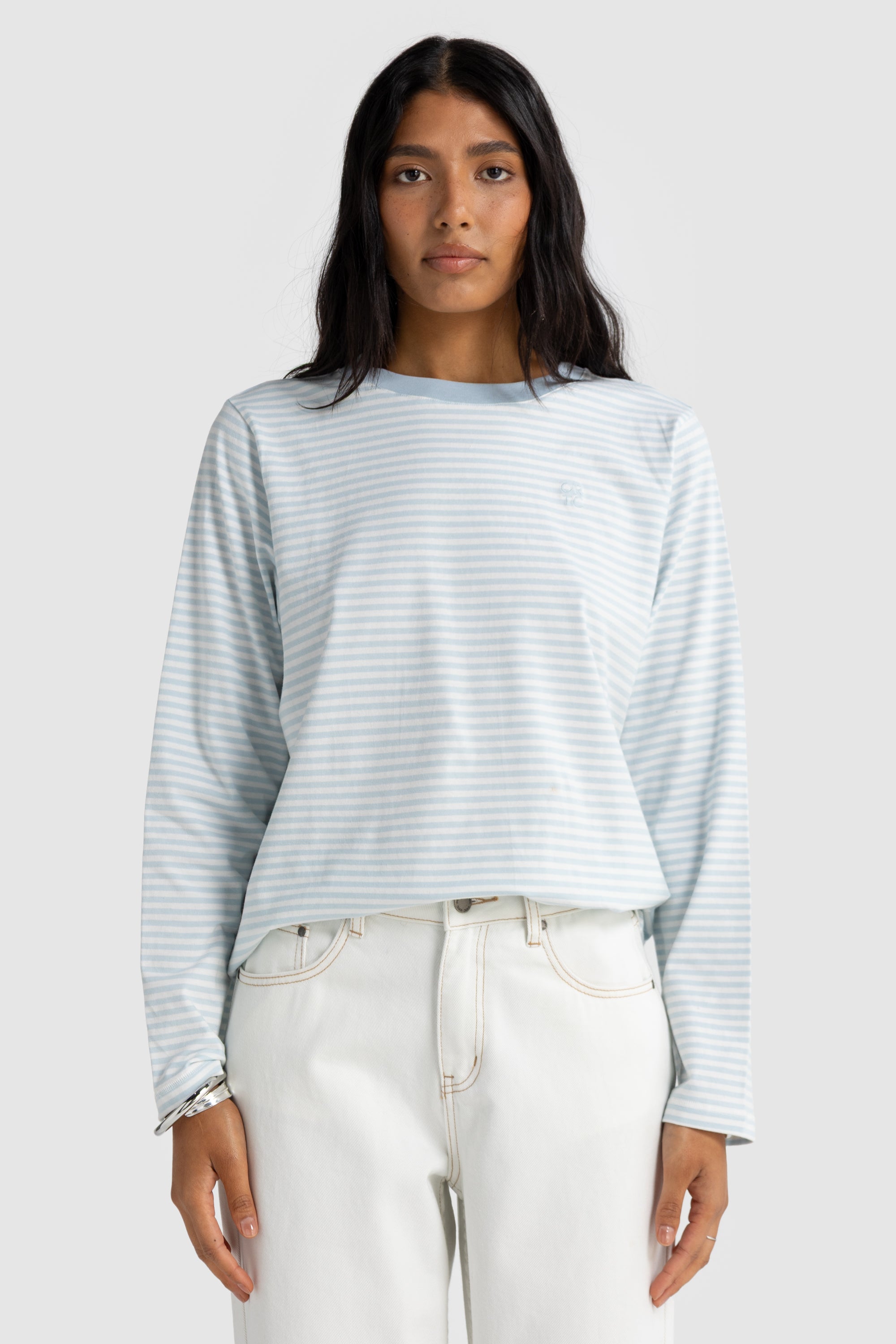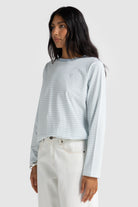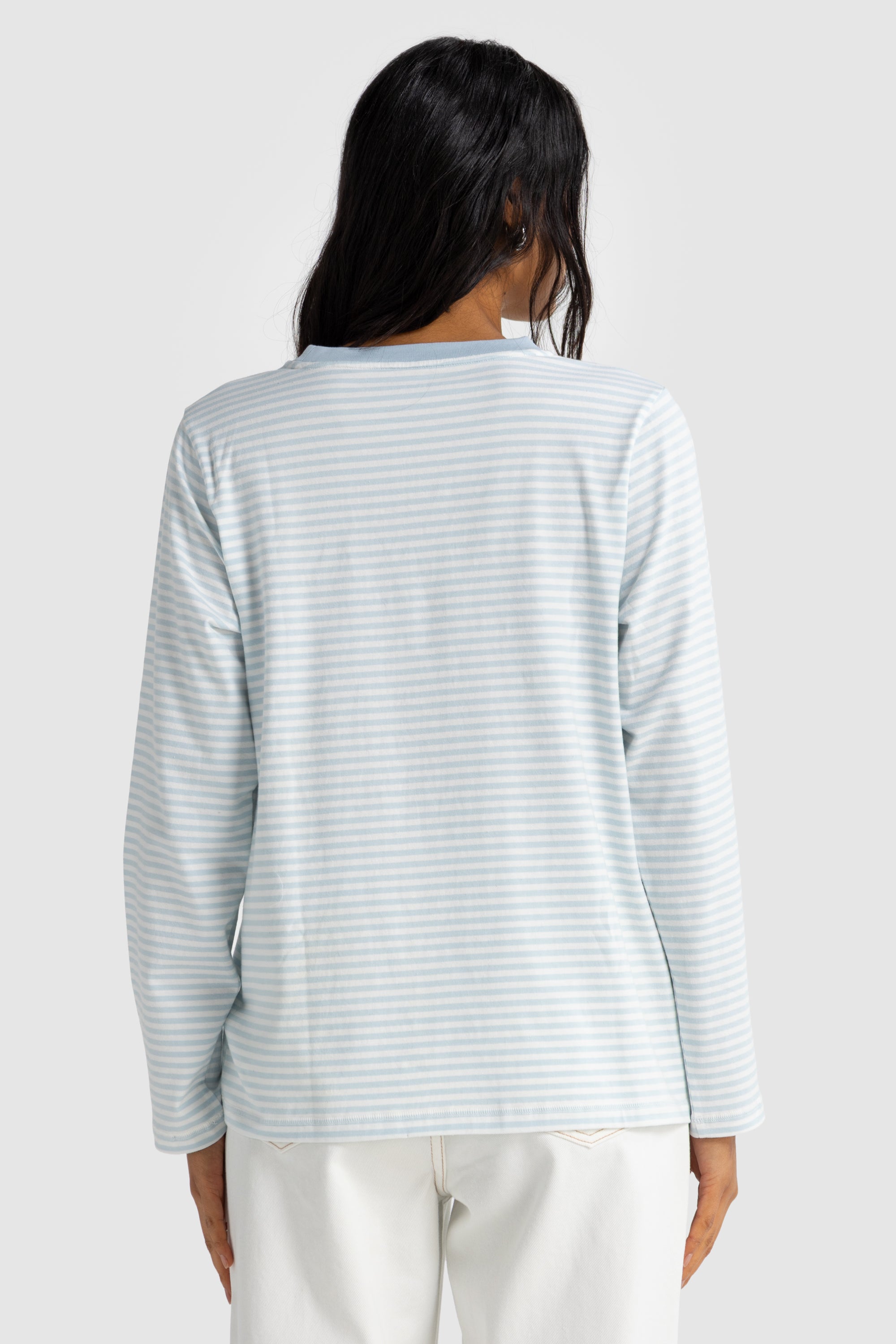 The Darla Long Sleeve T-Shirt is a refined everyday essential designed for ultimate comfort and versatility. Crafted from soft, breathable cotton, it features a relaxed silhouette that drapes effortlessly on the body. The classic stripe design is elevated with a contrasting neckline and a clean, white embroidered ORTC stacked logo at the chest for a subtle touch of branding. The Darla Long Sleeve pairs seamlessly with denim for easy, off-duty styling.