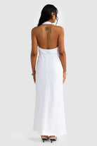 Elegant and effortless, the Elise Wrap Full Length Dress is designed for timeless sophistication. Featuring a halter neck silhouette with a deep V neckline and an open back, this dress ties neatly at the waist to create a flattering wrap effect. The Elise offers breathable comfort and a soft drape that moves beautifully with the body — perfect for both elevated daywear and evening occasions.