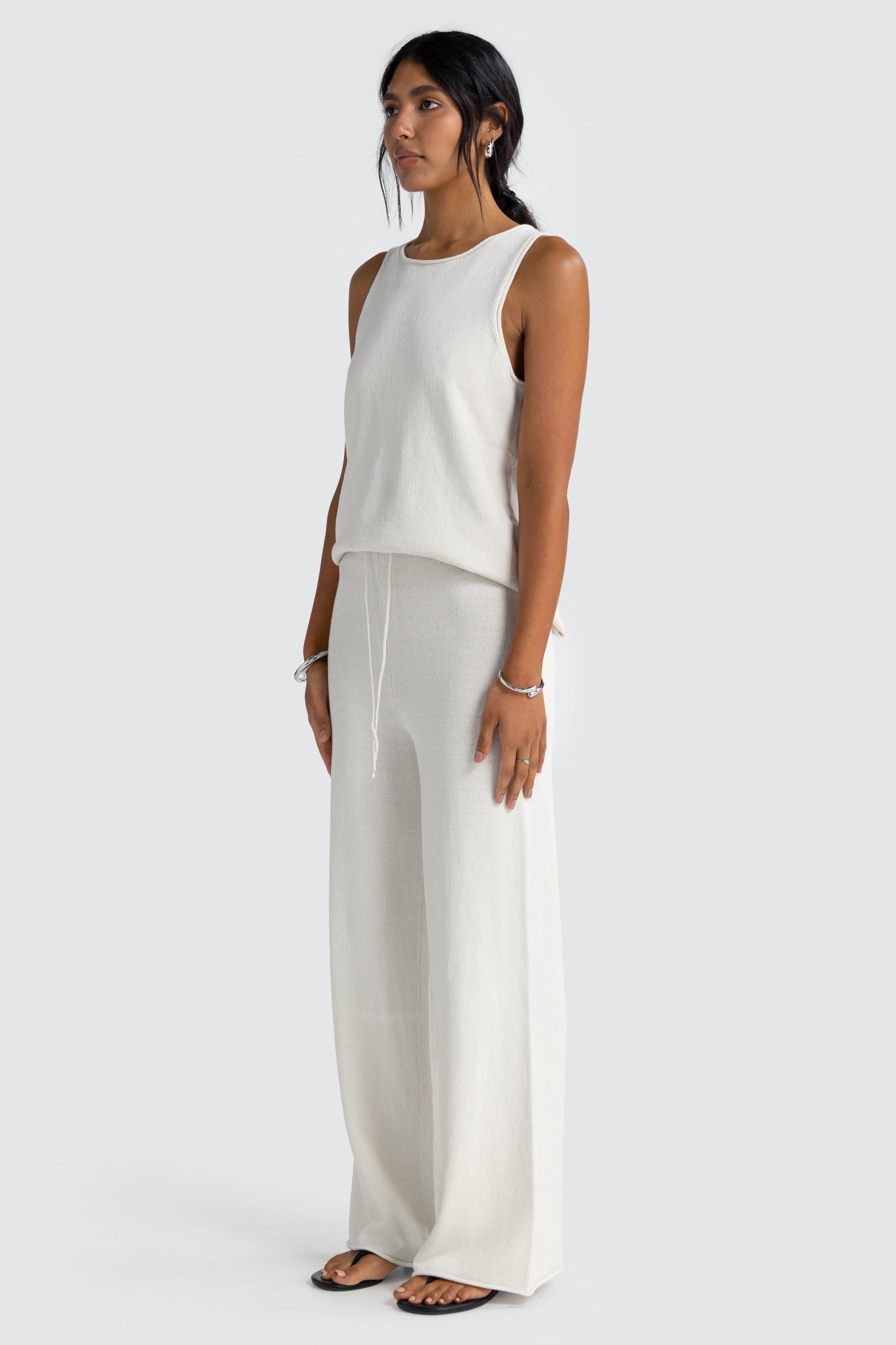 The Holly Knit Pants are the perfect balance of comfort and sophistication. These mid-lightweight knit pants feature a relaxed wide-leg silhouette with an elasticated waistband and adjustable drawstring for an effortless fit. Designed for everyday ease, they move seamlessly from lounging at home to long lunches by the coast.Pair with the matching Holly Knit Top or Long Sleeve Top for a coordinated, elevated lounge look.