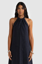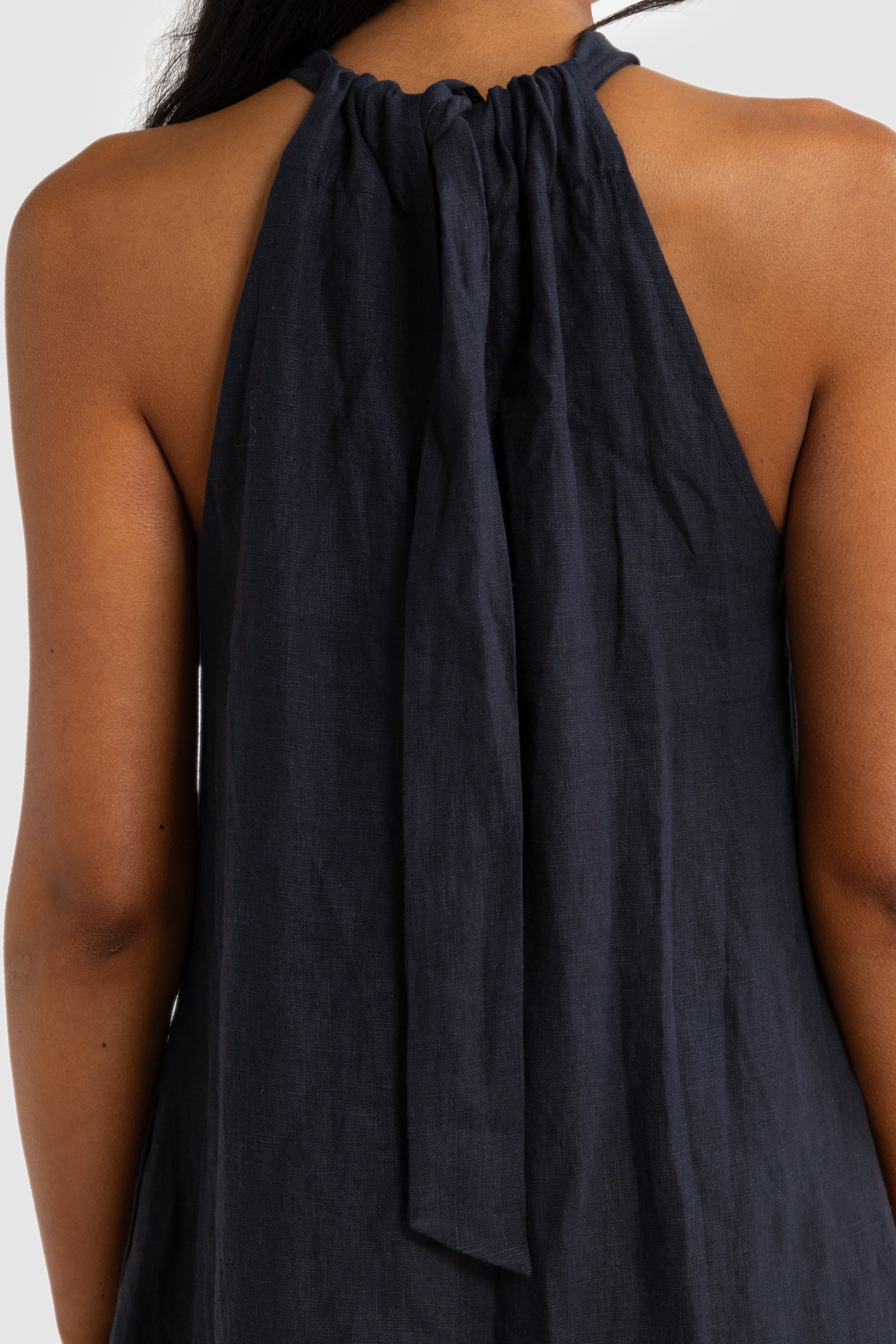 Effortless and timeless, the Luna Linen Halter Dress combines relaxed elegance with ease of wear. Crafted from pure linen, it features a soft A-line silhouette that drapes beautifully on the body. The gathered neckline ties neatly at the back for a feminine finish, while discreet side pockets add everyday practicality. Perfect for warm days and balmy evenings alike.