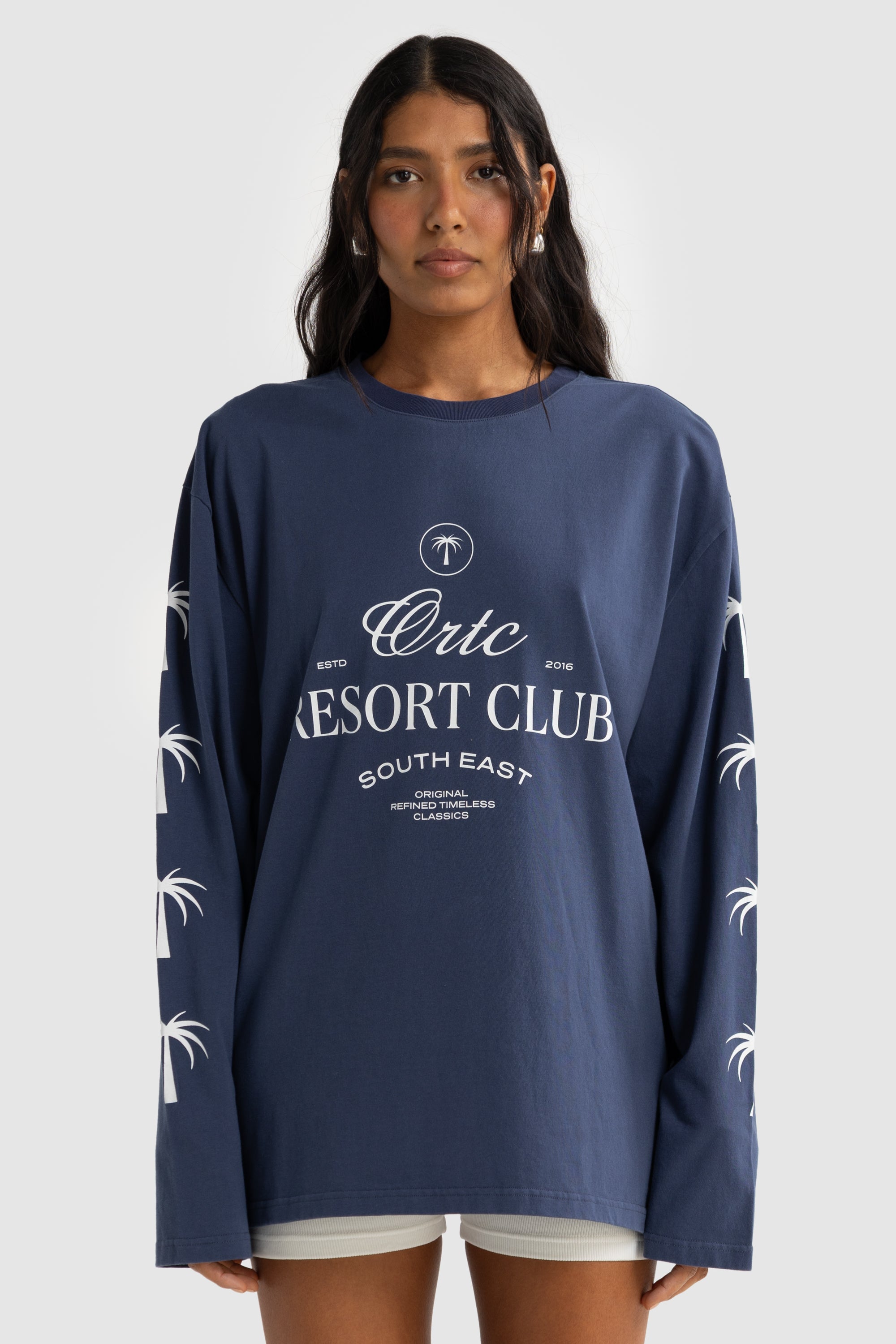 Resort Graphic Long Sleeve T Shirt Harbour Blue