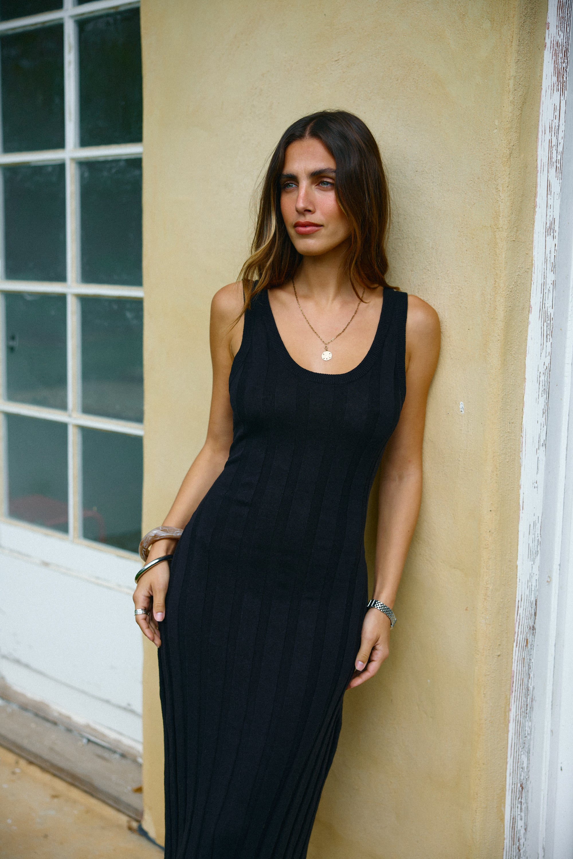 The Amara Knit Full Length Dress is a timeless silhouette designed for both comfort and sophistication. Crafted from a heavier-weight knit, it skims the body beautifully while offering structure and stretch. Featuring a flattering scoop neckline and low back, it transitions effortlessly from day to night. Style it with sandals for daytime look, or elevate it with heels and a blazer for an evening occasion.