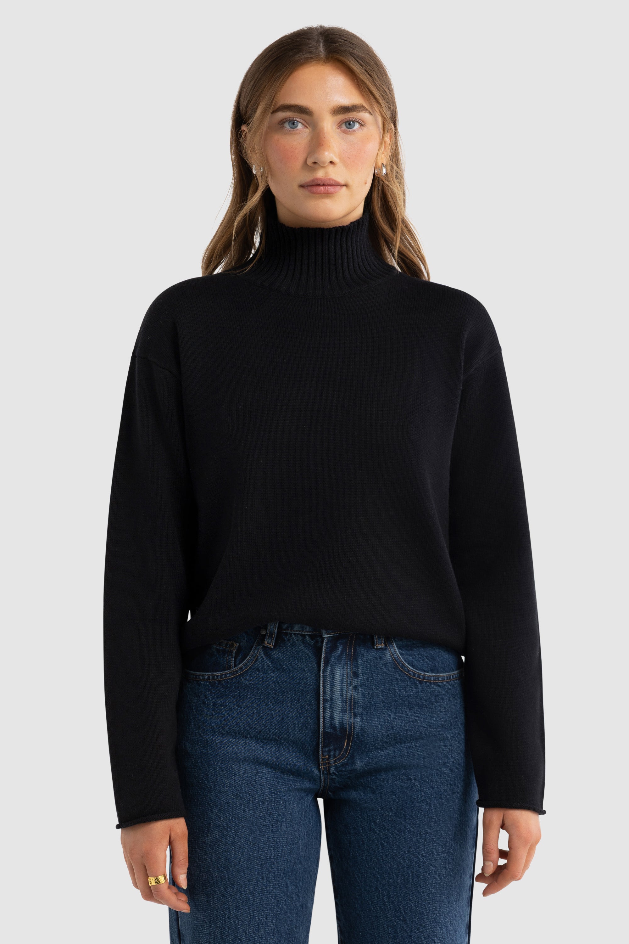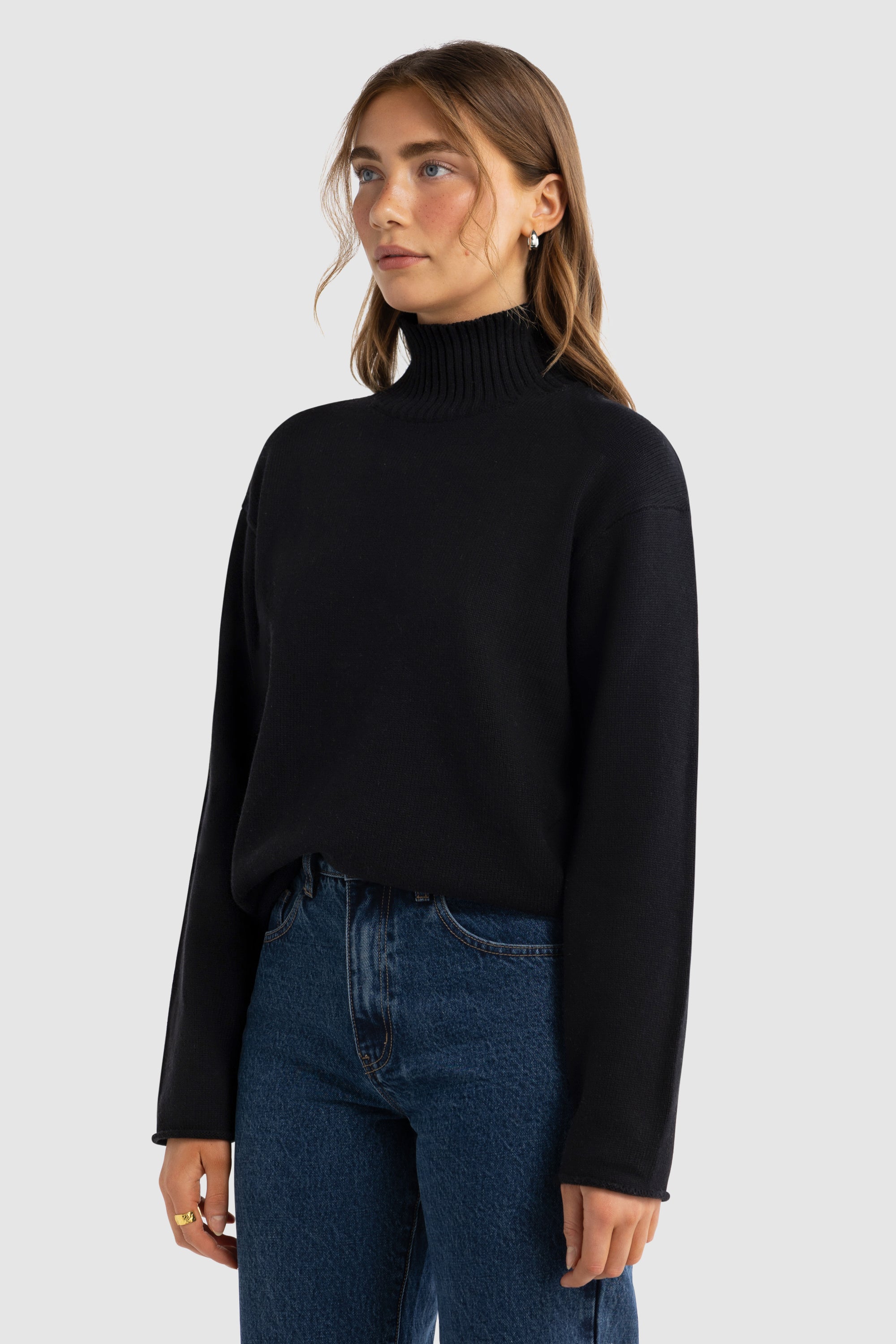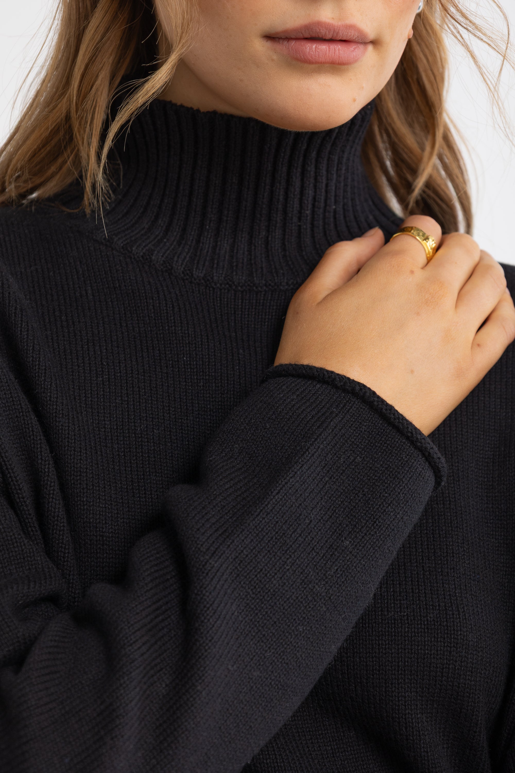 The Astrid Knit Turtle Neck Sweater is a timeless wardrobe staple designed for effortless everyday wear. Crafted from a soft cotton knit blend, it features a relaxed silhouette with a ribbed turtleneck and classic stripe detailing for a refined yet laid-back feel. Easy to style and comfortable to wear, this versatile knit is perfect for cooler days.