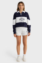 Our Rugby Shorts feature an elastic waistband. The waist measurements listed are taken with the garment laid flat and unstretched. The elastic provides additional stretch and flexibility for a comfortable fit.