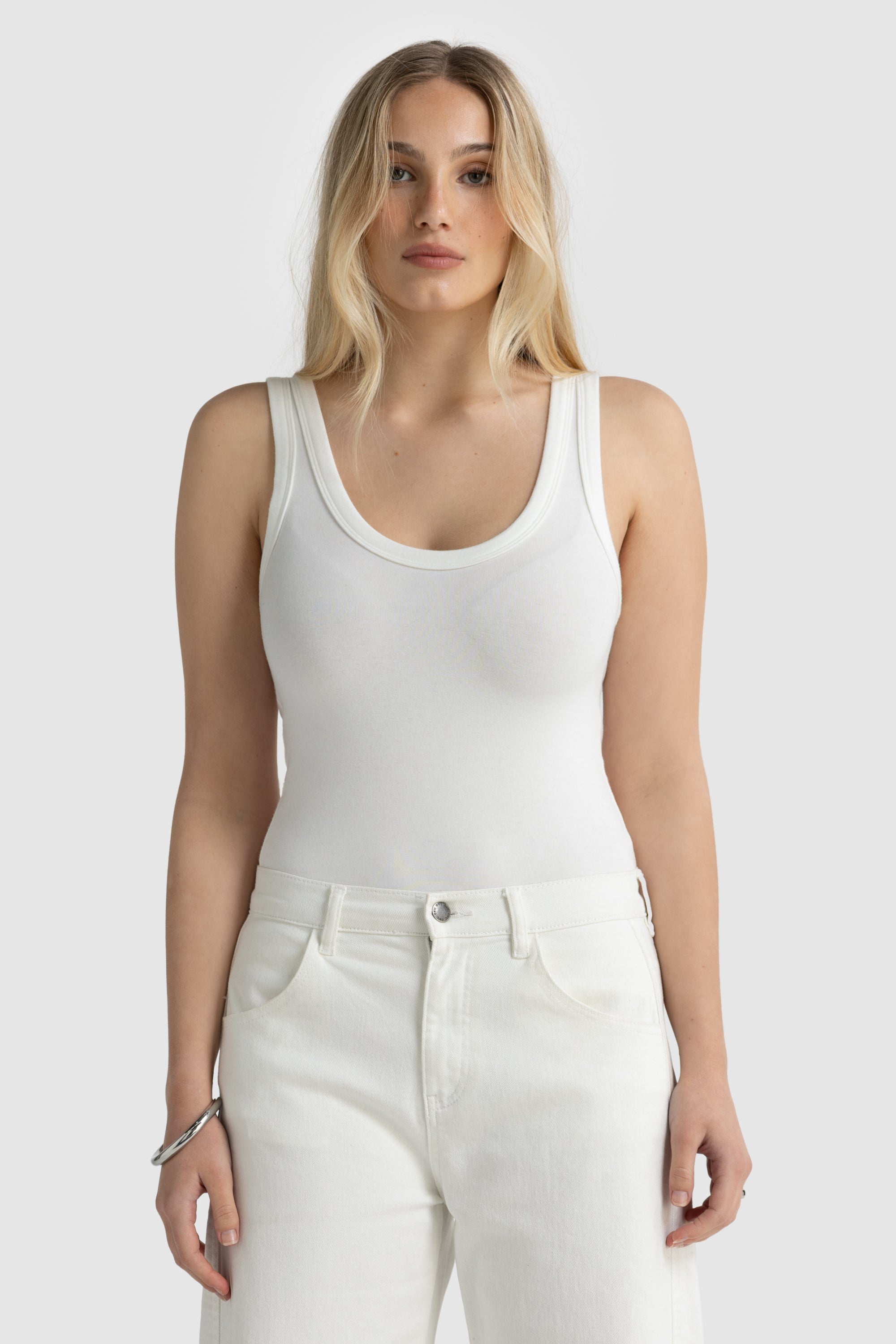 The Dover Scoop Neck Tank Chalk is a refined everyday staple, crafted from an ultra-soft cotton blend for a luxe feel. This elevated basic is offered in a timeless chalk colourway, making it the perfect addition to your capsule wardrobe. Its minimalist design and versatile hue make it effortless to style with everything from denim to tailoring.