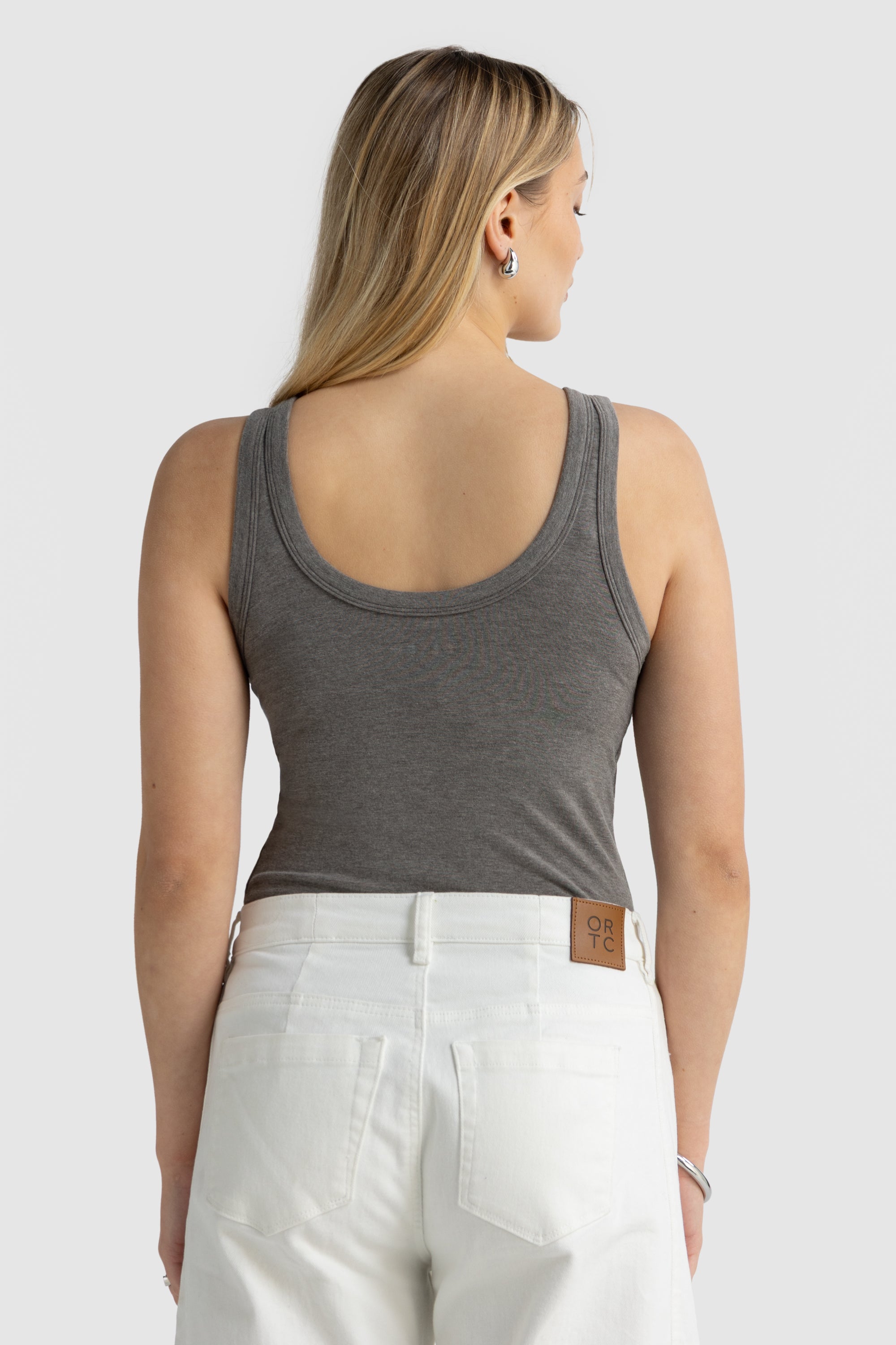 The Dover Scoop Neck Tank Grey Marle is a refined everyday staple, crafted from an ultra-soft cotton blend for a luxe feel. This elevated basic is offered in a timeless grey marle colourway, making it the perfect addition to your capsule wardrobe. Its minimalist design and versatile hue make it effortless to style with everything from denim to tailoring.