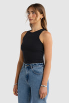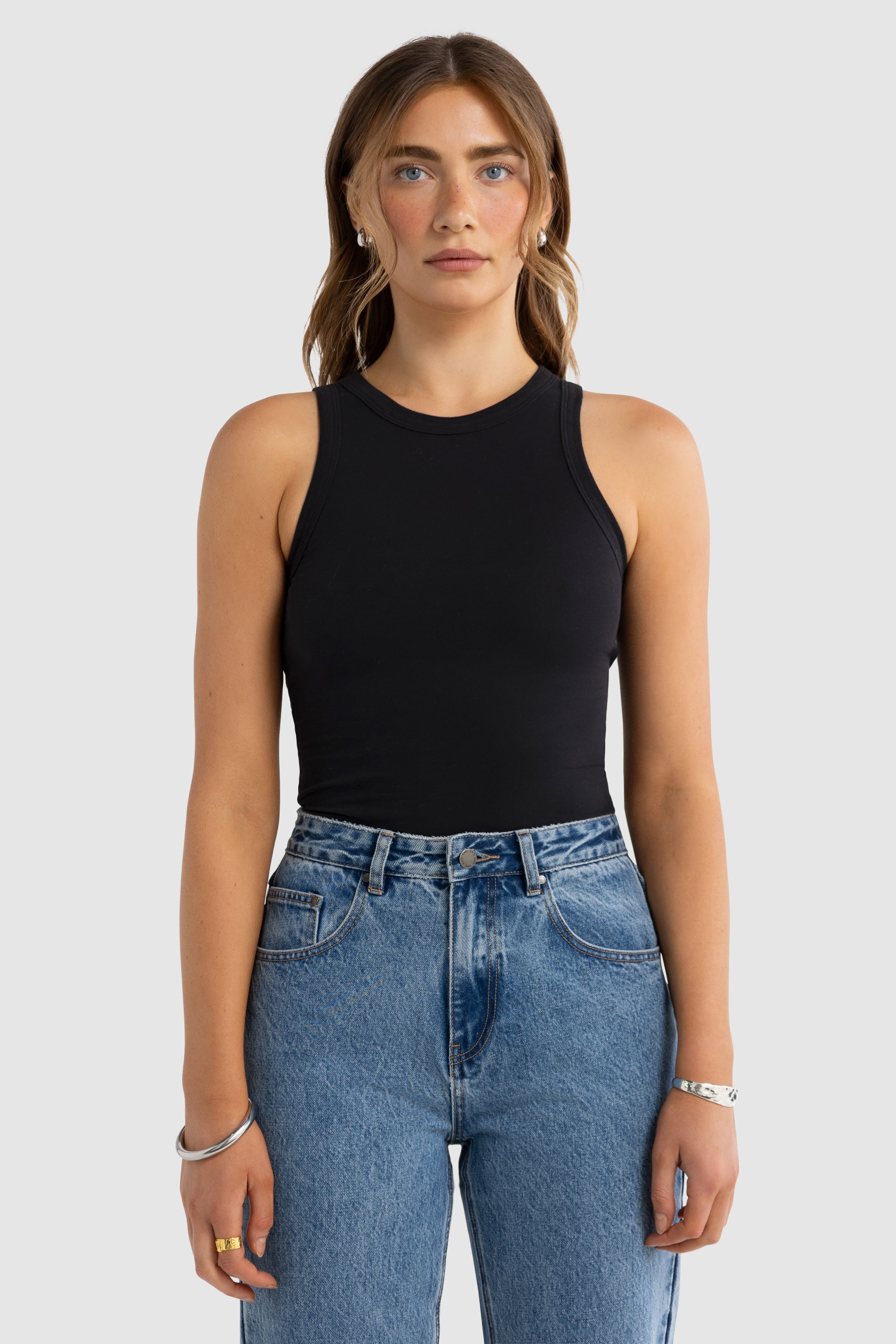 This fitted women's tank is designed to stretch with your body. The chest and hem measurements listed are taken with the garment laid flat and unstretched. The fabrics natural stretch provides extra flexibility and a snug, comfortable fit.