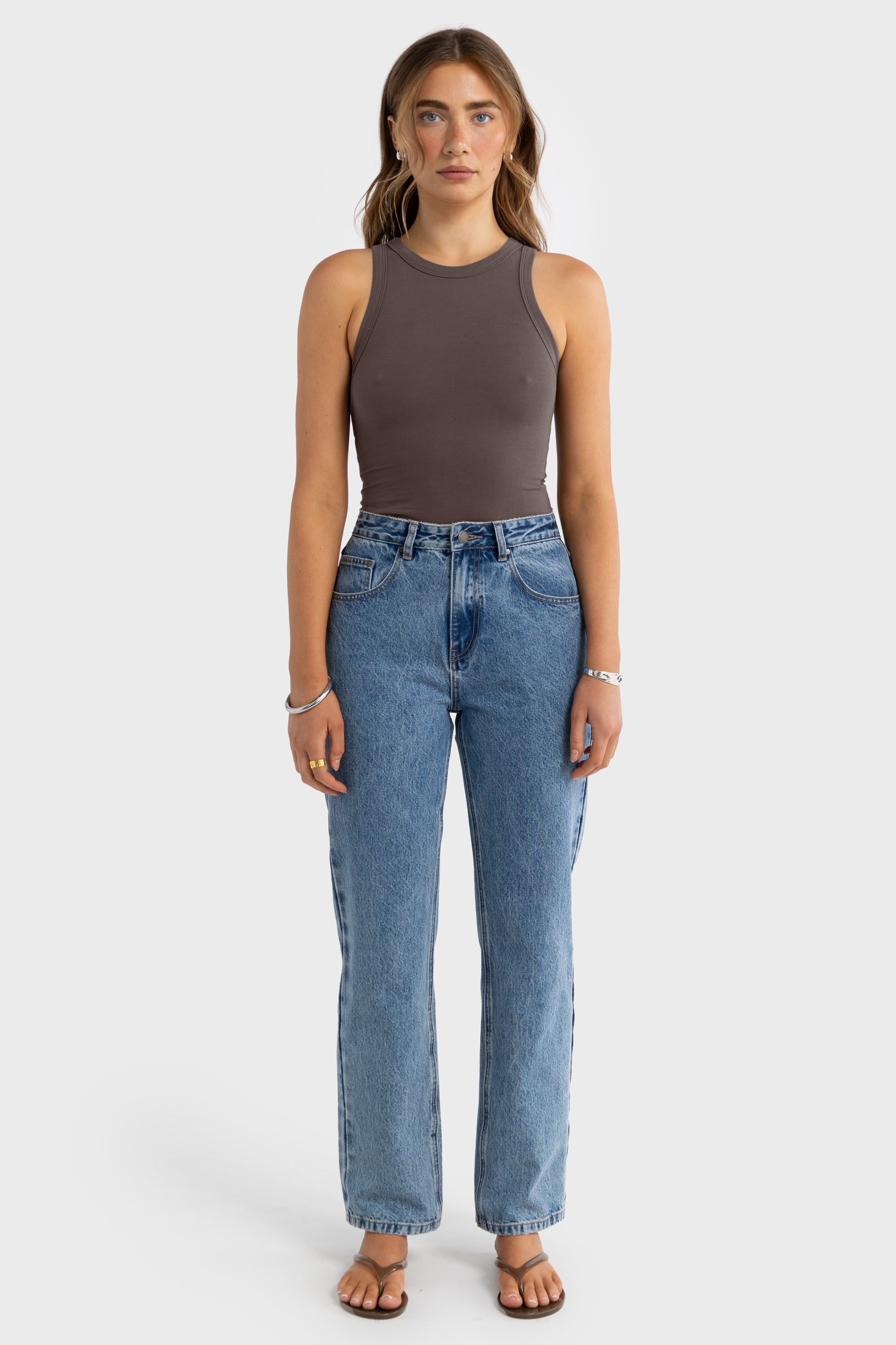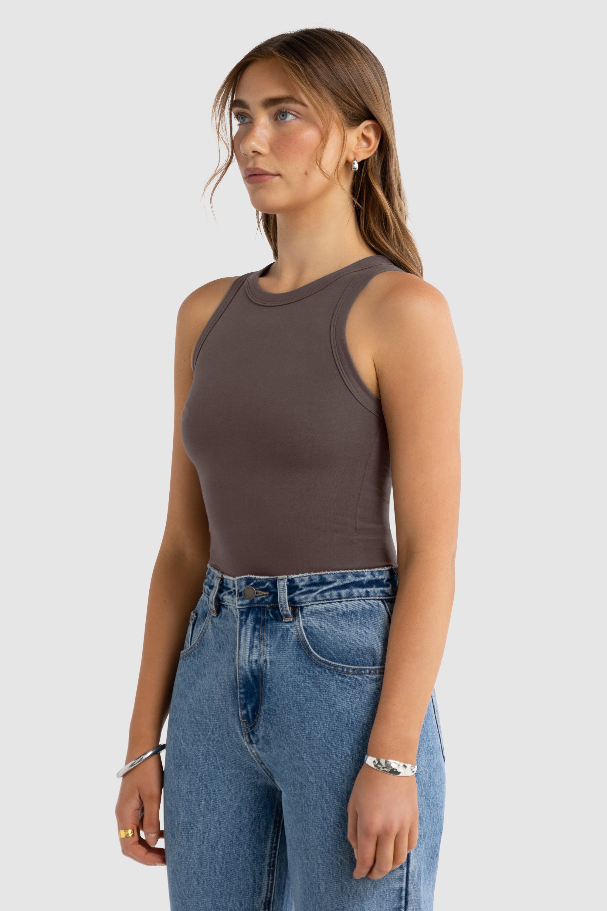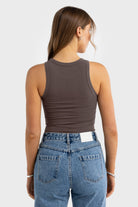 This fitted women's tank is designed to stretch with your body. The chest and hem measurements listed are taken with the garment laid flat and unstretched. The fabrics natural stretch provides extra flexibility and a snug, comfortable fit.