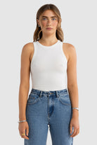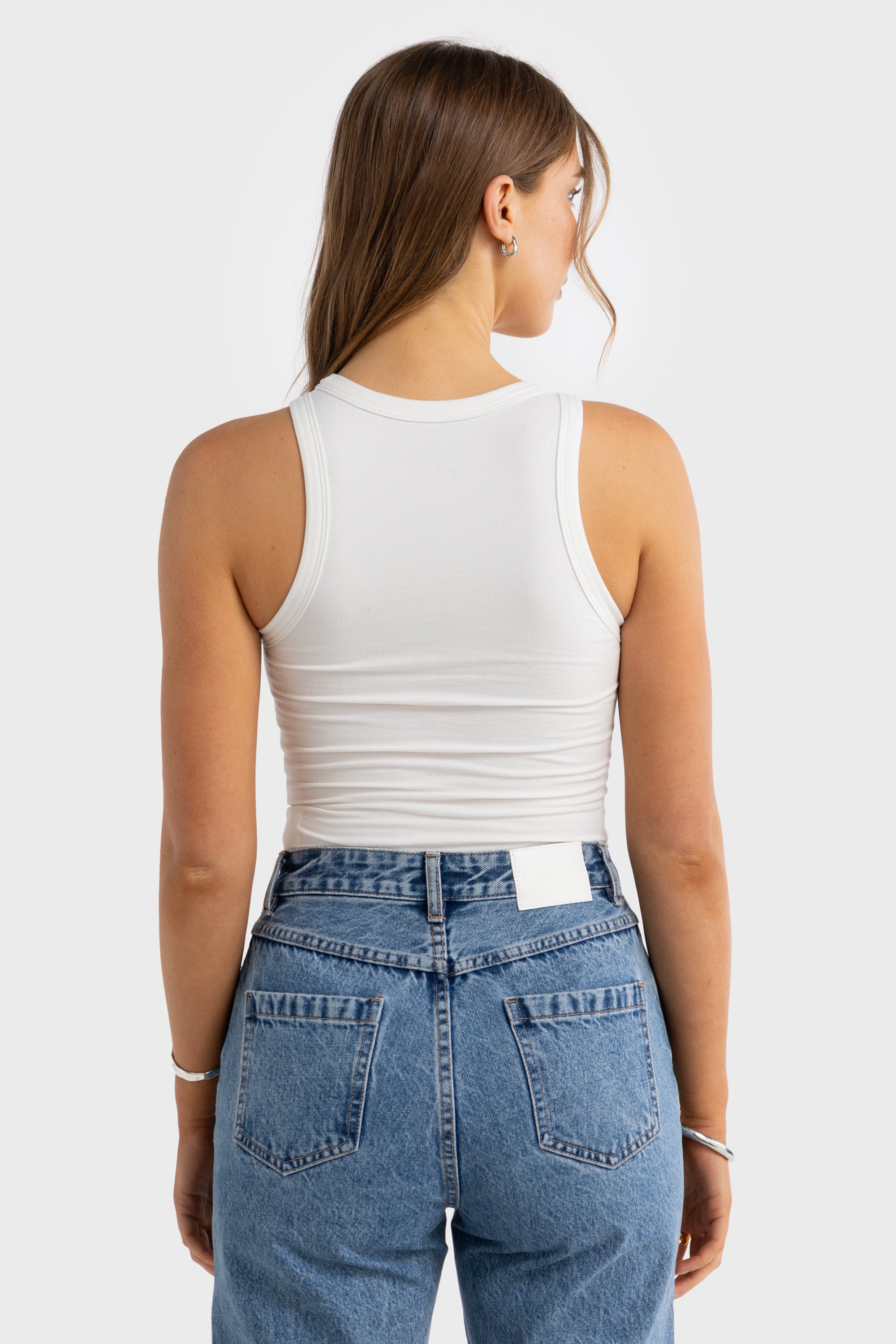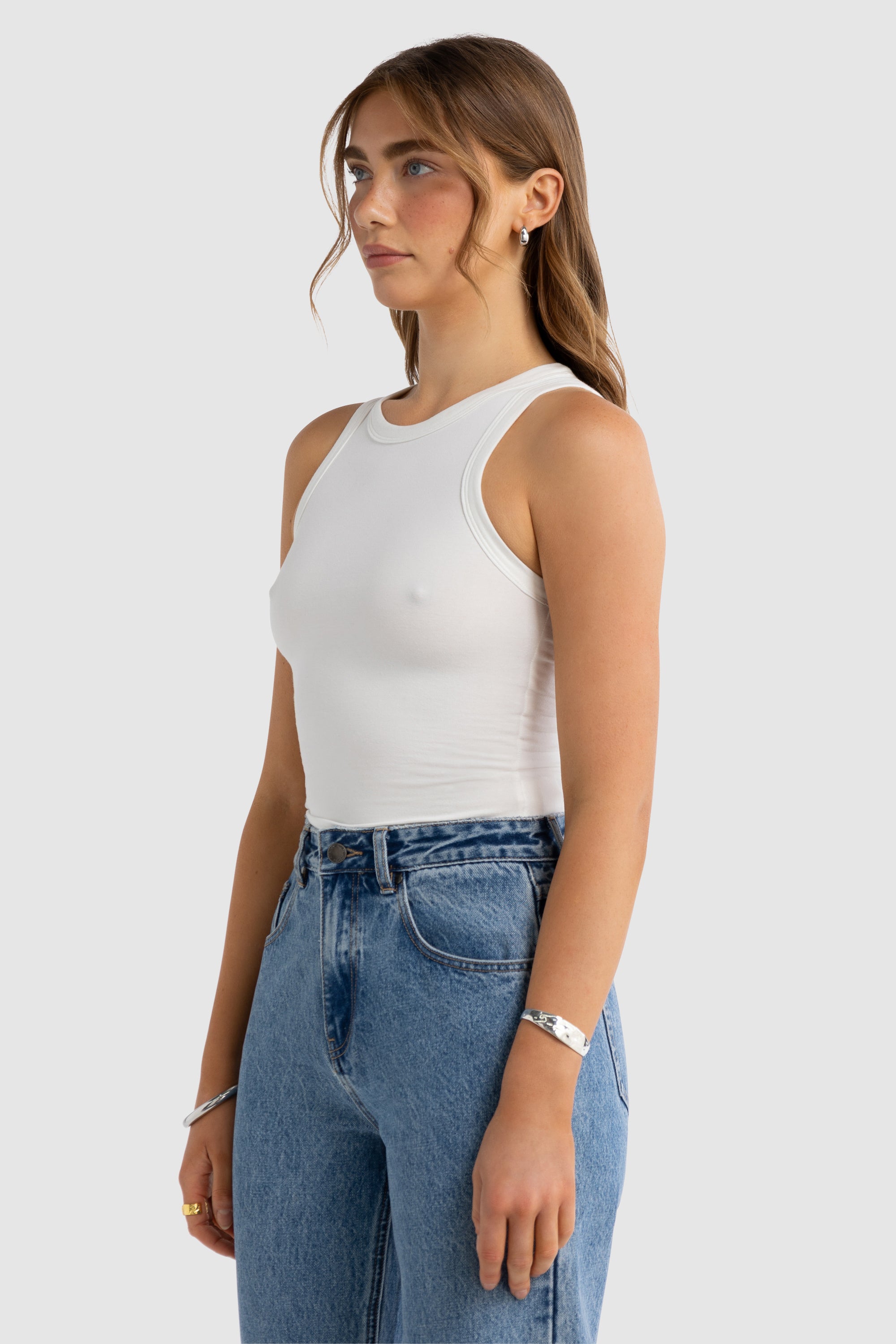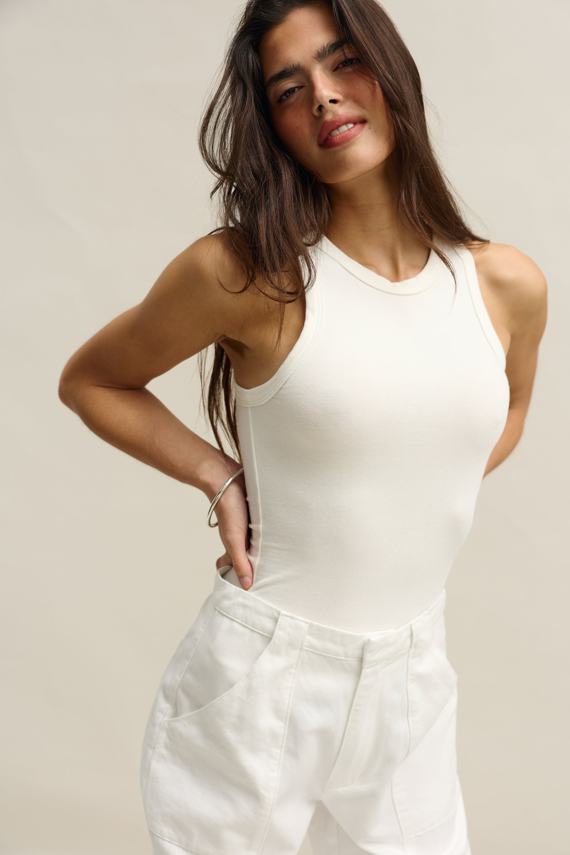 Designed for everyday ease, the Evie Fitted Racerback Tank is cut from a brushed cotton blend with a refined, ultra-soft finish. The racerback silhouette creates a clean, modern line, while the fitted shape offers a flattering, effortless look. A go-to essential that transitions seamlessly from casual wear to layered styling.