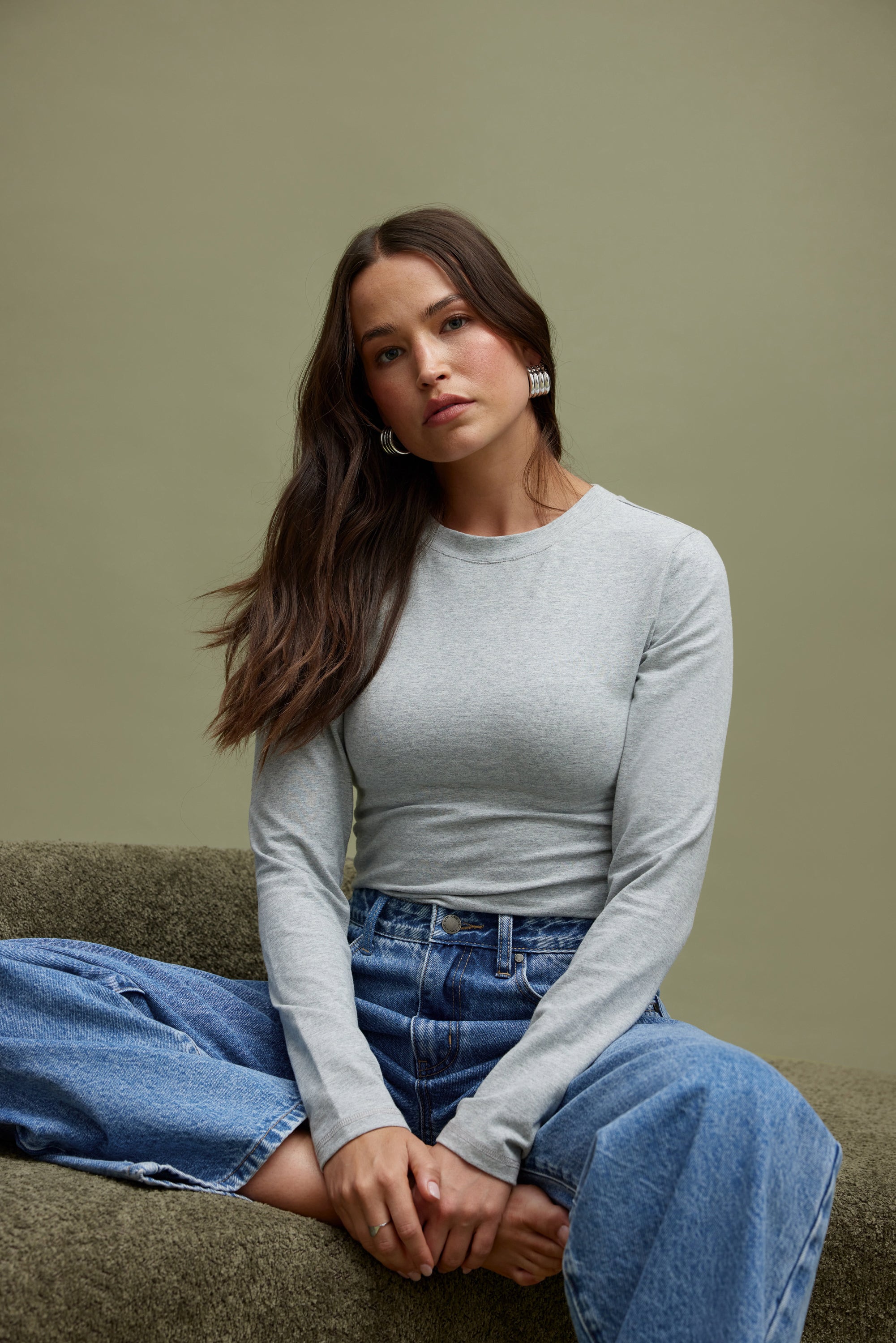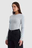 Evie Long Sleeve Fitted T Shirt Grey Marle