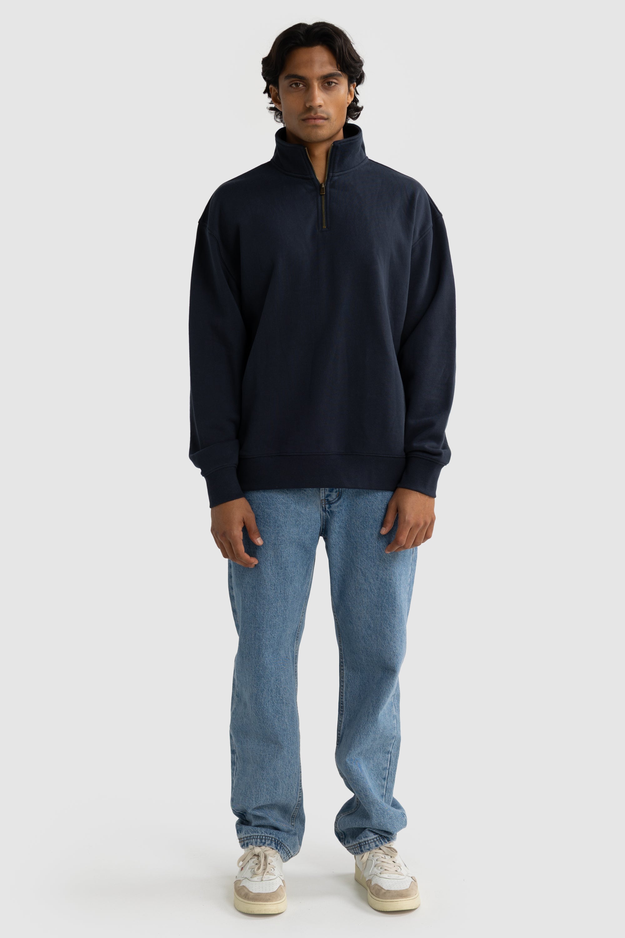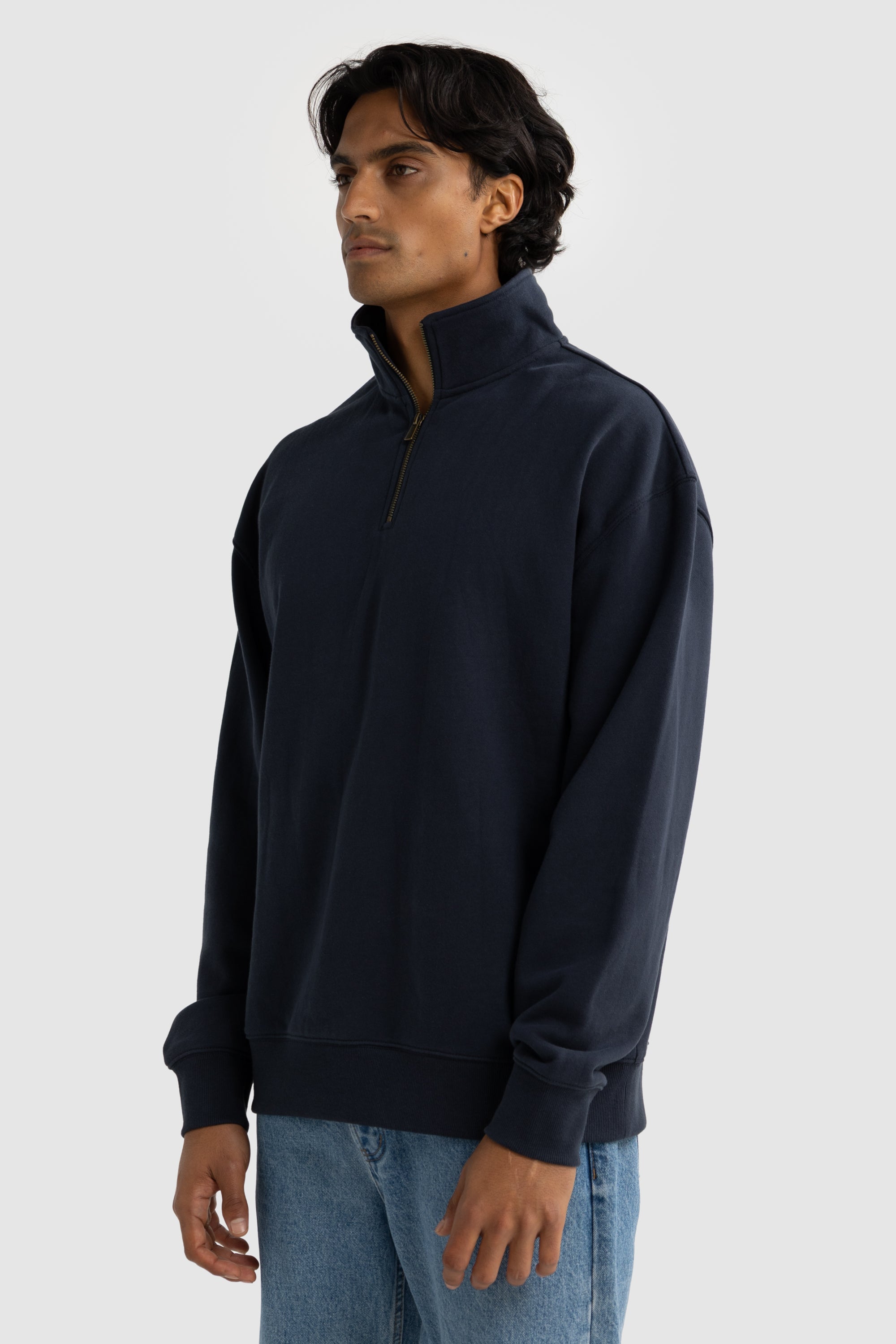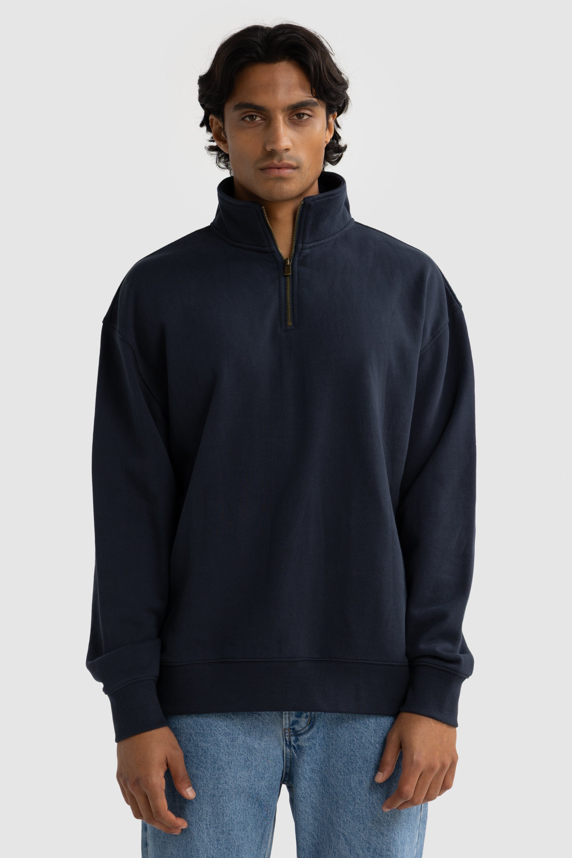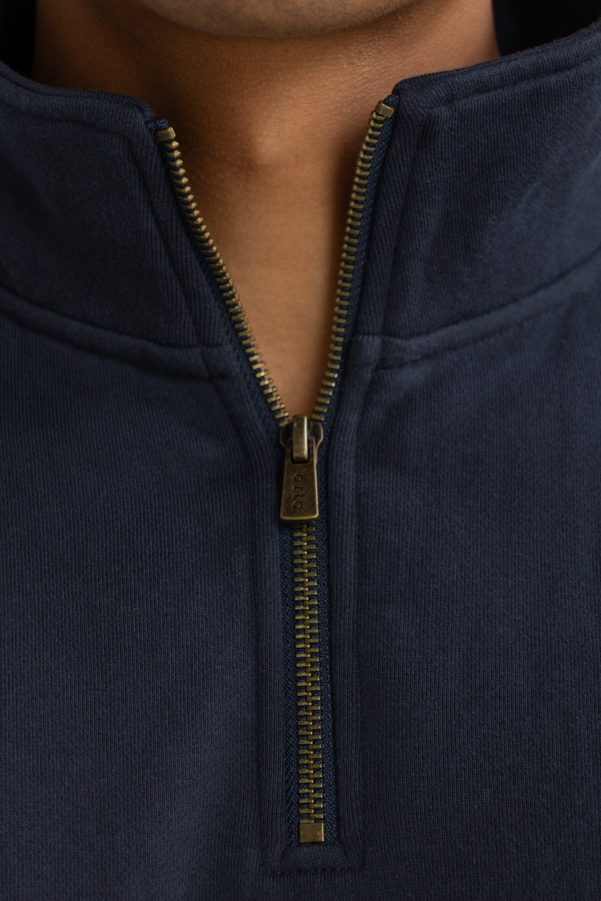 The Henderson Quarter Zip Navy. Rediscover the essentials in our core ORTC colours and style. Crafted in a relaxed fit, the Henderson Quarter Zip pairs perfectly with a pair of jeans, or our lounge shorts for a more relaxed look. Made from a heavy weight french terry and garment washed to provide a super soft and worn in feel.