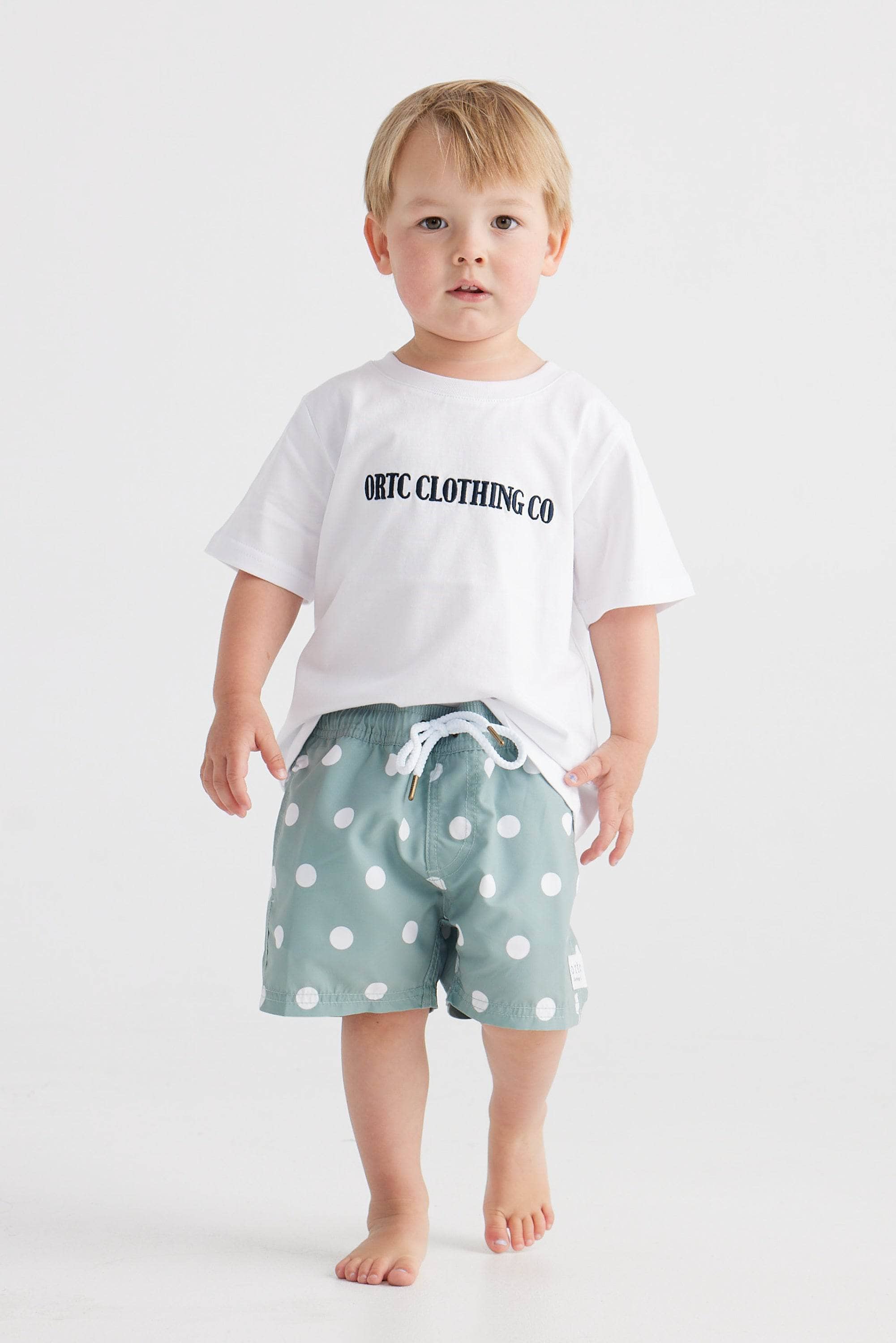 - Quick drying, mid-length swim shorts for children