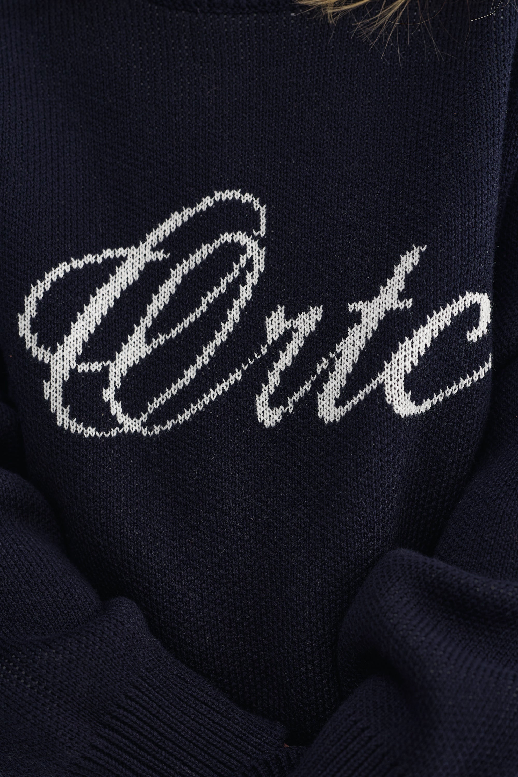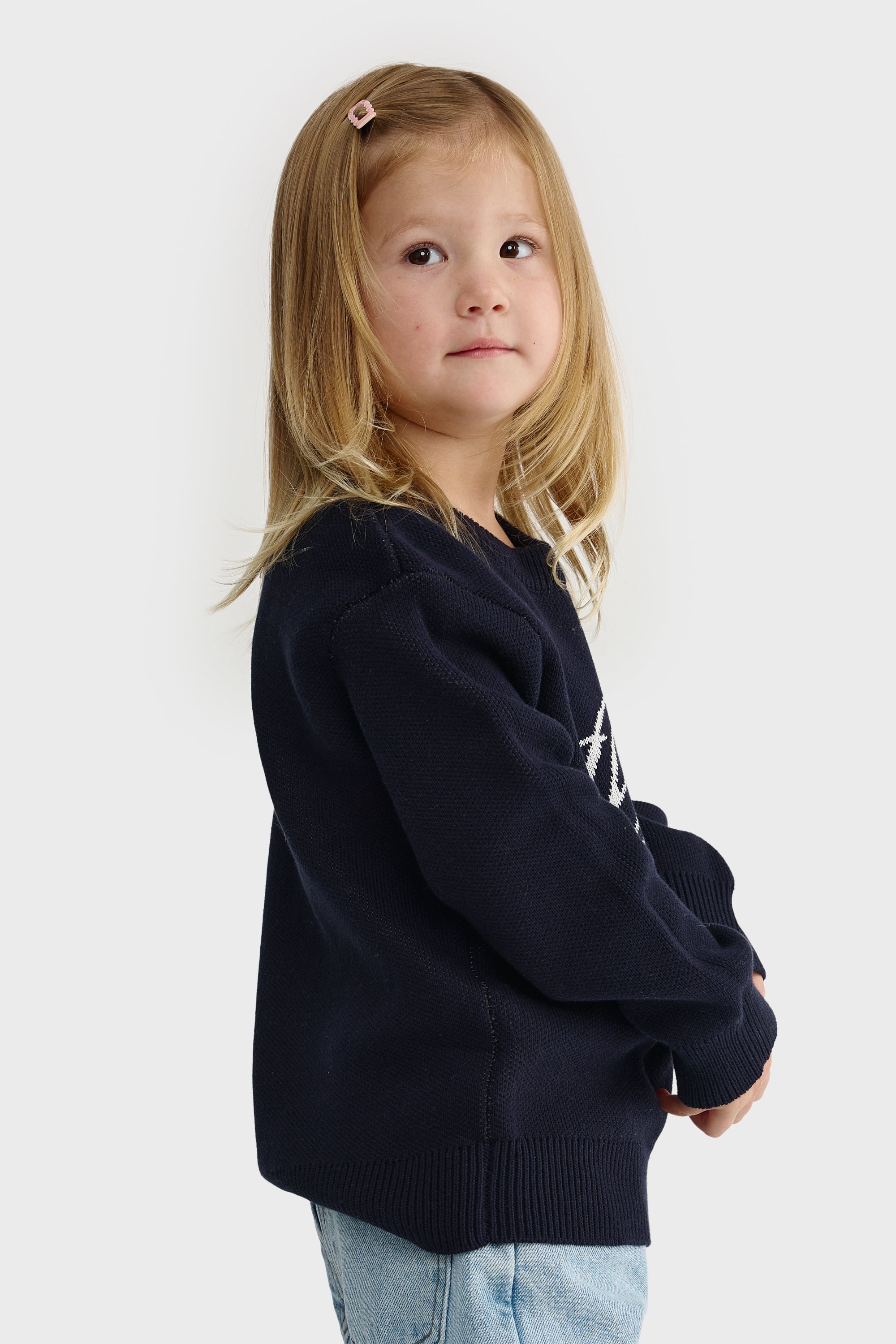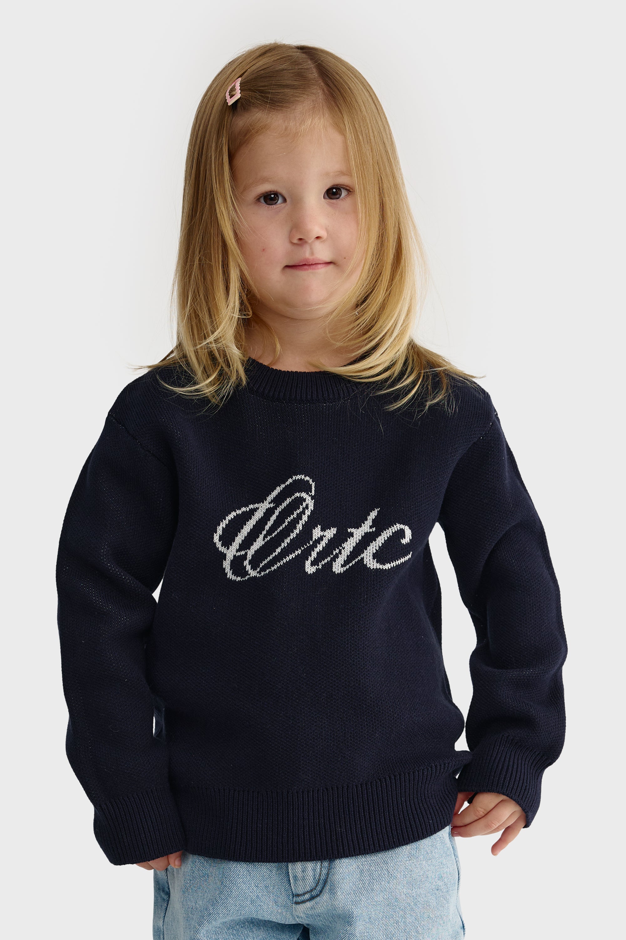 Jnr Script Logo Knit Crew French Navy