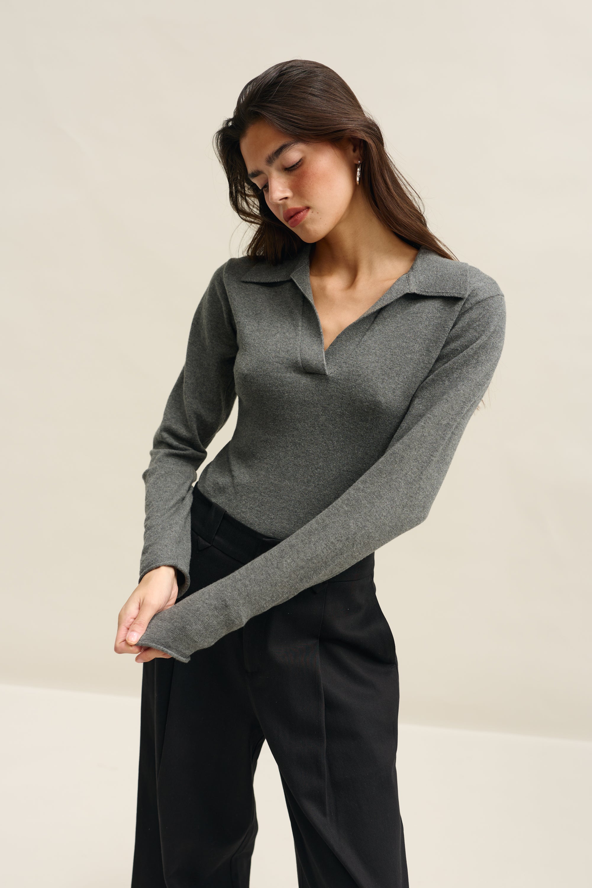• Classic 'V' polo neckline and collar