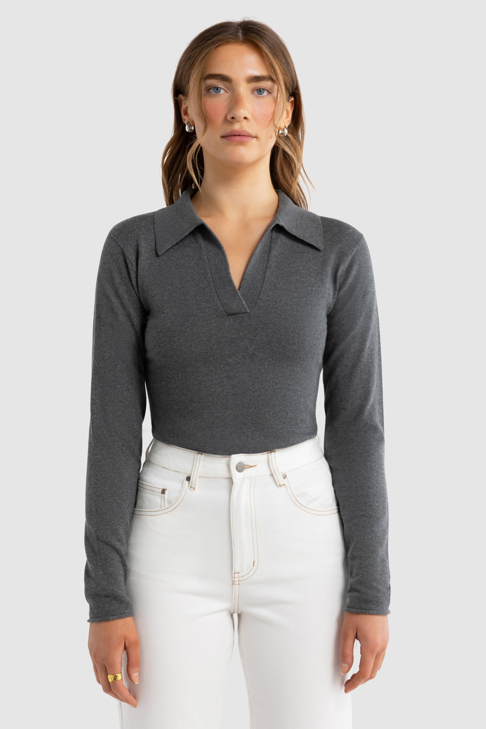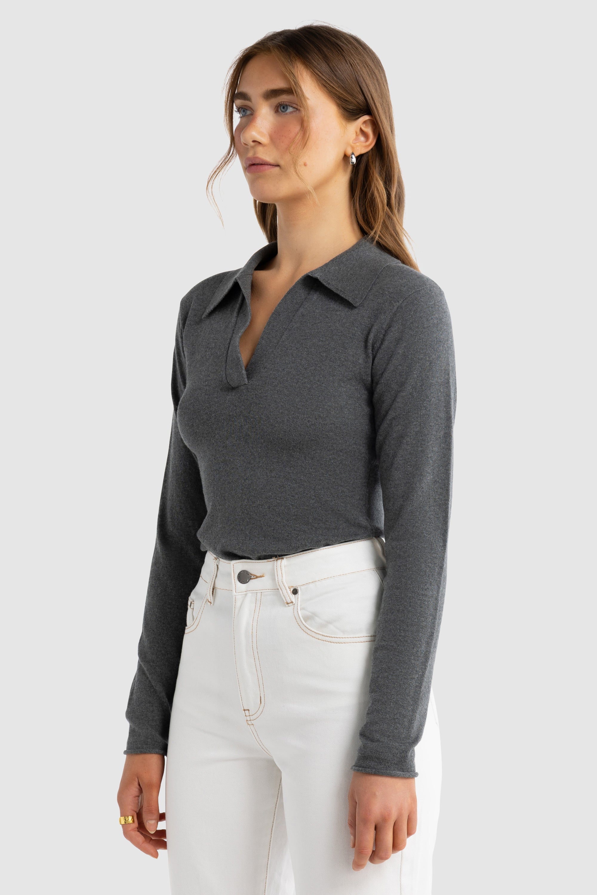 Kingston Knit Polo Top Charcoal Marle