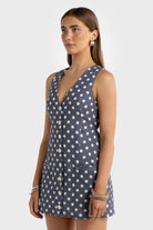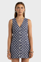 Koda Linen Mini Dress Harbour Blue Polkadot