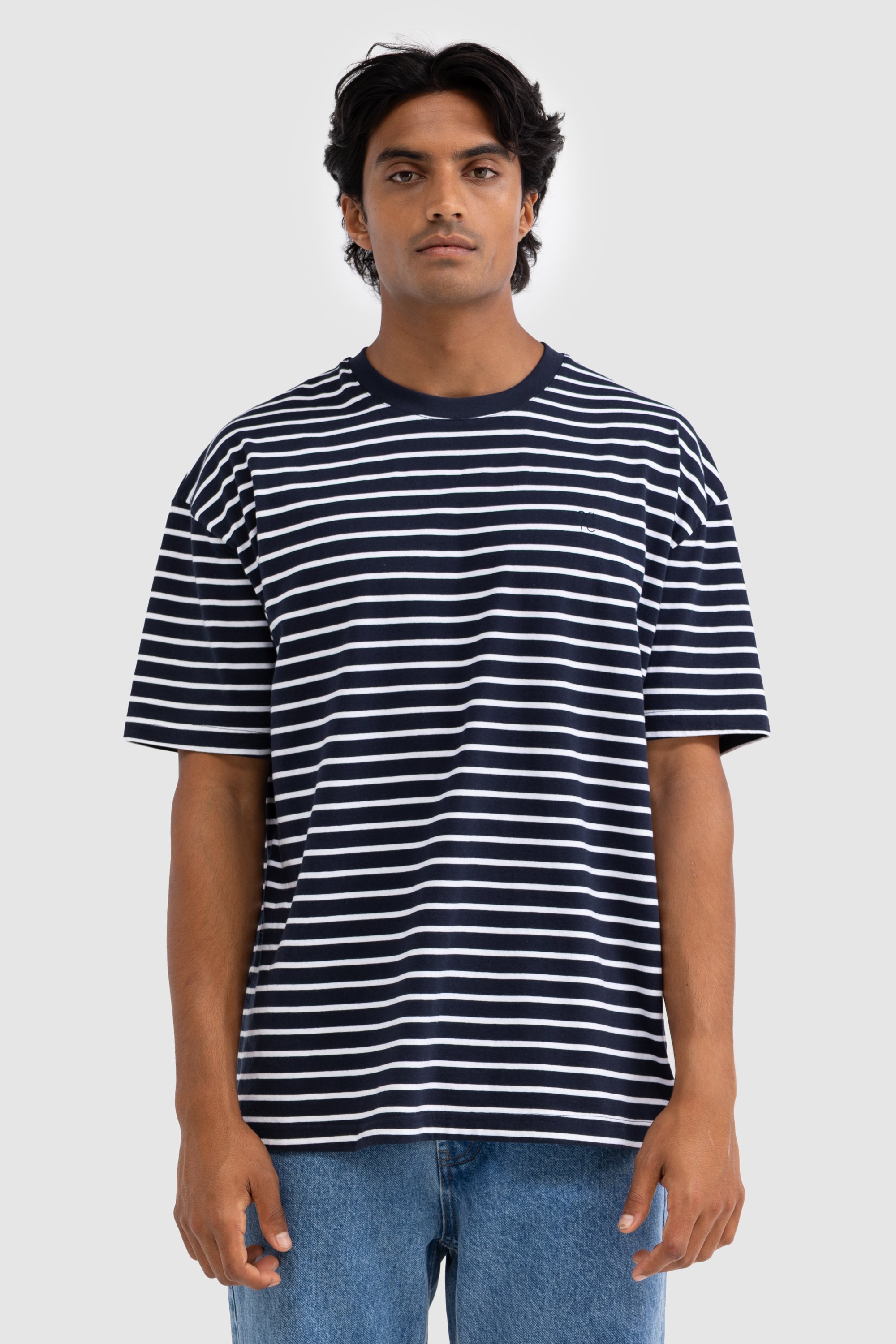 The Louis Stripe Box T Shirt is a contemporary update on the classic striped Tee. Crafted from 100% mid-weight cotton, it features a relaxed box fit silhouette and soft, breathable feel. Finished with yarn-dyed stripes, it’s an easy staple for laid-back, everyday dressing.