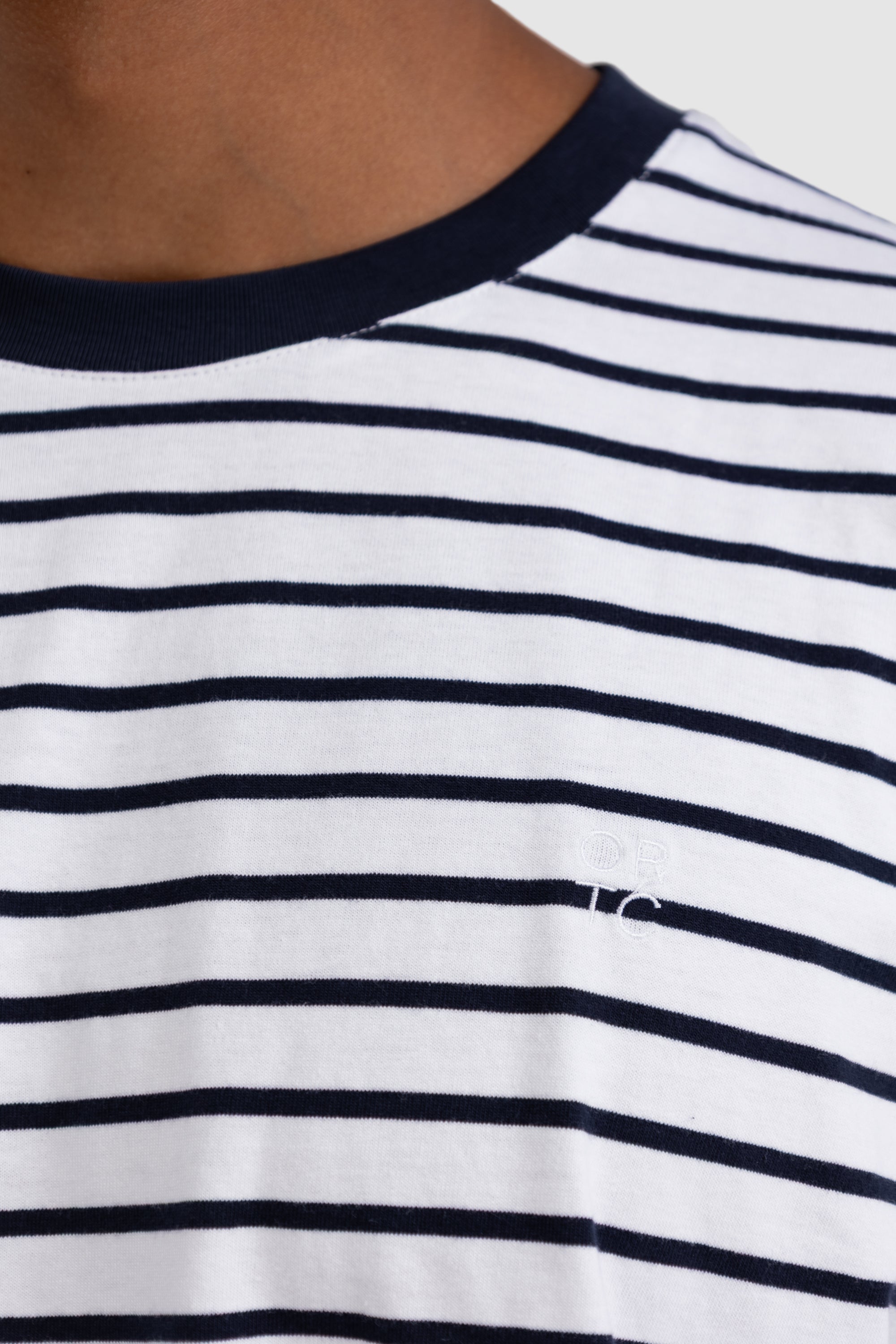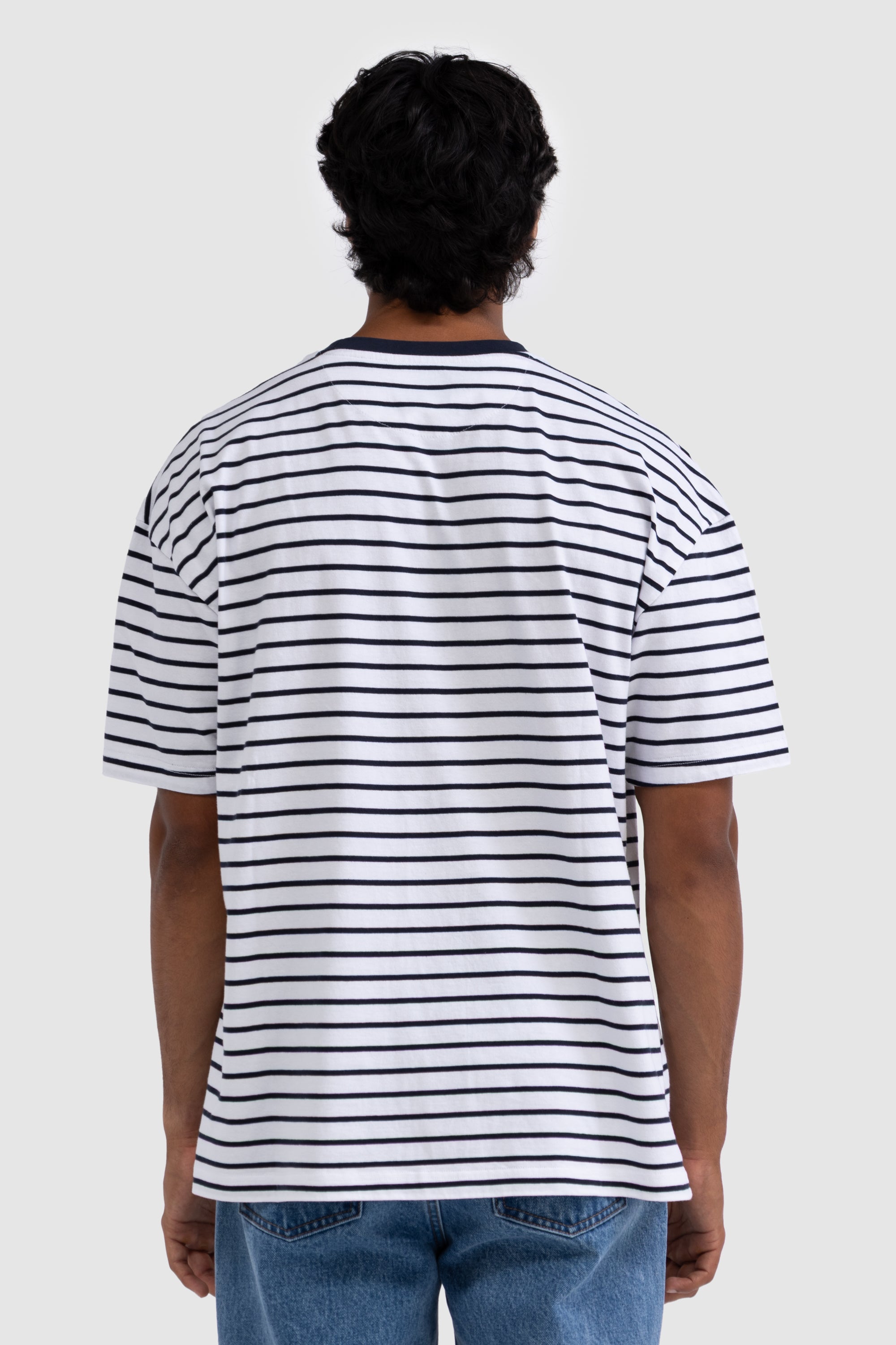 The Louis Stripe Box T Shirt is a contemporary update on the classic striped Tee. Crafted from 100% mid-weight cotton, it features a relaxed box fit silhouette and soft, breathable feel. Finished with yarn-dyed stripes, it’s an easy staple for laid-back, everyday dressing.