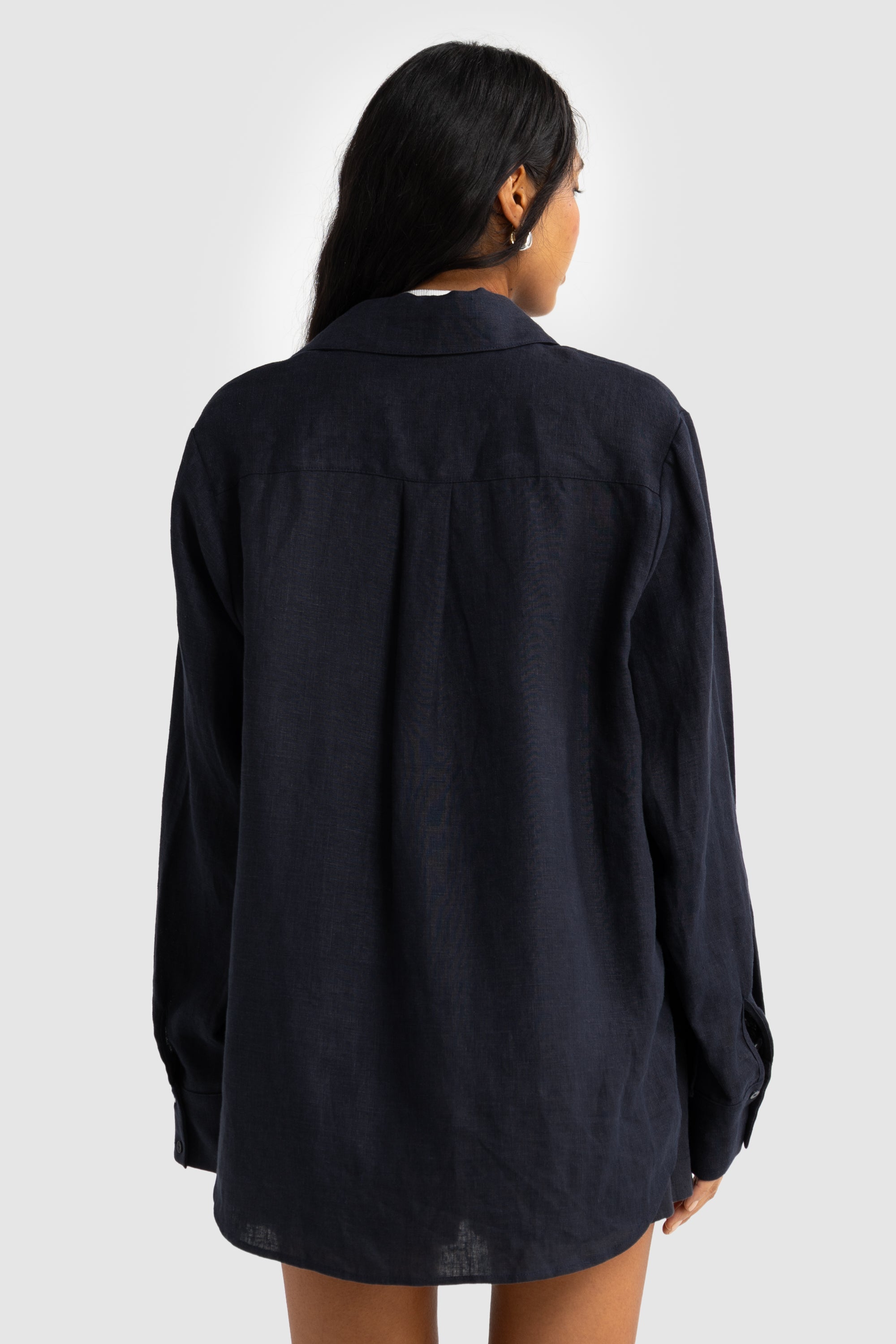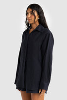 The Luna Linen Shirt Black is a staple for all wardrobes. Crafted from a mid weight linen and featuring side splits, this top is perfect to tuck. Best paired with the bottoms from our linen collection, denim range or by itself over swimwear.