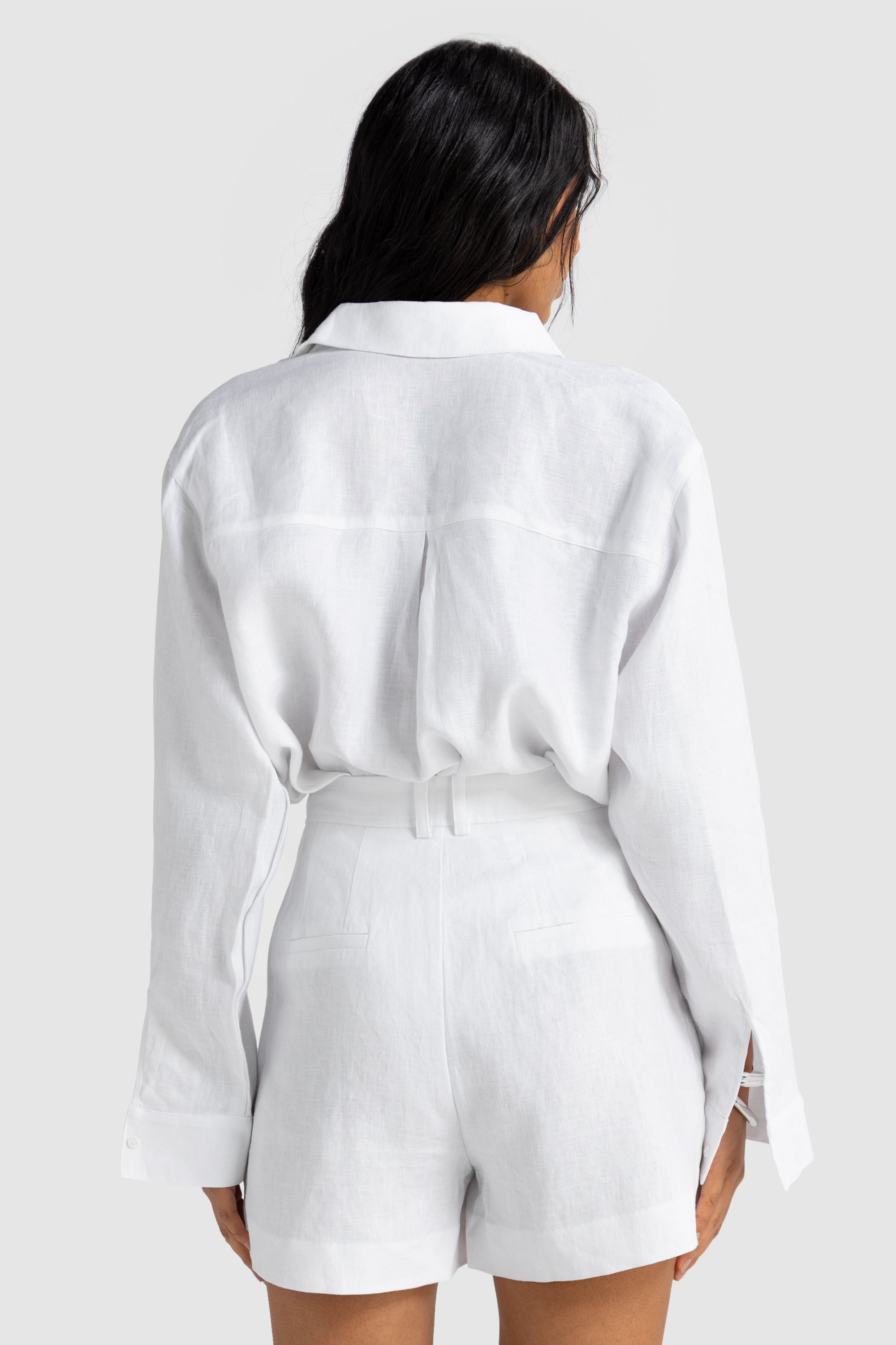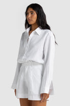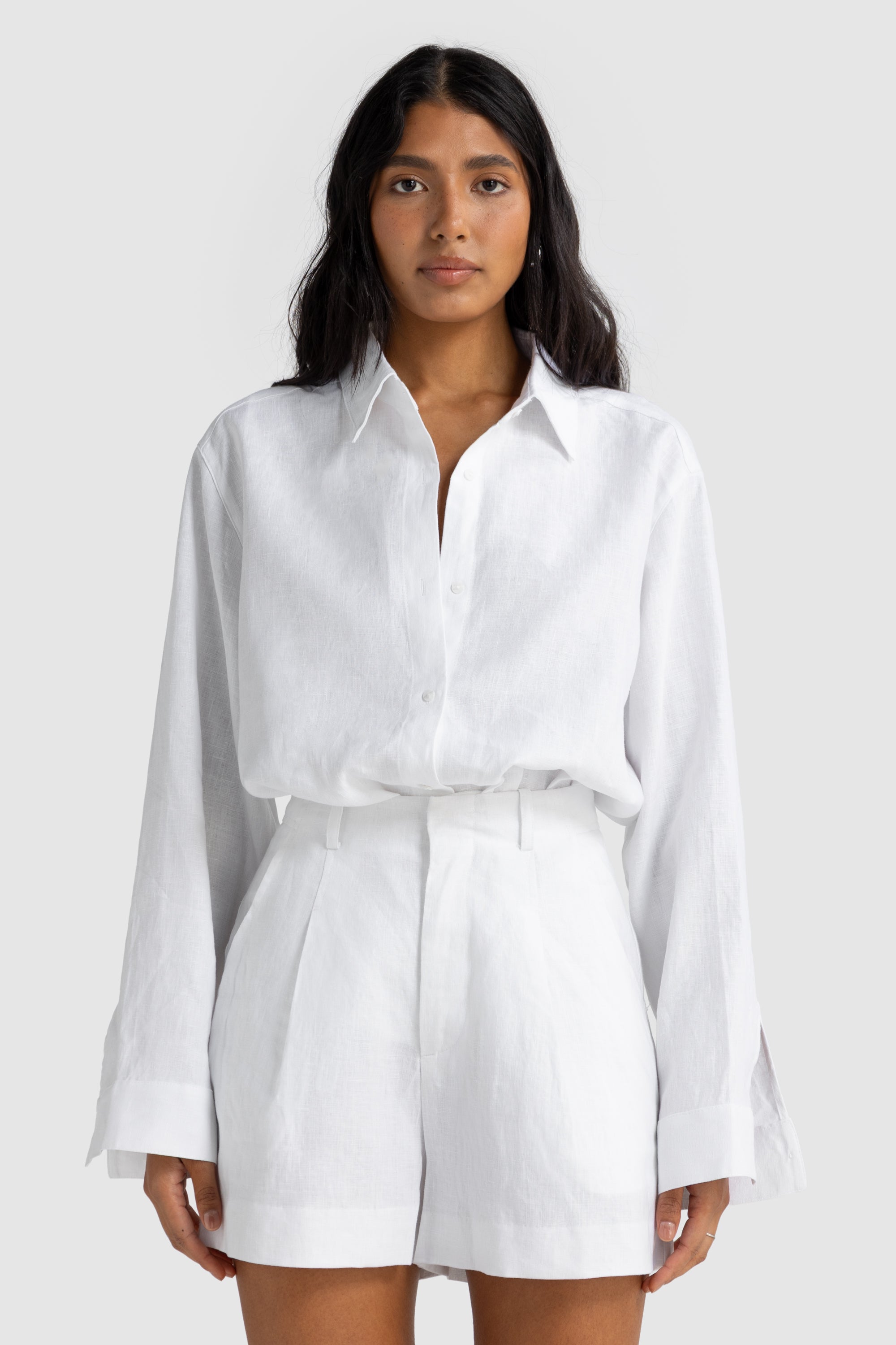 The Luna Linen Shirt White is a staple for all wardrobes. Crafted from a mid weight linen and featuring side splits, this top is perfect to tuck. Best paired with the bottoms from our linen collection, denim range or by itself over swimwear.
