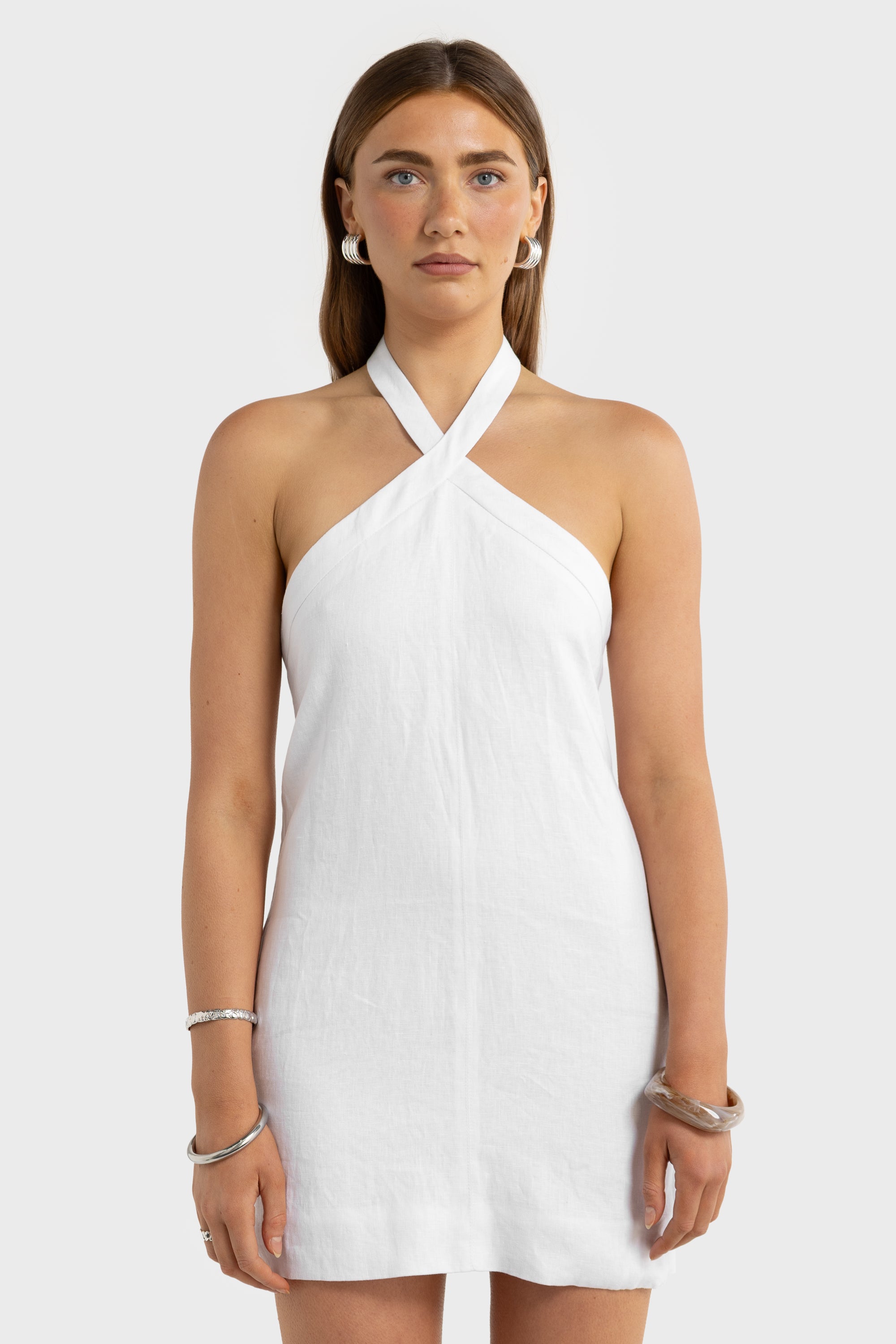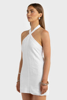 Millie Linen Halter Mini Dress White