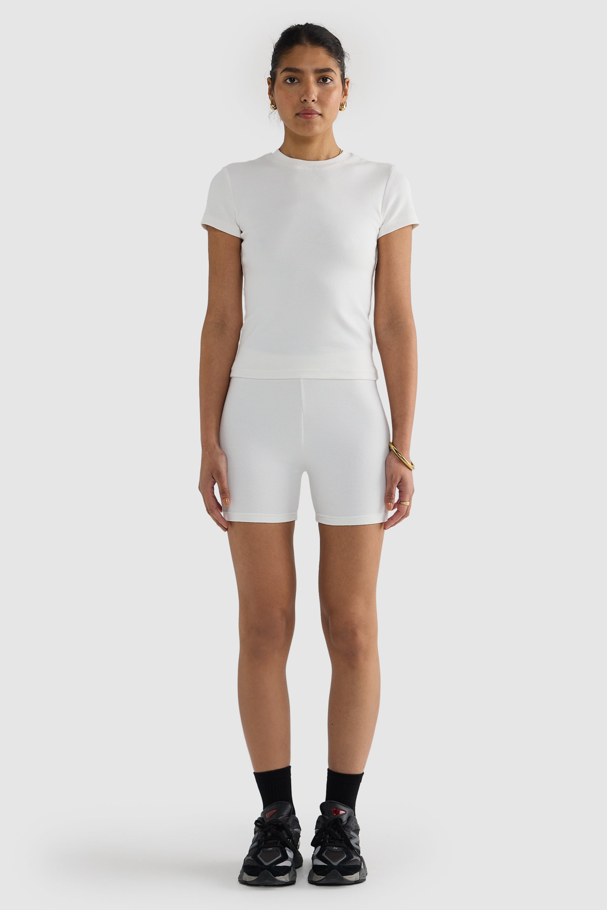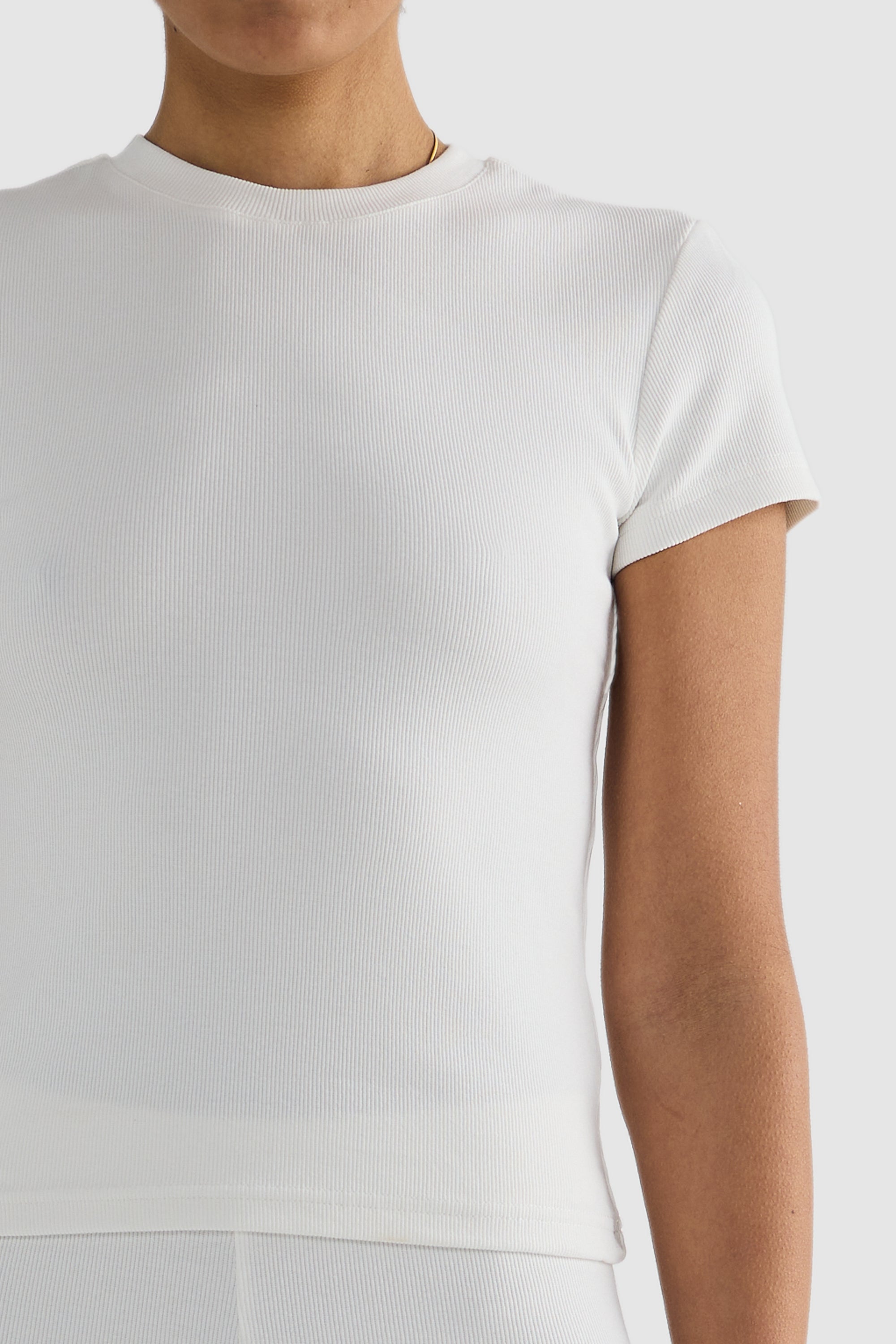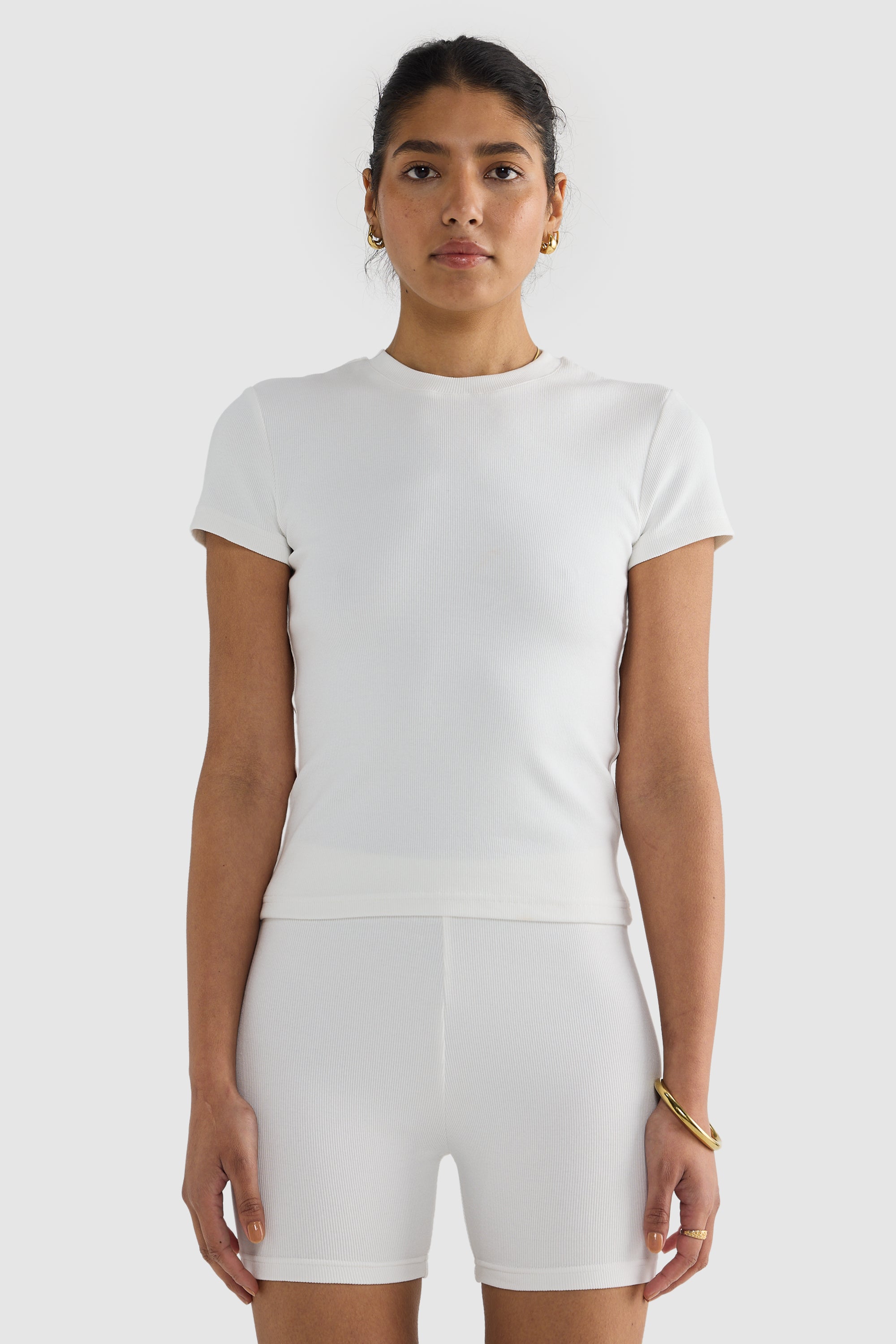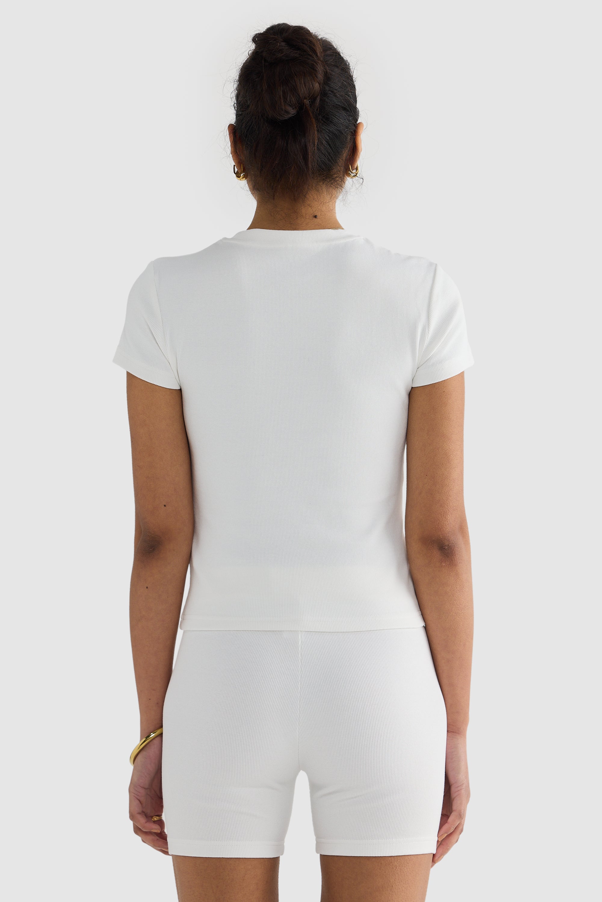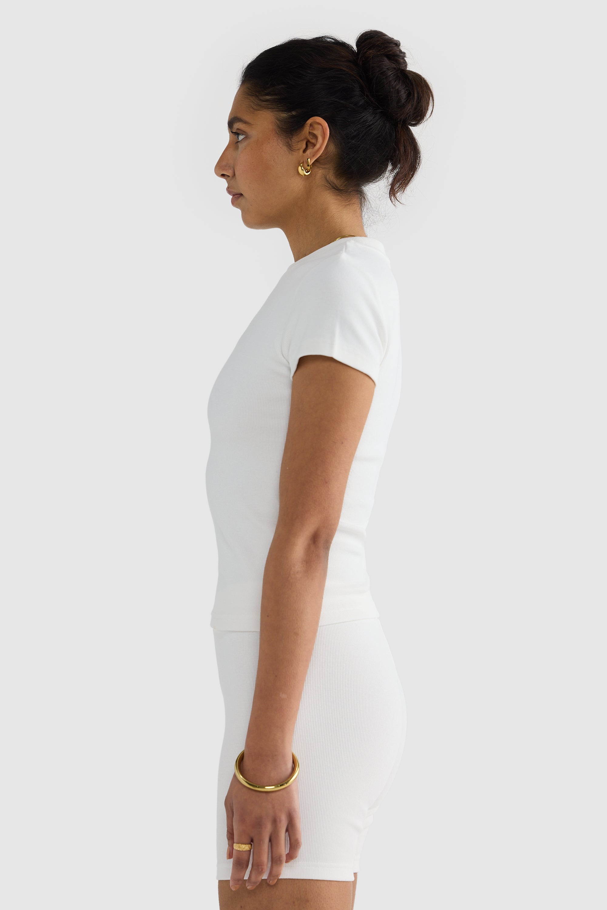 The Mimi Rib T Shirt White is designed to hug the body. Made from a soft ribbed cotton fabrication, this T Shirt will be on high rotation in your wardrobe, year round.