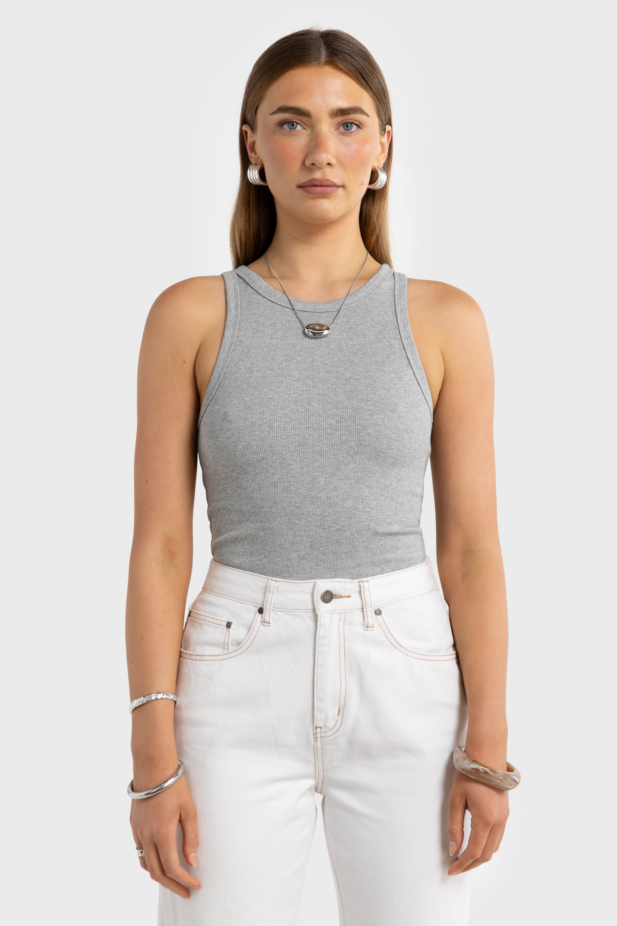 Mimi Rib Tank Grey Marle